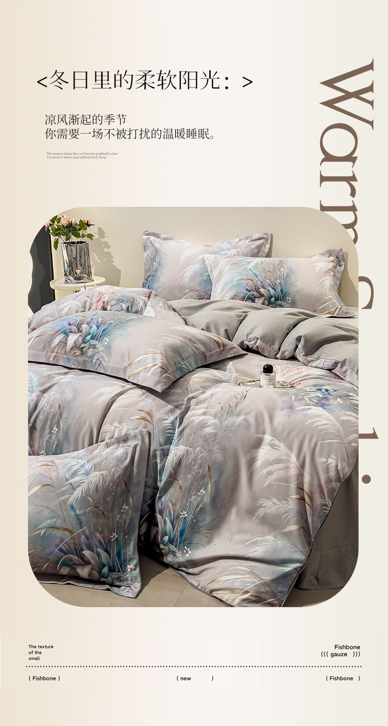 商品名称:芃成家纺 2025新款A类加厚天丝棉磨毛花卉四件套 落英缤纷
