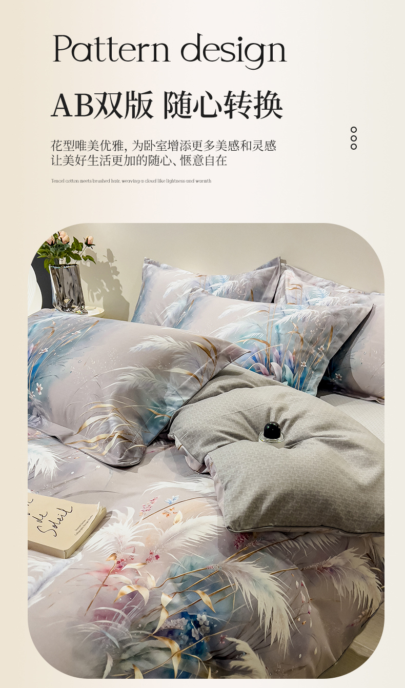 (总)芃成家纺 2025新款A类莱赛尔天丝棉四件套,梦幻花海,缤纷花语,国色天香,花开如画,花舞,奥斯汀玫瑰,春暖花开-粉,春暖花开-紫,春色写意-灰,春色写意-兰,冬雪寒香,繁花满庭,古典玫瑰,国色花韵-粉,国色花韵-玉,花涧入梦,秘境灰,莫奈花园,青花瓷,秋日私语,水墨花卉,晚秋,絮语,烟云牡丹