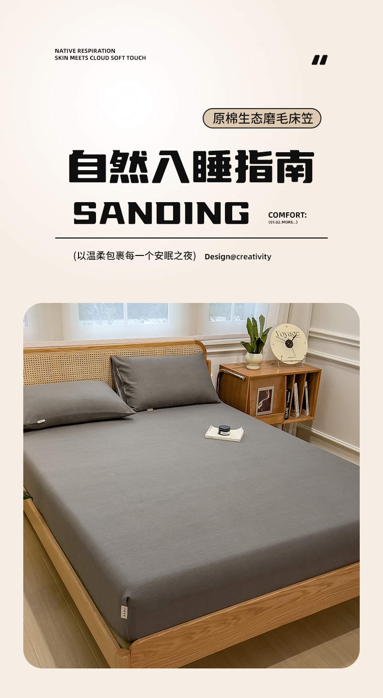 芃成家纺 2025新款原棉生态磨毛单床笠 浅橘色