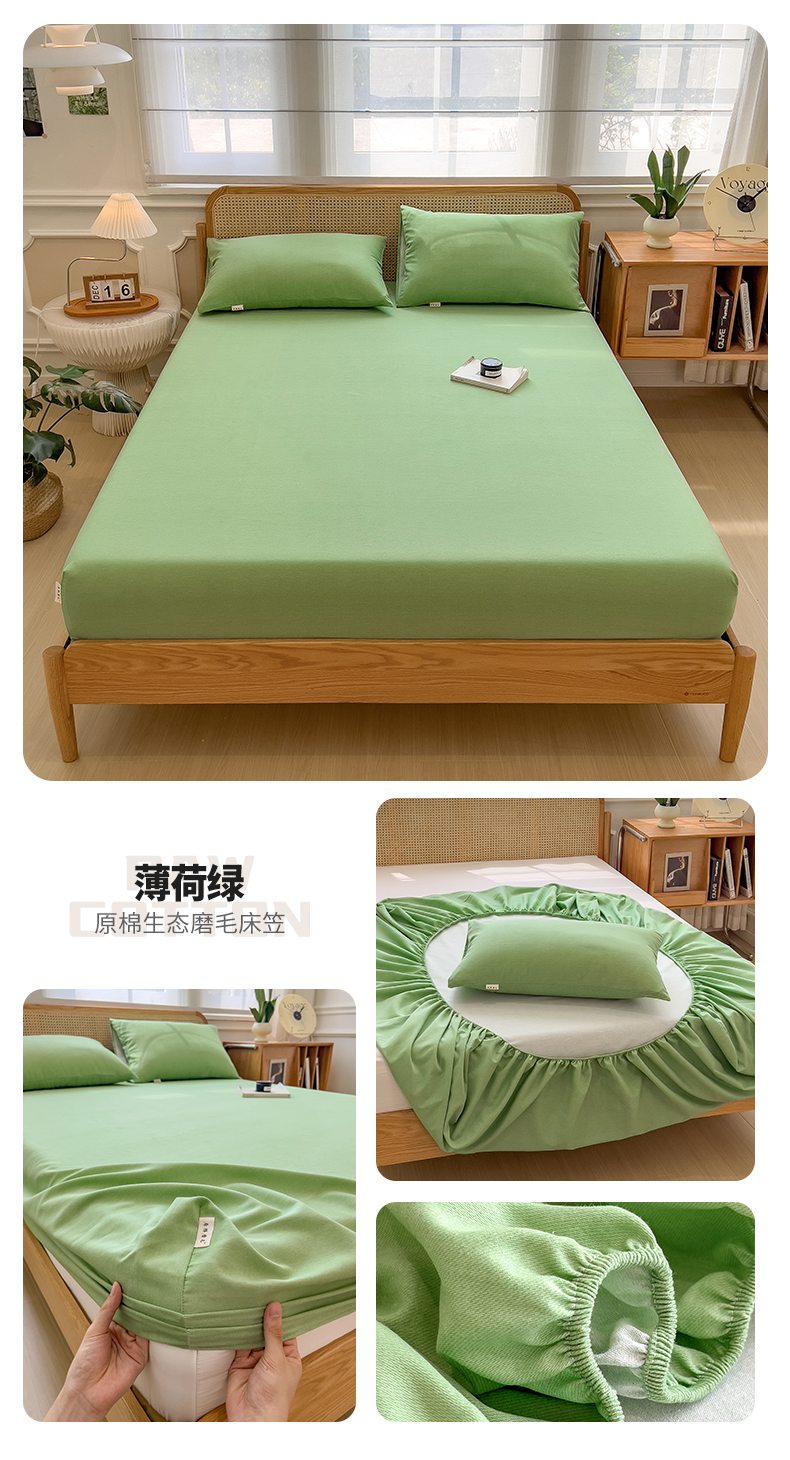 (总)芃成家纺 2025新款原棉生态磨毛单床笠,薄荷绿,冰川蓝,高级灰,罗兰紫,墨染绿,奶茶咖,浅灰,浅橘色,珊瑚粉,松针绿,天青绿,香槟金,香芋紫,烟粉色