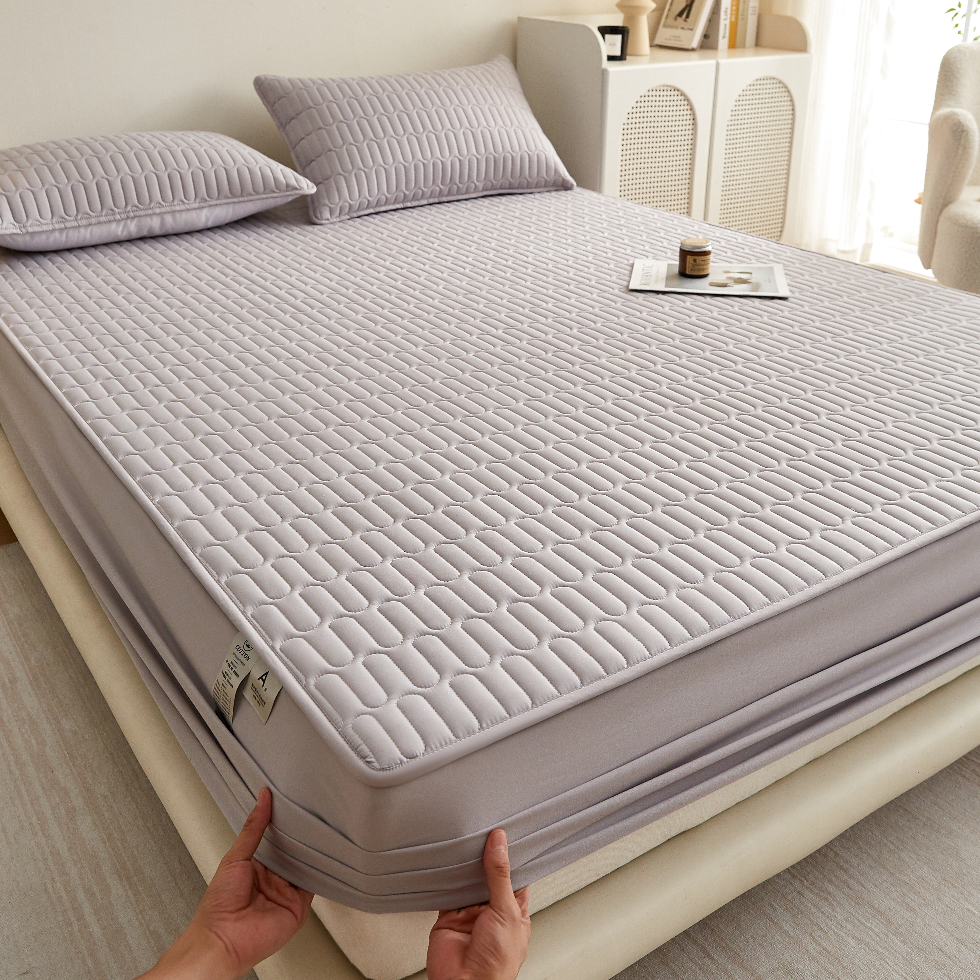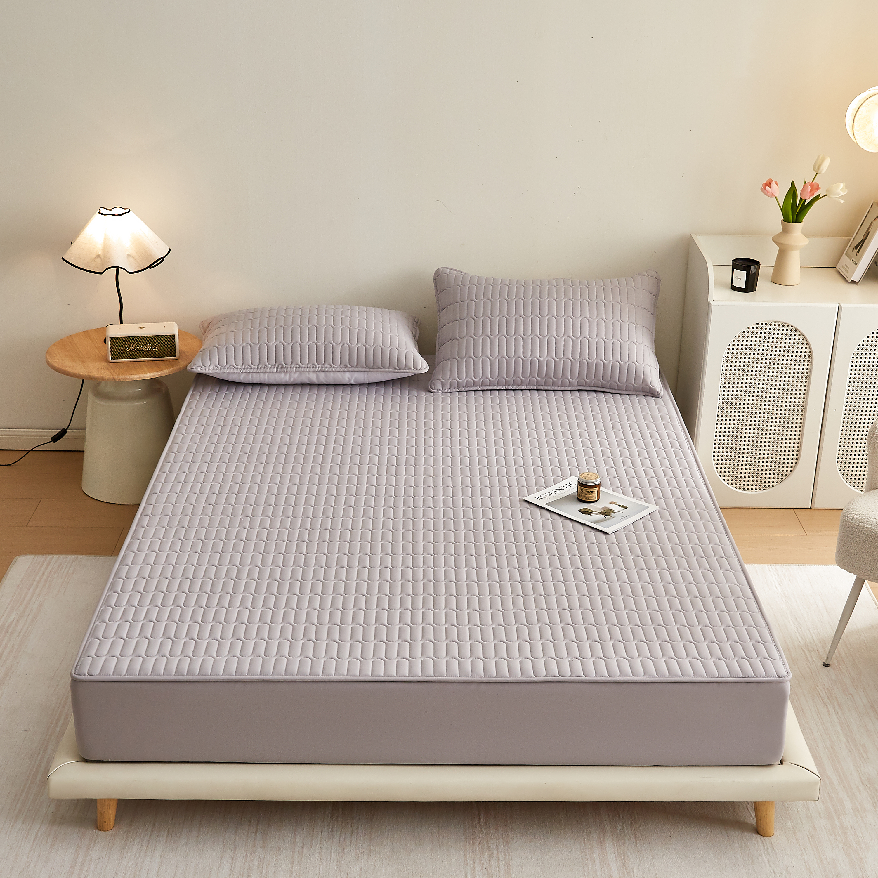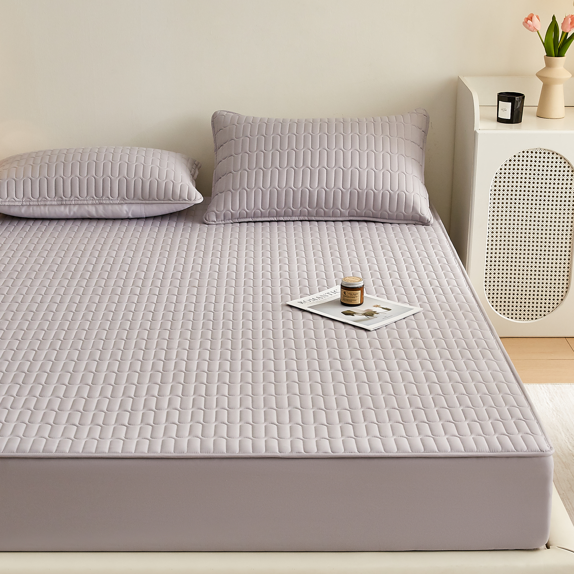 蕾诺家纺 2025新款 菱格水洗棉亲肤棉夹棉床笠 菱格-浅灰