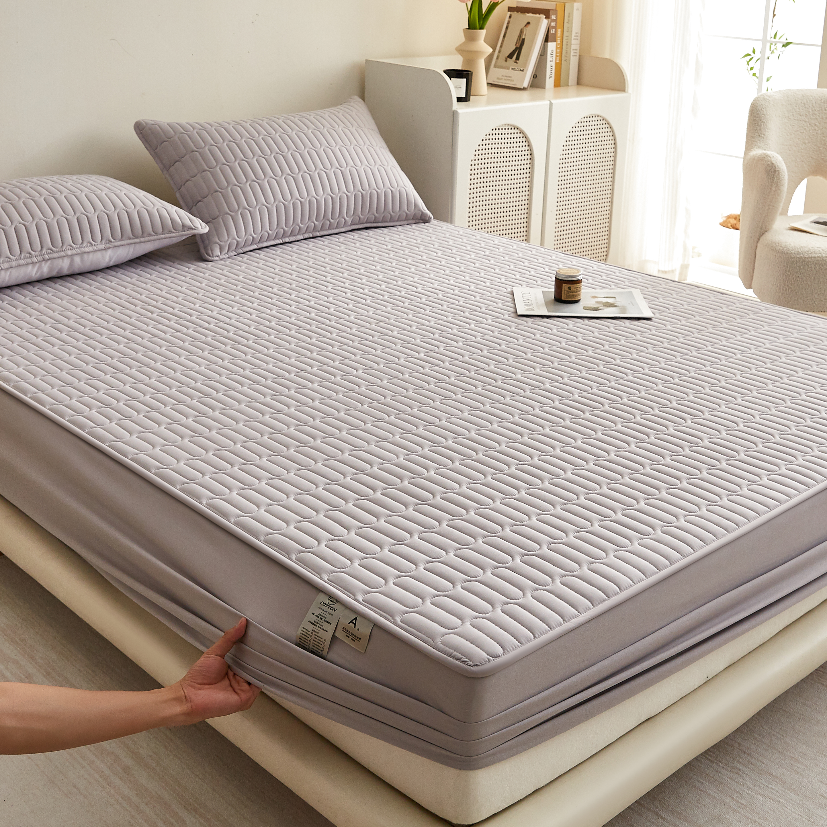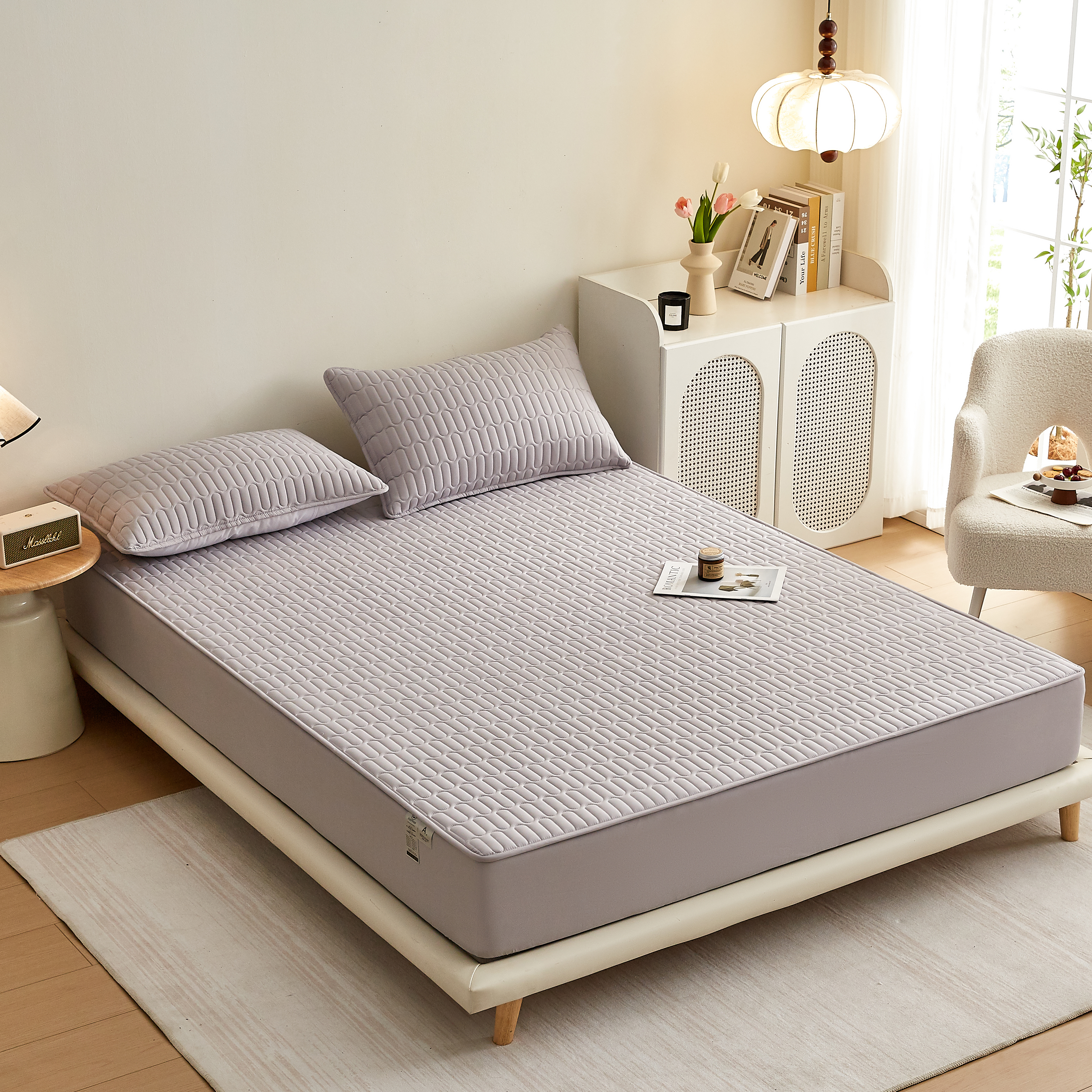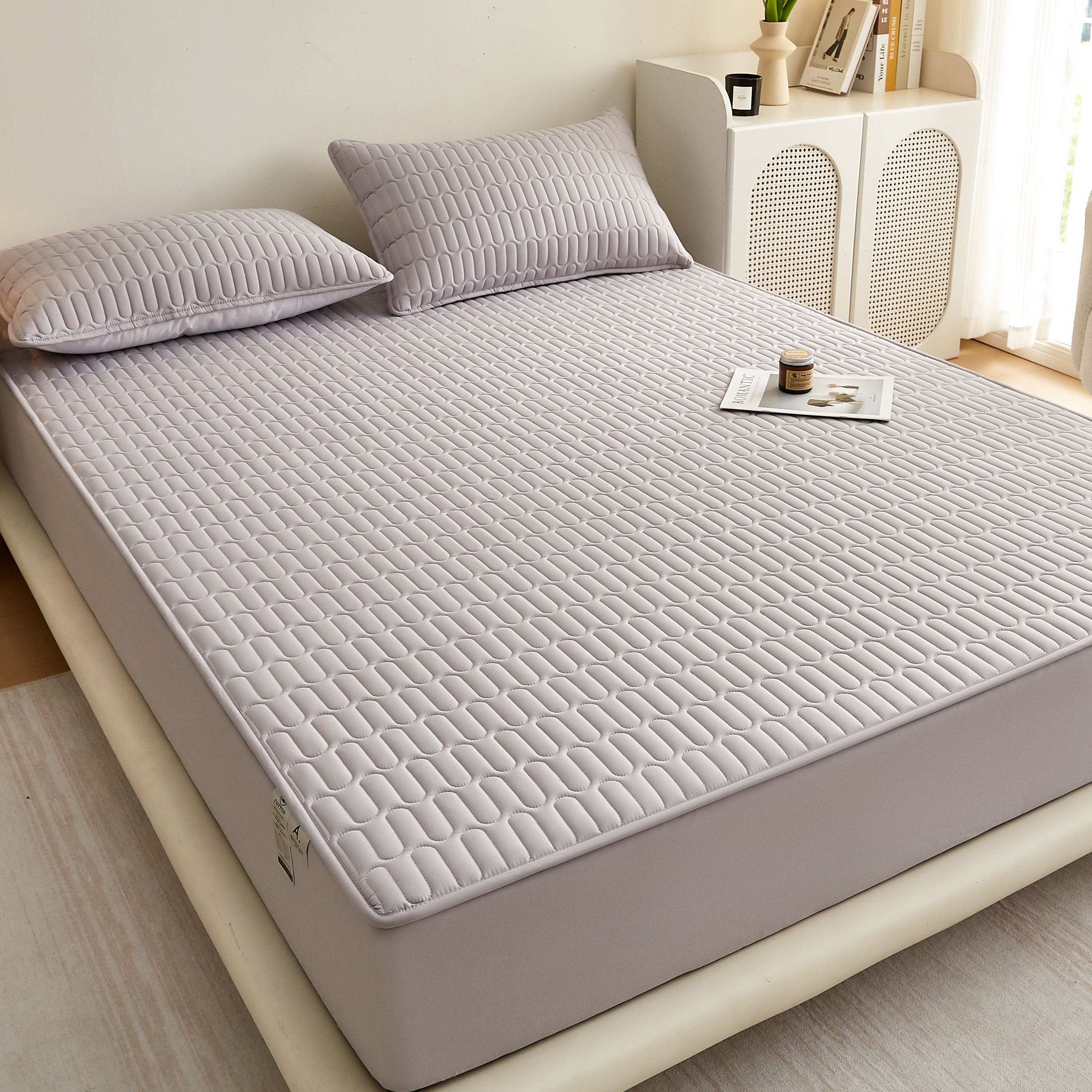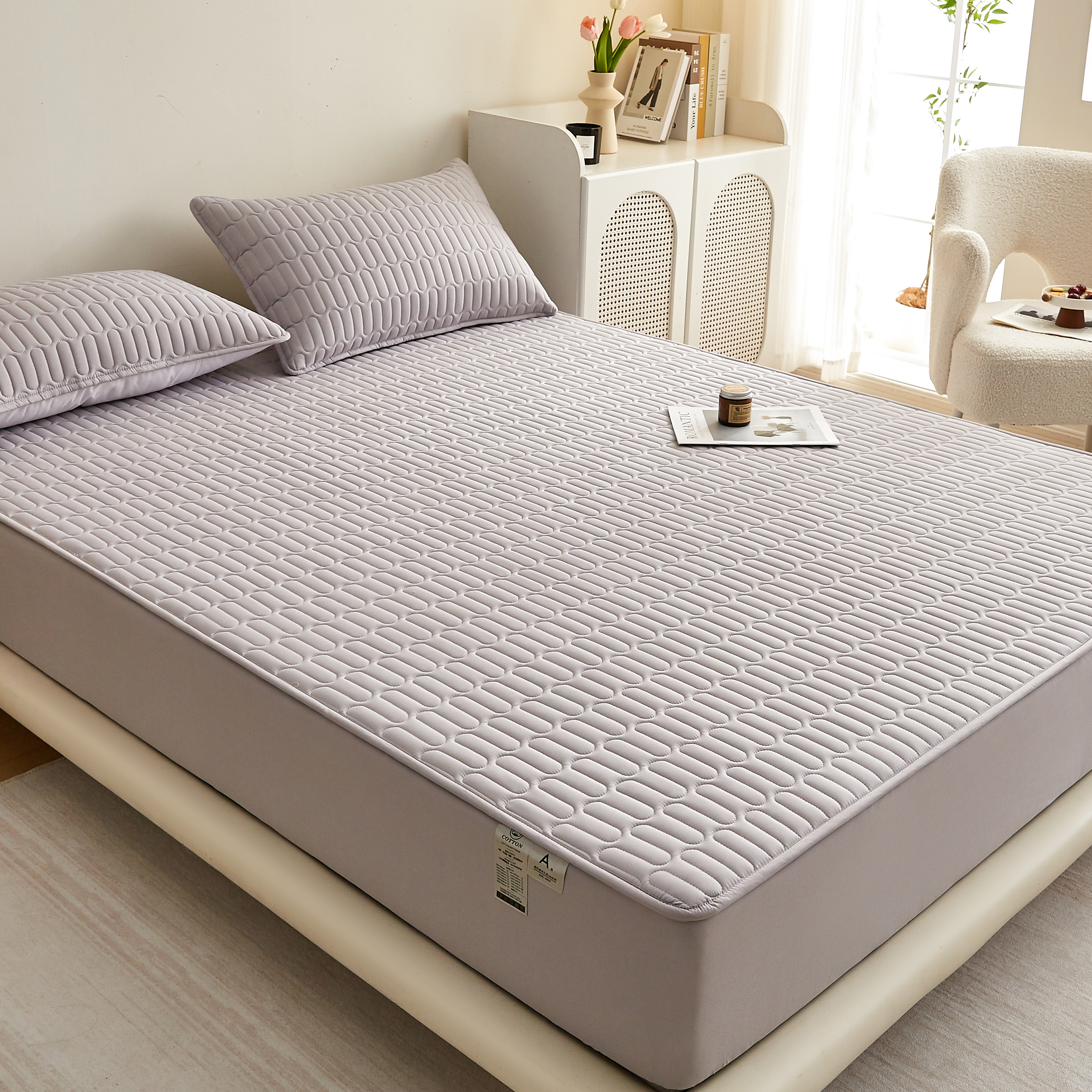 蕾诺家纺 2025新款 菱格水洗棉亲肤棉夹棉床笠 菱格-浅灰