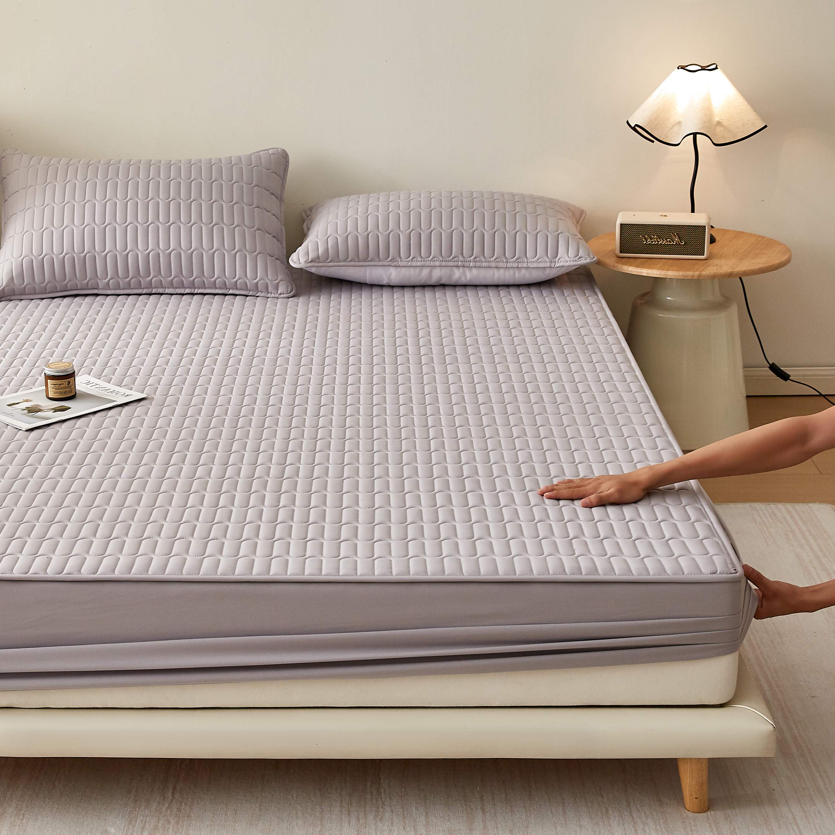(总)蕾诺家纺 2025新款纯棉全包裹床罩防滑防尘夹棉床笠,波浪纹白色,波浪纹粉色,波浪纹绿色,波浪纹浅灰,波浪纹深灰,波浪纹驼色