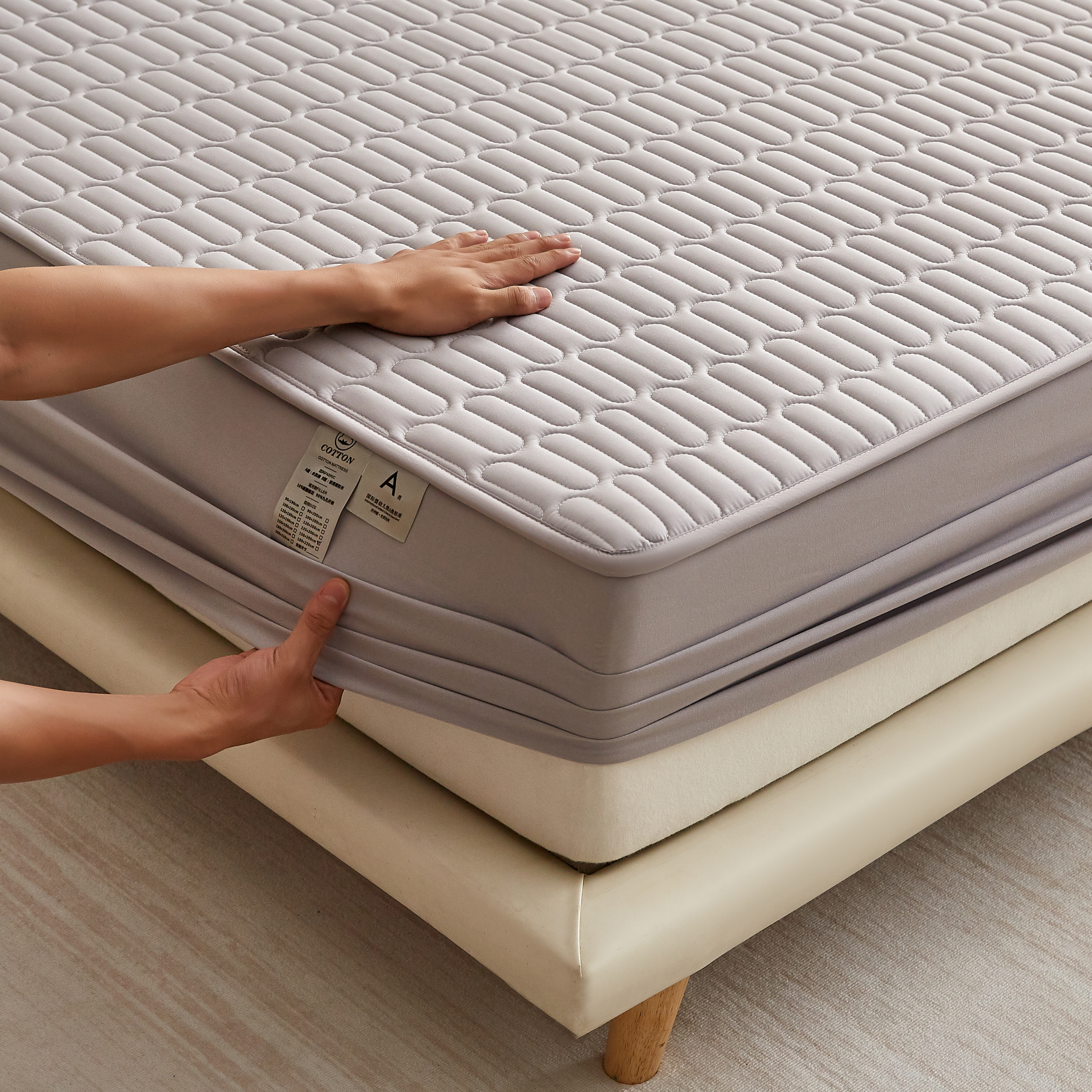 • 91家纺网 家纺一手货源 找家纺 蕾诺家纺 2025新款 菱格水洗棉亲肤棉夹棉床笠 菱格-浅灰