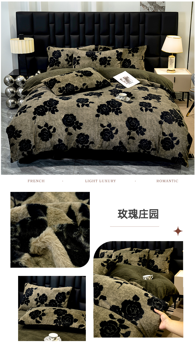 当前位置: 91家纺网 > 商品网购 > 床品套件 > 四件套 > 牛奶绒四件套 > 元禾家纺 2025新款法式美拉德高克重兔毛床盖款四件套兔毛简单款 繁花