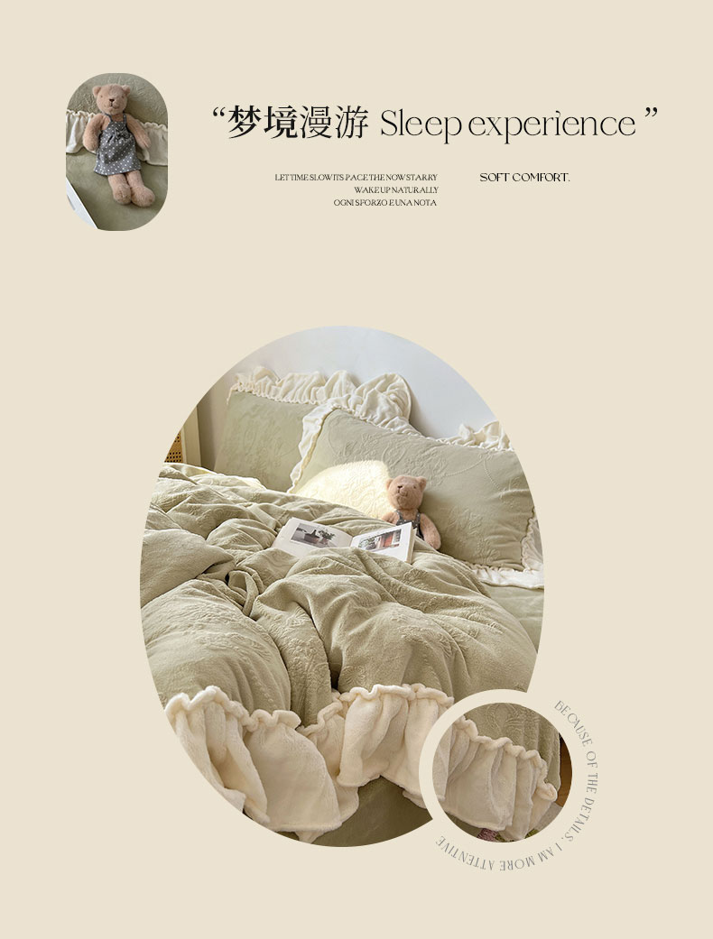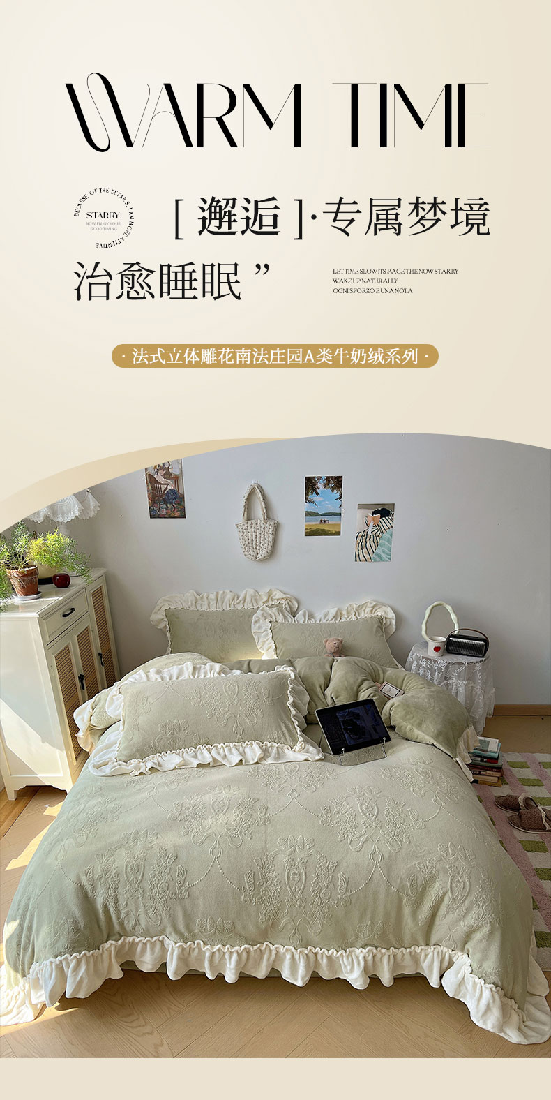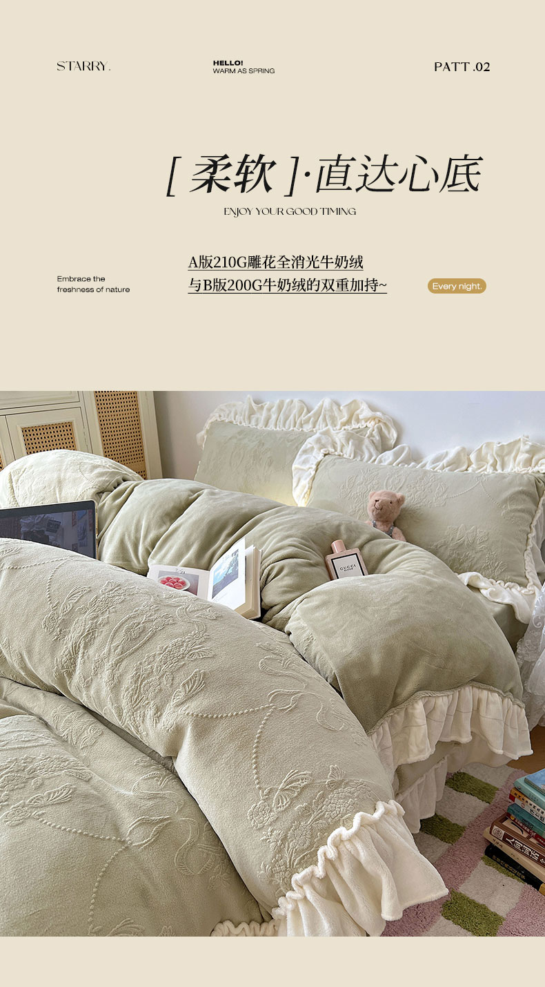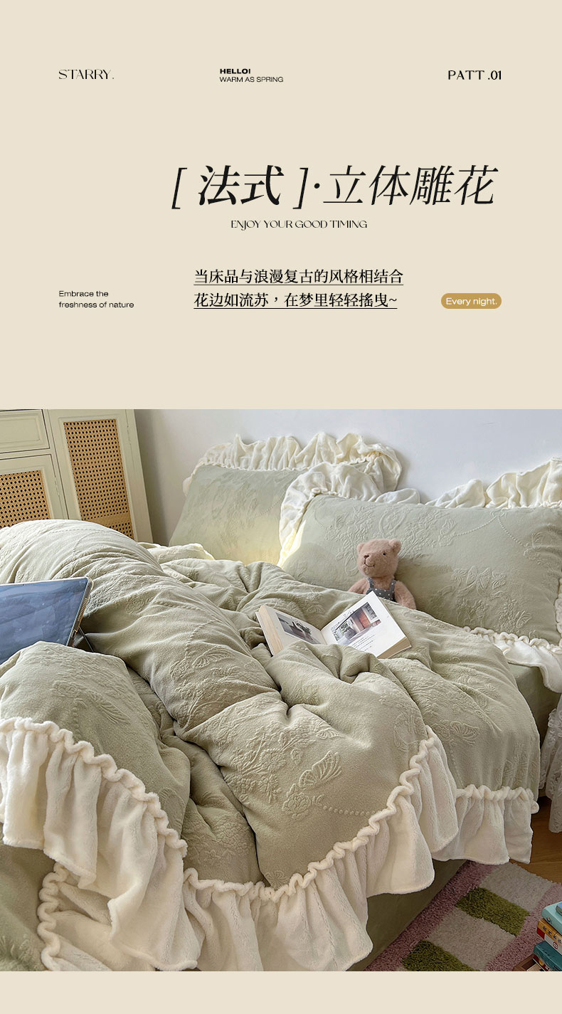 当前位置: 91家纺网 > 商品网购 > 床品套件 > 四件套 > 牛奶绒四件套 > 六巷胡同 2025新款法式立体雕花南法庄园A类210g全消光牛奶绒四件套 南法庄园-绿