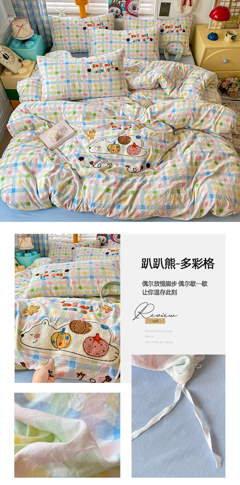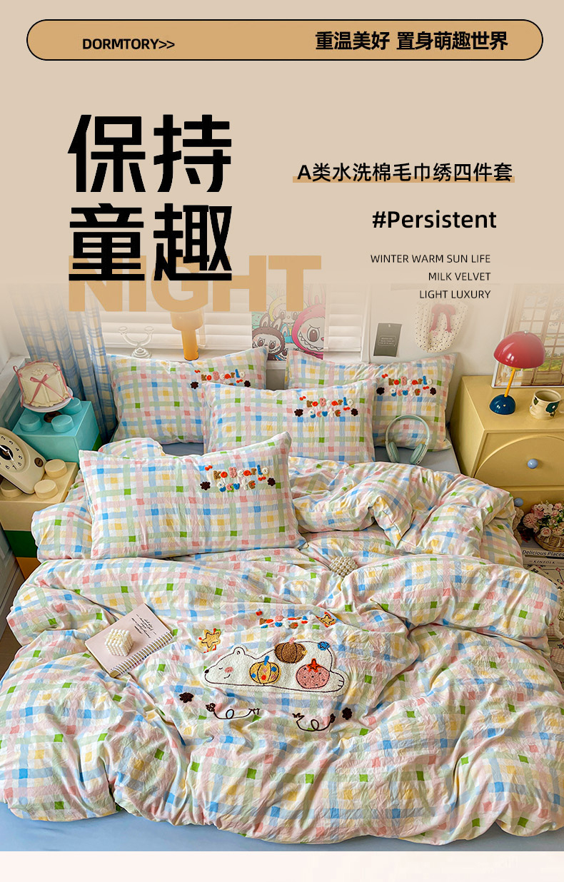 当前位置: 91家纺网 > 商品网购 > 床品套件 > 四件套 > 毛巾绣四件套 > 凯洛奇 2025新款趴趴熊毛巾绣四件套(提供买家秀) 趴趴熊-多彩格