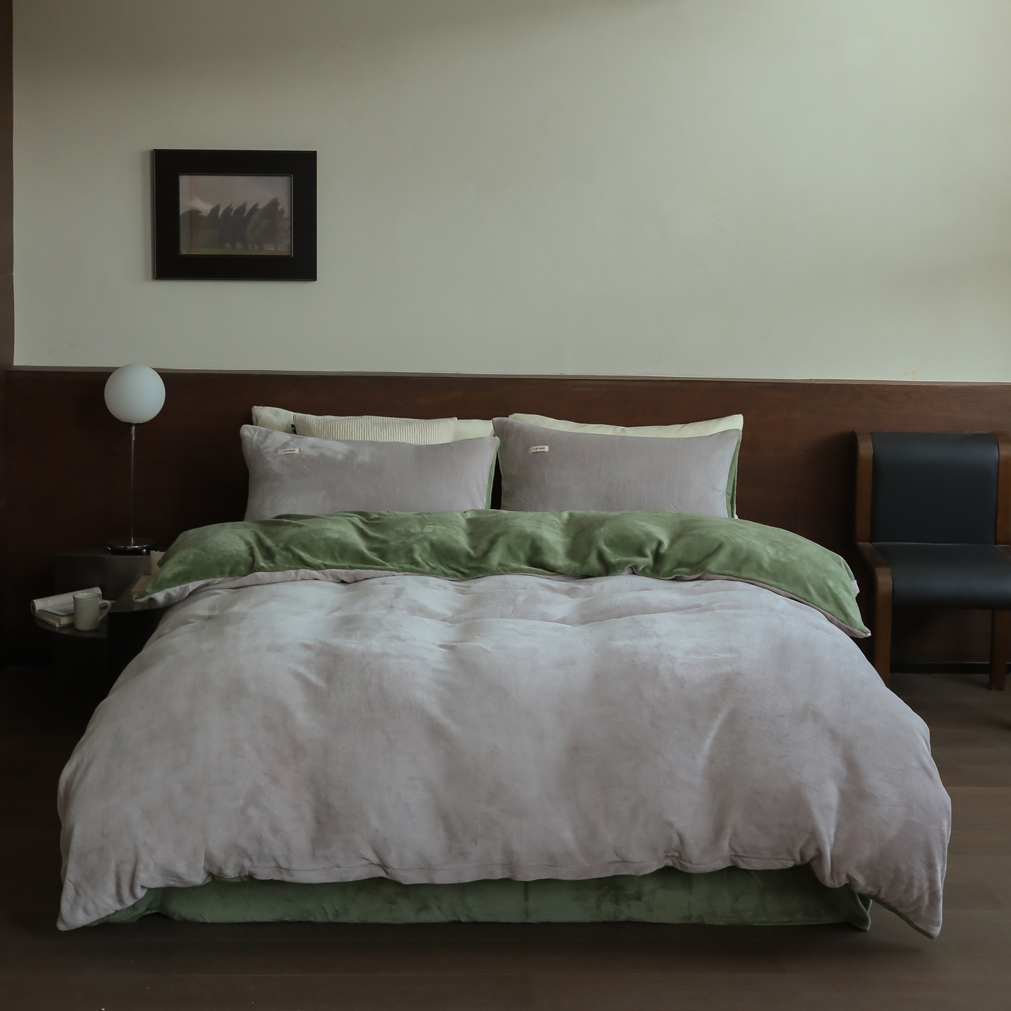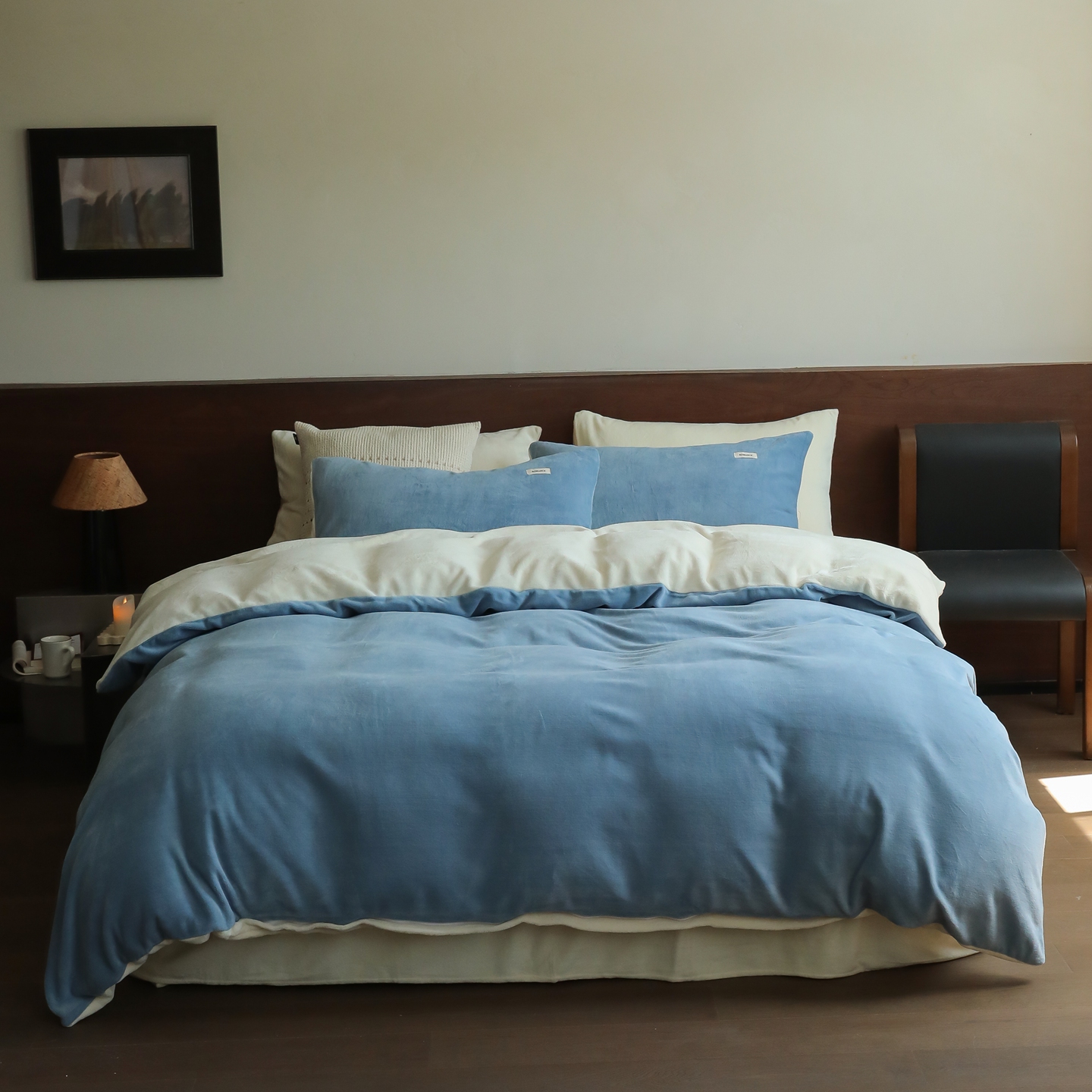 当前位置: 91家纺网 > 商品网购 > 床品套件 > 四件套 > 牛奶绒四件套 > 时光里 2025新款230克纯色双拼牛奶绒四件套 古典灰拼复古蓝