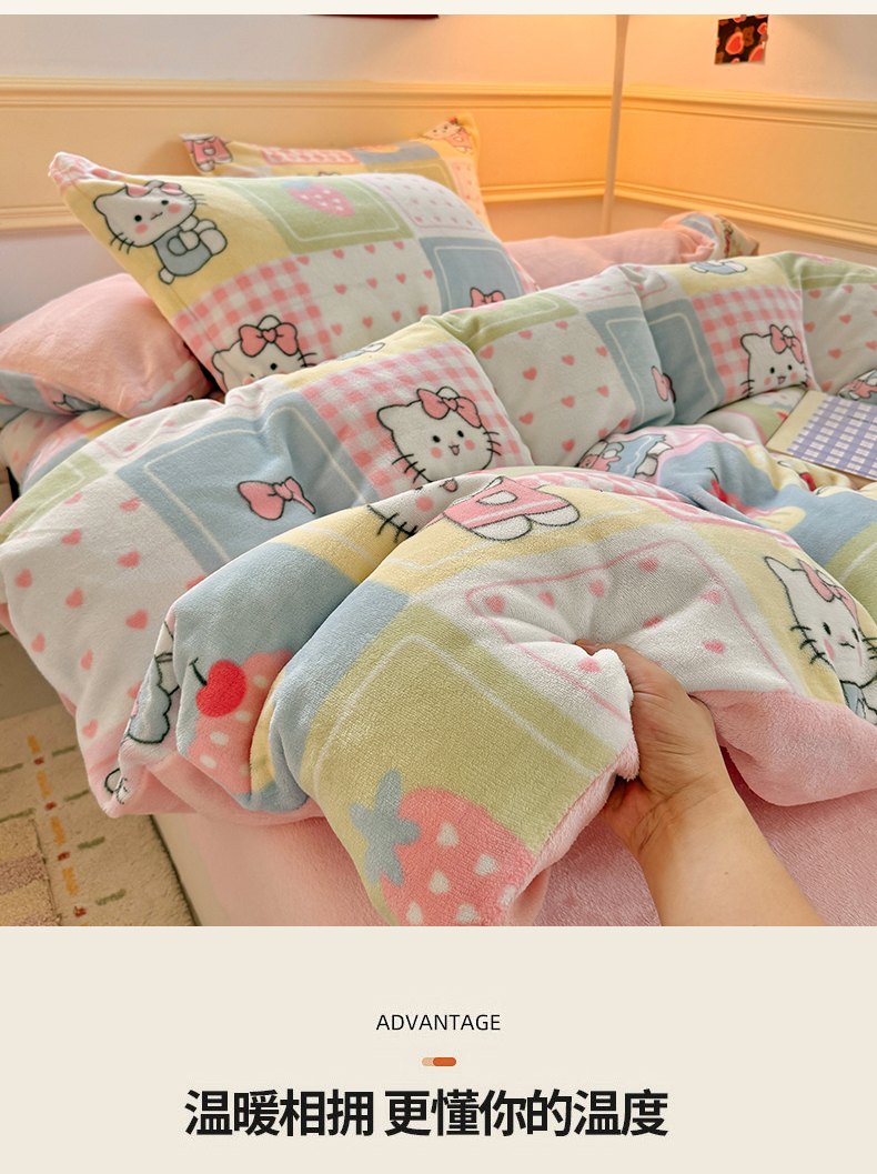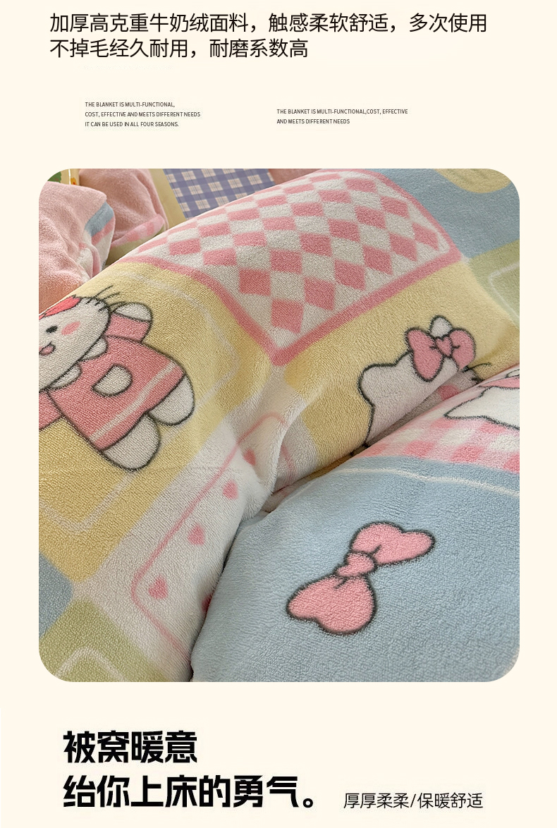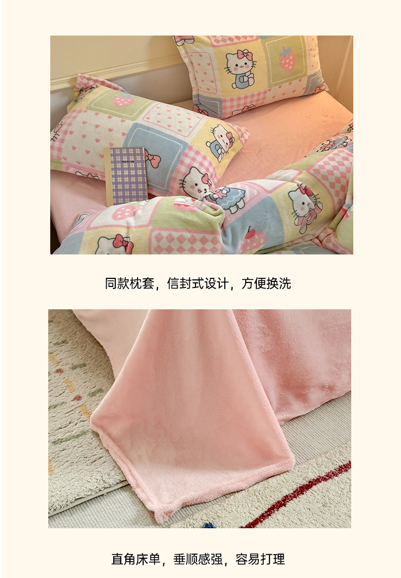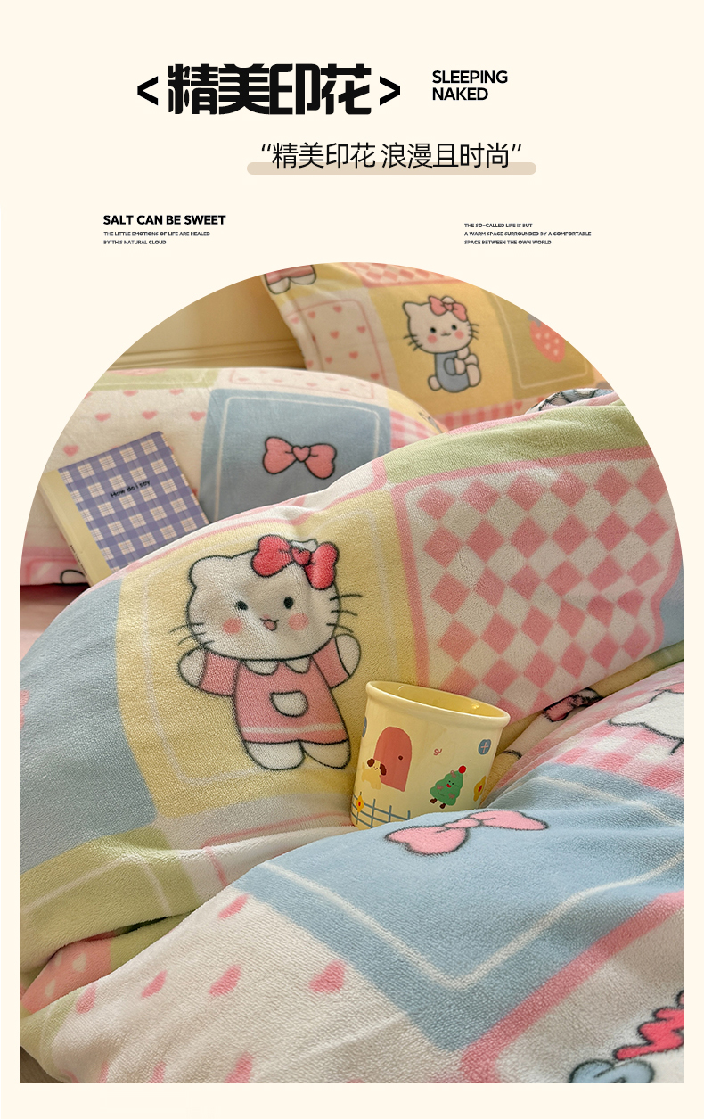 当前位置: 91家纺网 > 商品网购 > 床品套件 > 四件套 > 牛奶绒四件套 > 艾特你 2025新款小清新高克重加厚牛奶绒印花四件套--风格二小窝图 格子猫咪