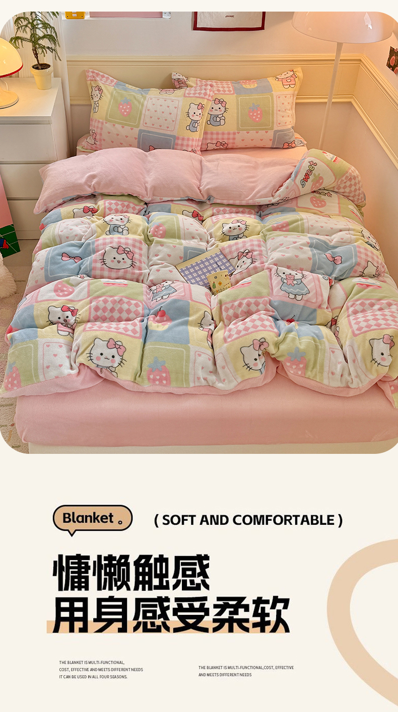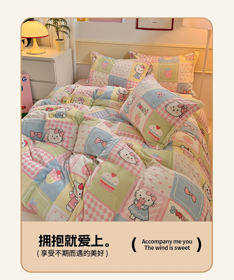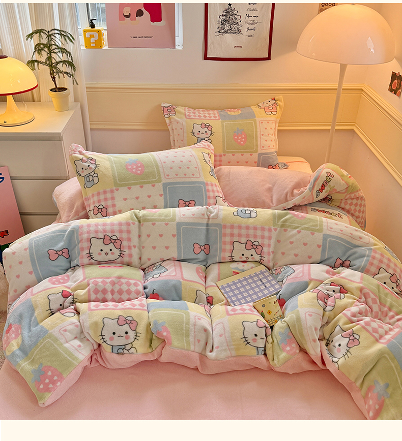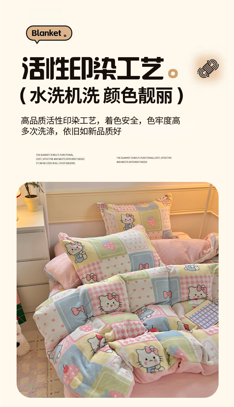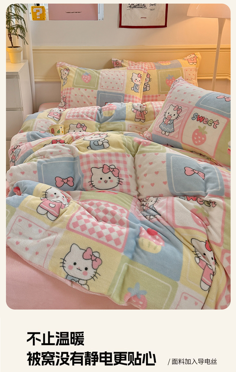 当前位置: 91家纺网 > 商品网购 > 床品套件 > 四件套 > 牛奶绒四件套 > 艾特你 2025新款小清新高克重加厚牛奶绒印花四件套--风格二小窝图 格子猫咪