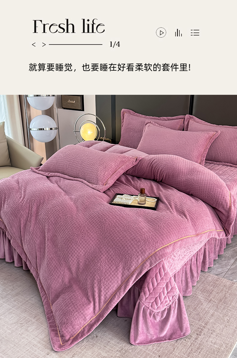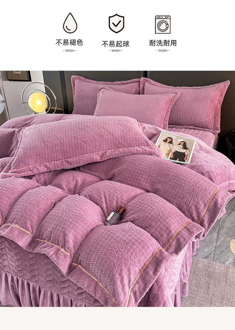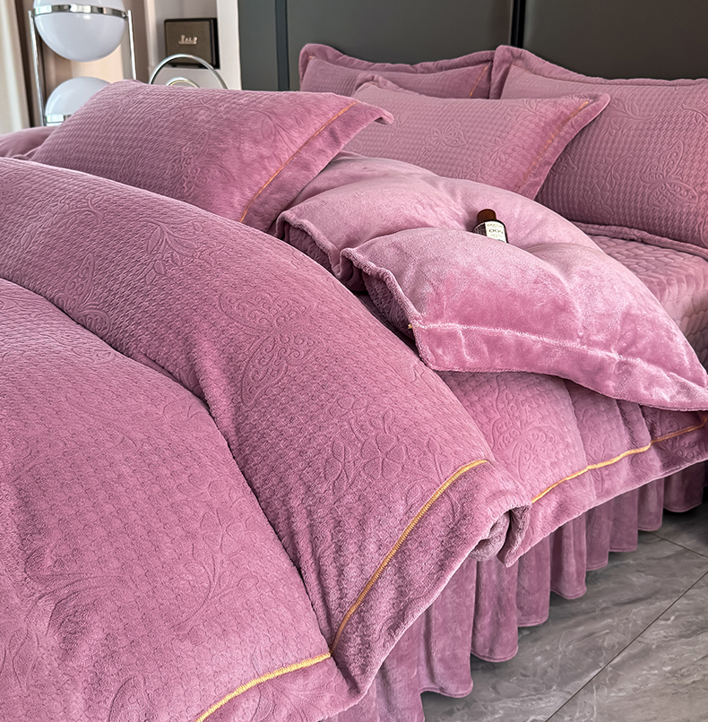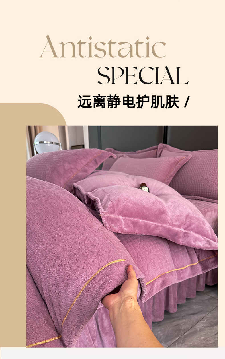 慧菲 2025新款刺绣夹棉牛奶绒床裙四件套-玫瑰花语 玫瑰花语-紫,玫瑰花语-紫