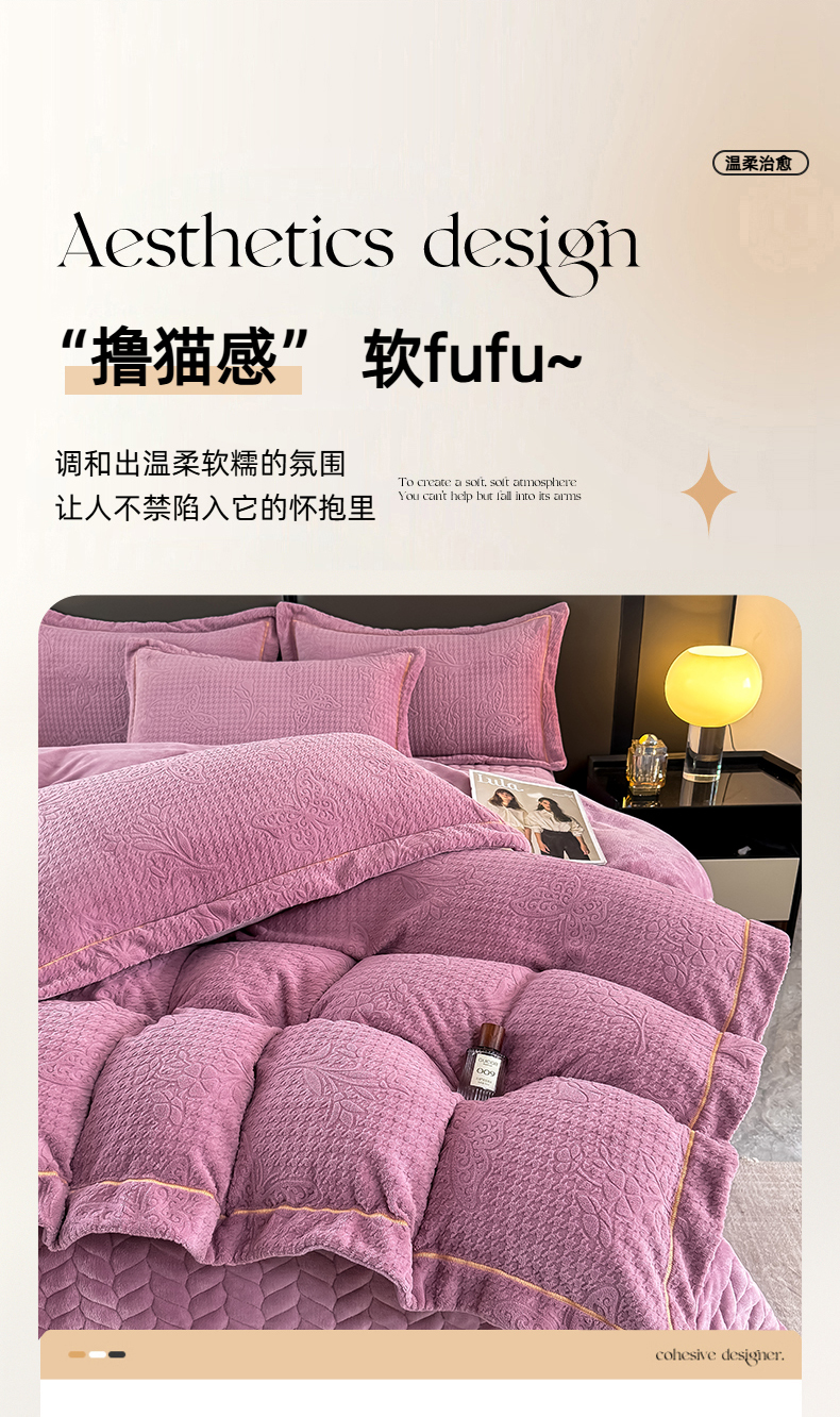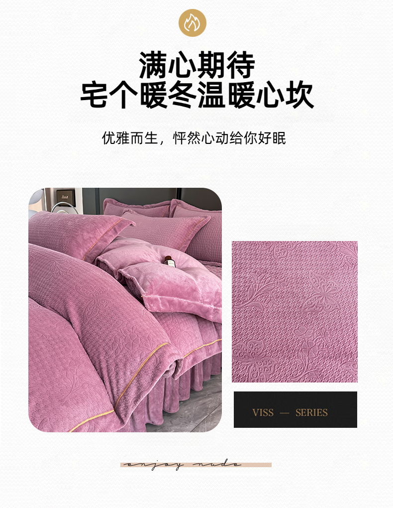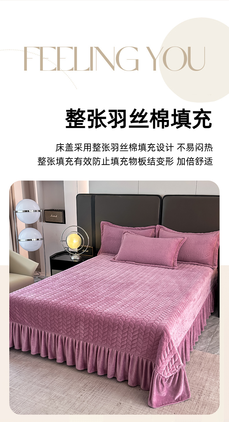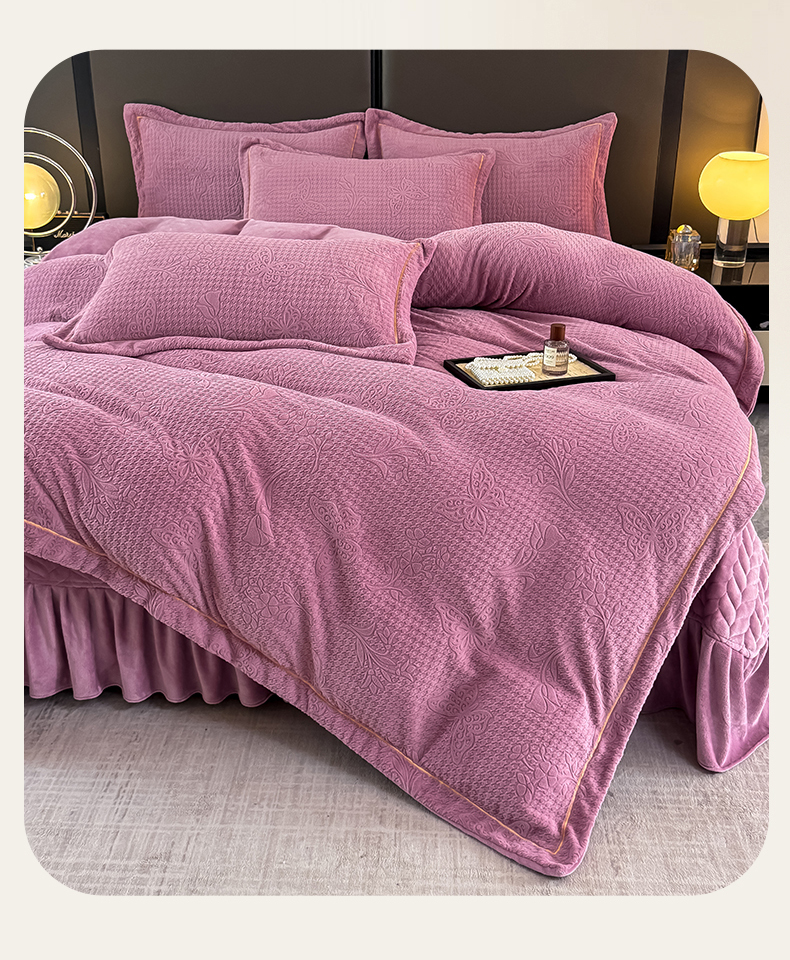 慧菲 2025新款刺绣夹棉牛奶绒床裙四件套-玫瑰花语 玫瑰花语-紫,玫瑰花语-紫