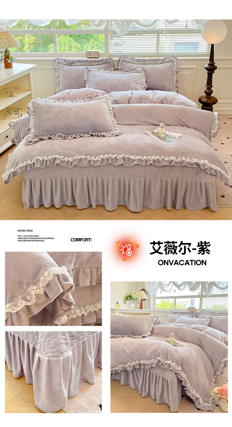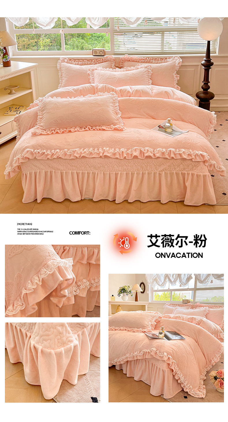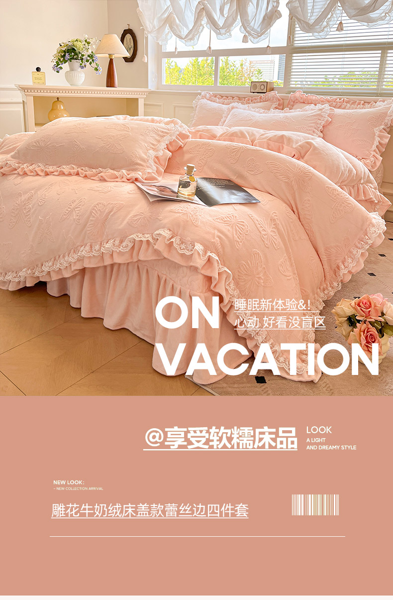 当前位置: 91家纺网 > 商品网购 > 床品套件 > 四件套 > 牛奶绒四件套 > (总)金阳光家纺 2025新款雕花牛奶绒蕾丝花边款床单床盖四件套