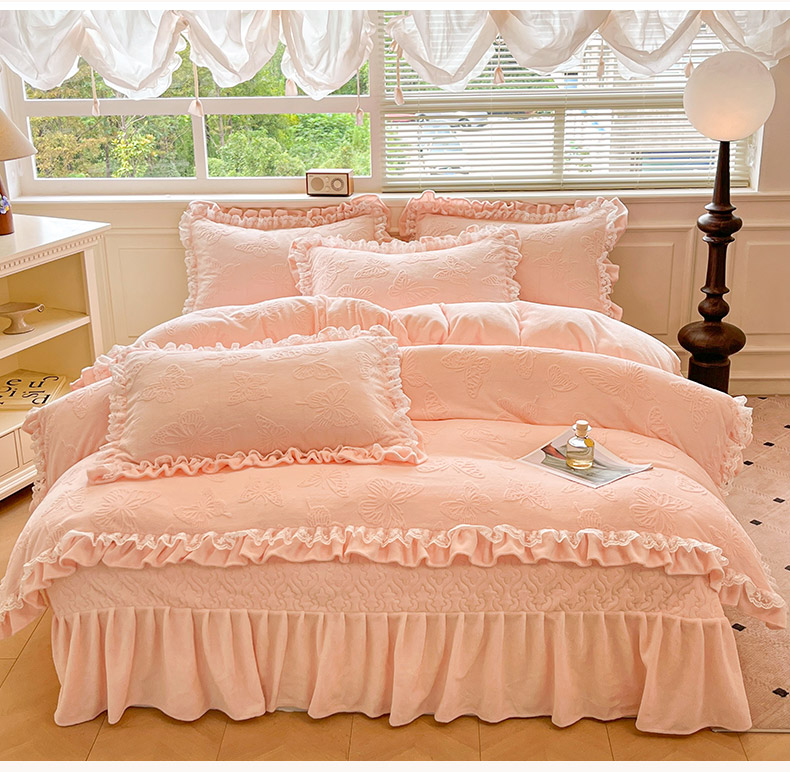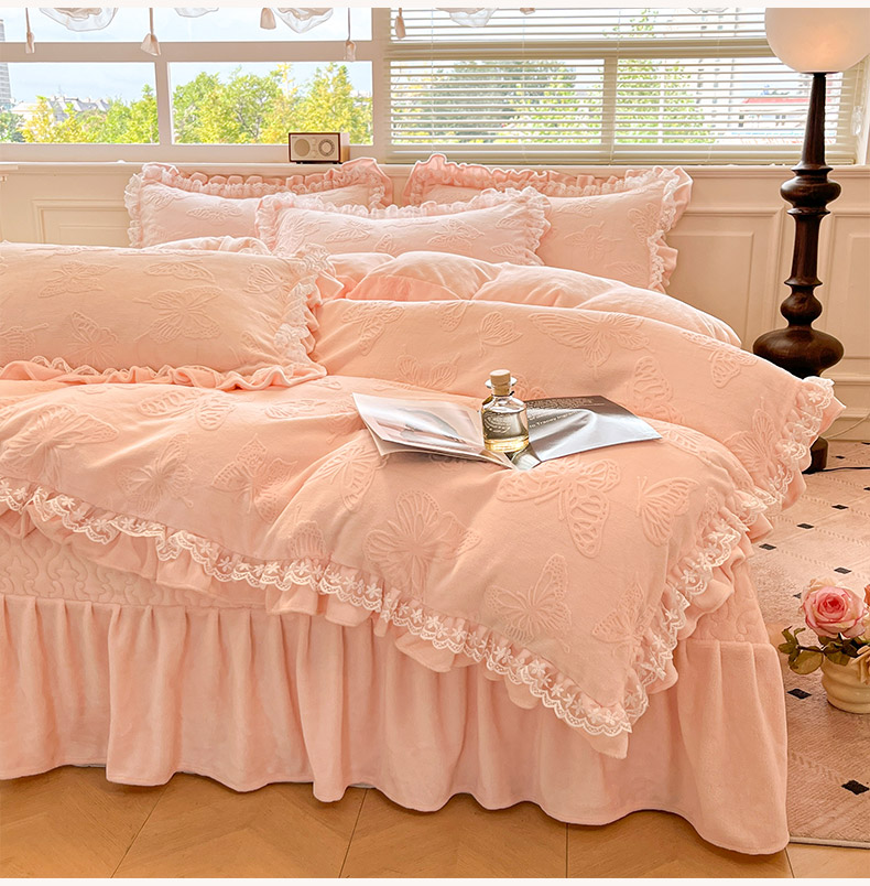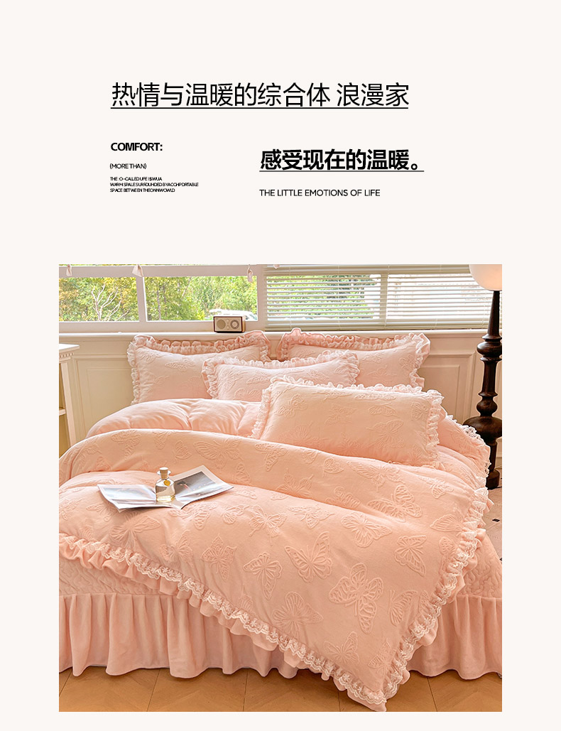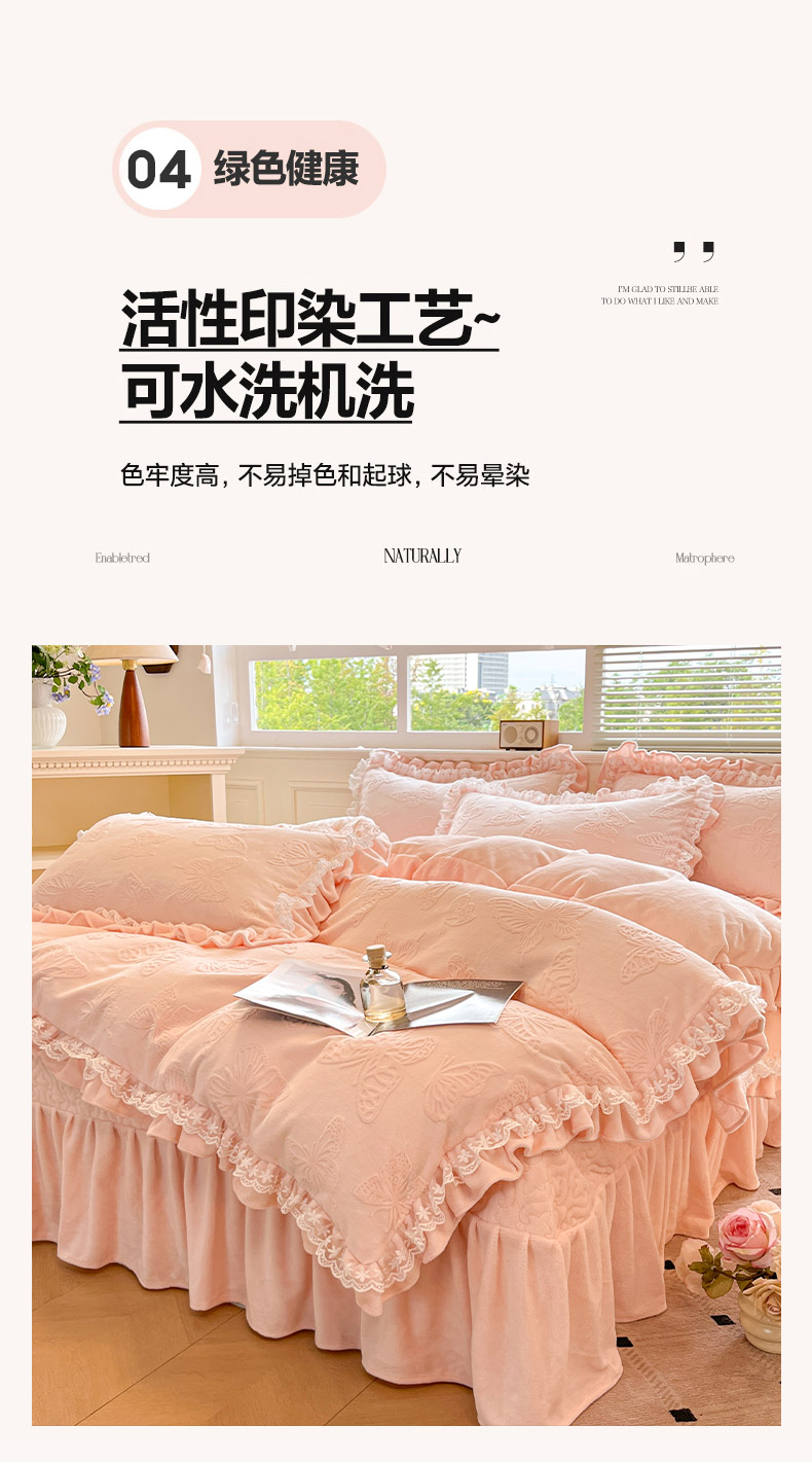 当前位置: 91家纺网 > 商品网购 > 床品套件 > 四件套 > 牛奶绒四件套 > (总)金阳光家纺 2025新款雕花牛奶绒蕾丝花边款床单床盖四件套