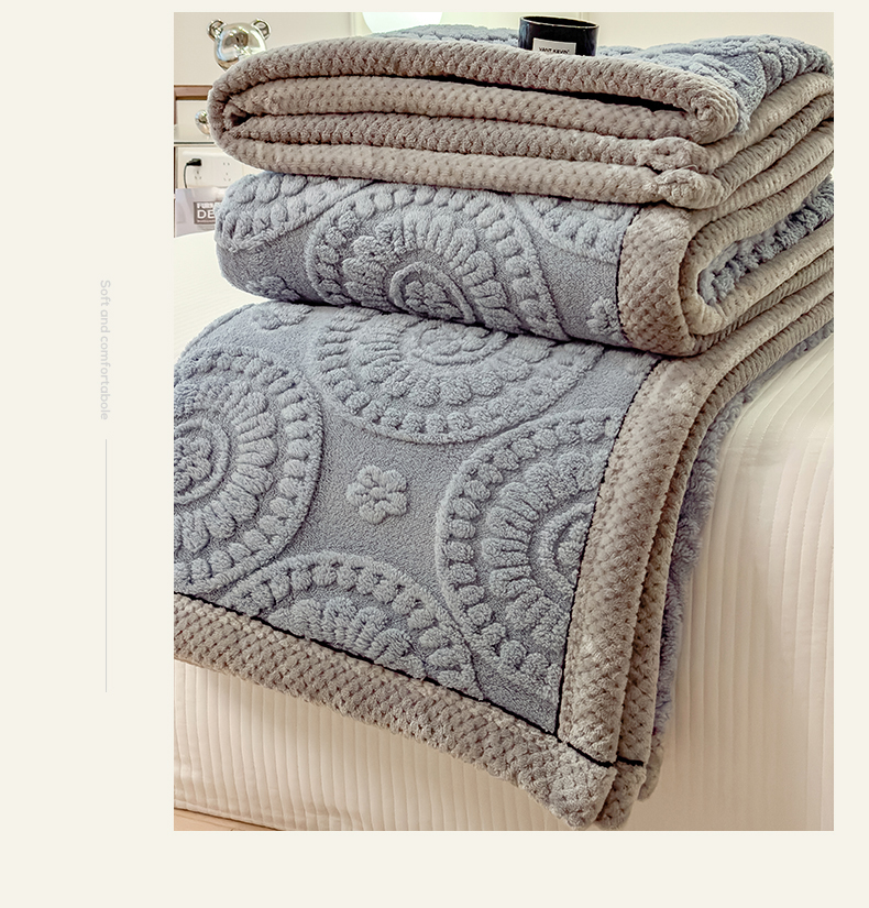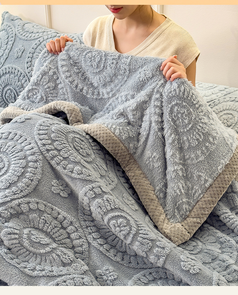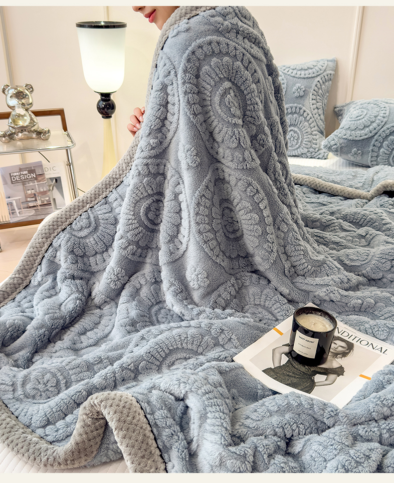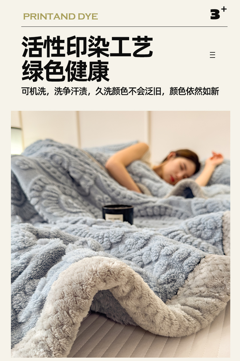 (总)莱家富 2026新款加厚双层复合毯舒棉绒剪花毛毯,兰色,绿色,米色,深灰色,樱花粉,紫色