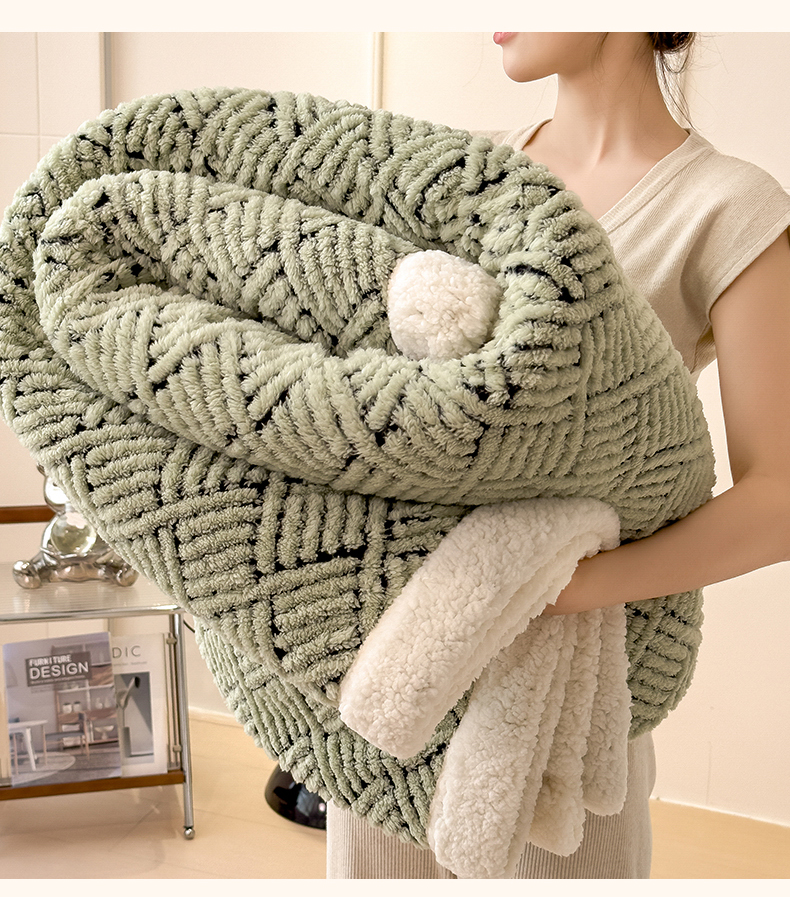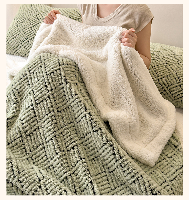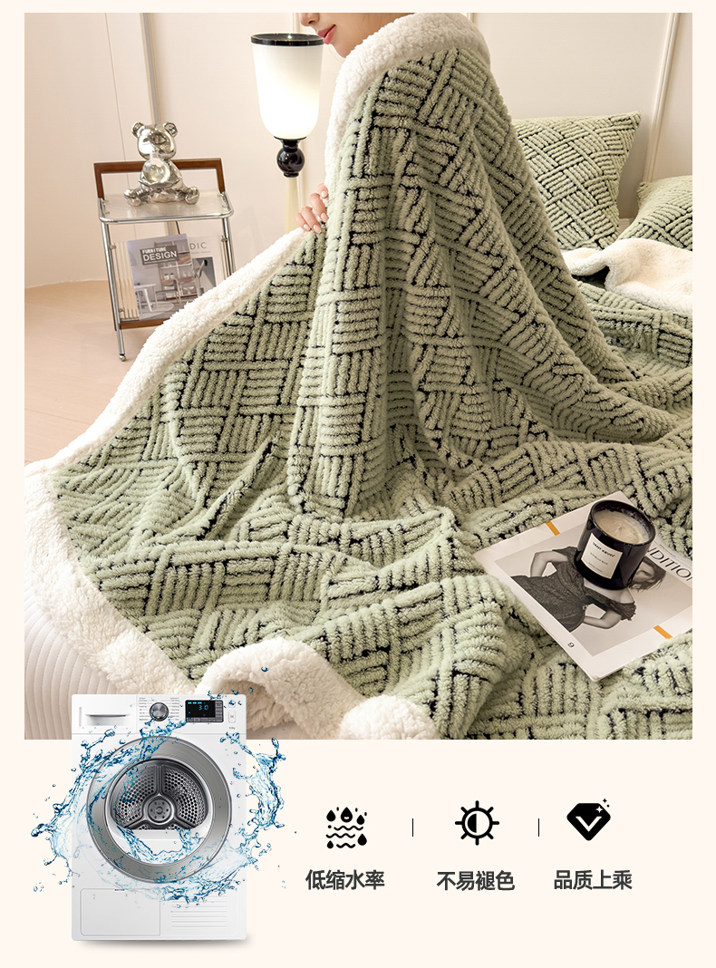(总)莱家富 2026新款双层加厚阳离子提花毛毯羊羔绒毛毯盖毯办公室午休毯,浔彩-豆沙,浔彩-果绿,浔彩-灰色,浔彩-奶白,浔彩-天蓝,浔彩-驼色