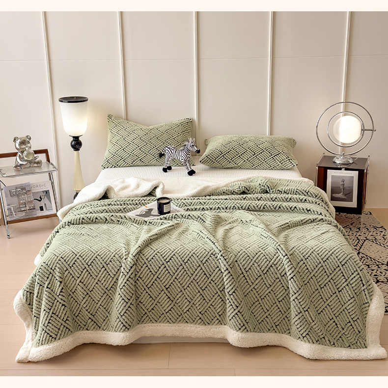 (总)莱家富 2026新款加厚双层复合毯舒棉绒剪花毛毯,兰色,绿色,米色,深灰色,樱花粉,紫色
