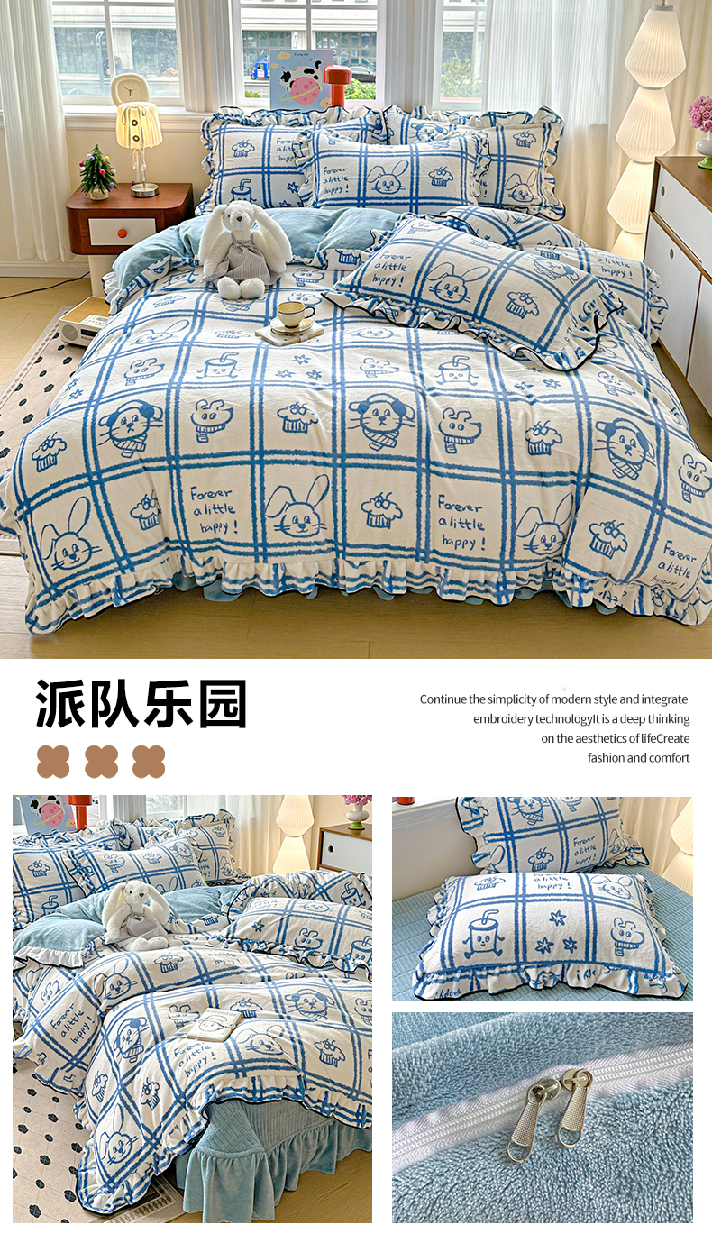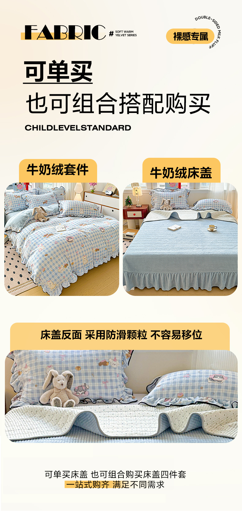 当前位置: 91家纺网 > 商品网购 > 床品套件 > 四件套 > 牛奶绒四件套 > 简一 2025新款牛奶绒花边床盖四件套 萌宠之家