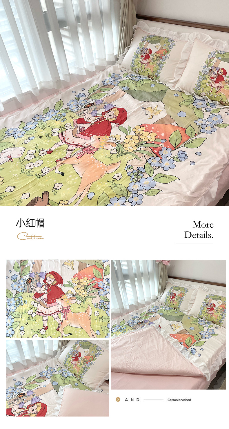 当前位置: 91家纺网 > 商品网购 > 床品套件 > 四件套 > 其它四件套 > 花沐家居 2025新款亲肤舒适花边洛丽塔云朵棉四件套 小红帽