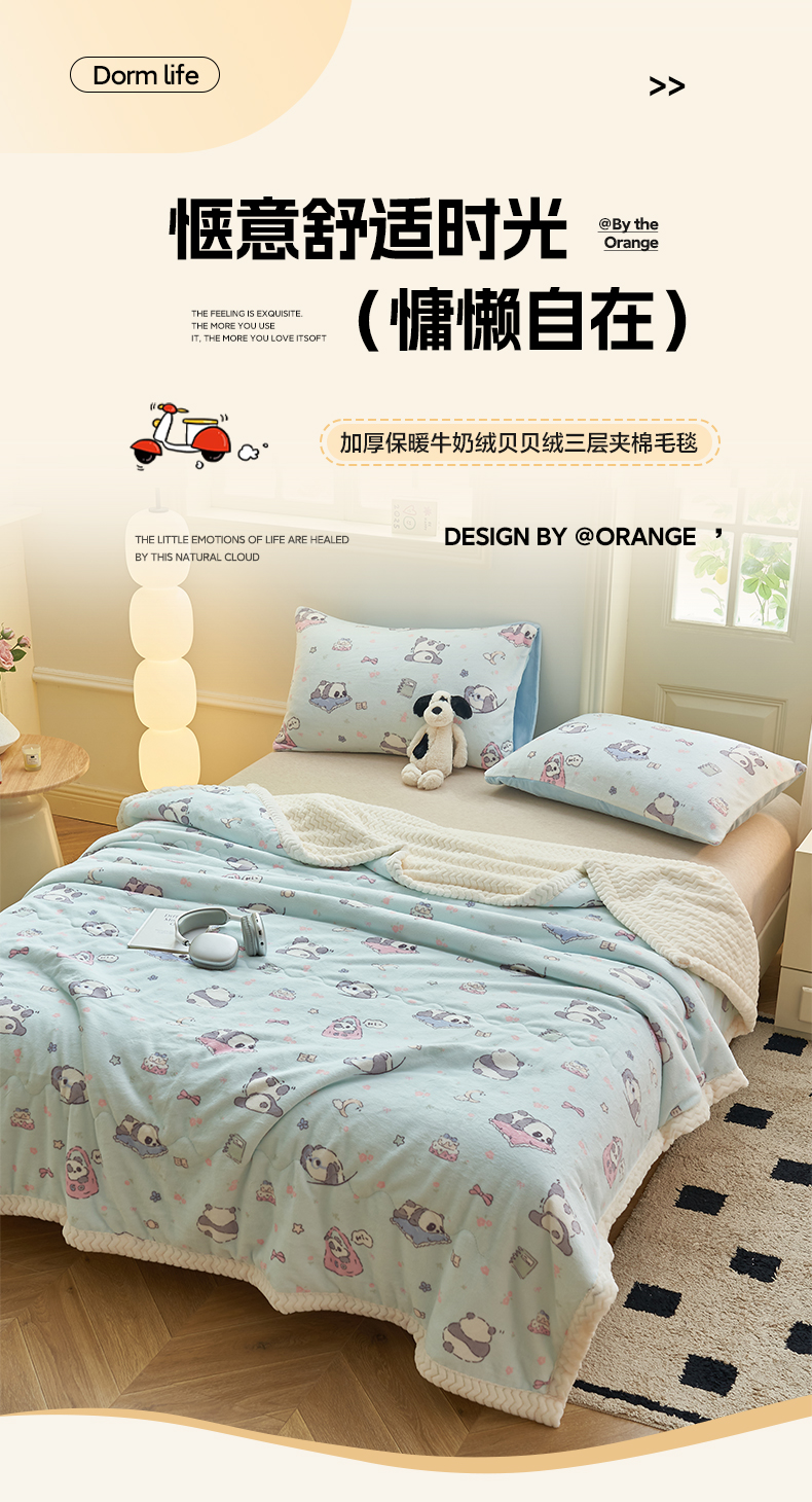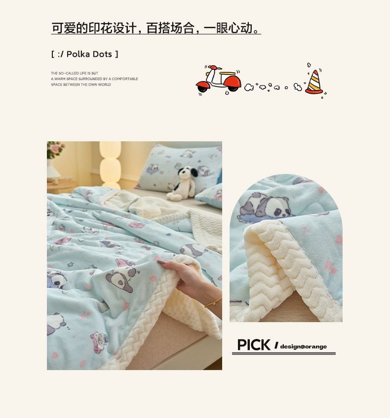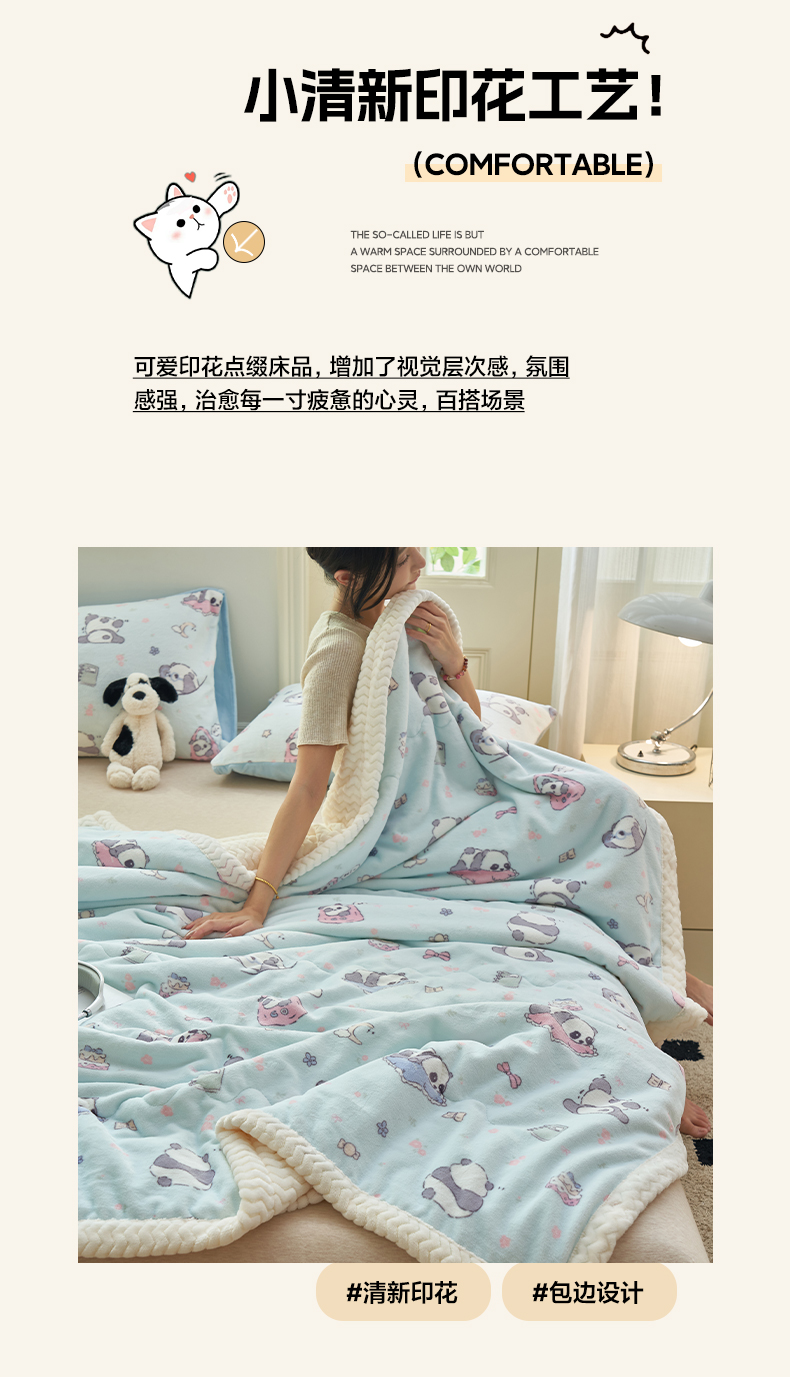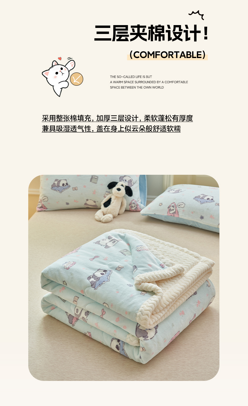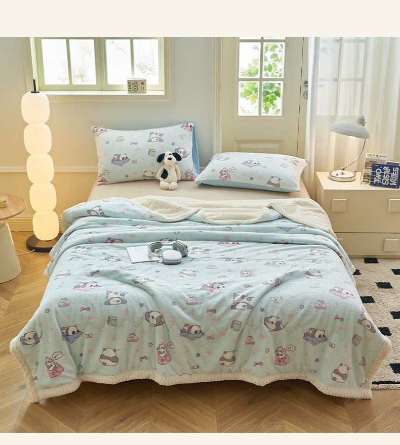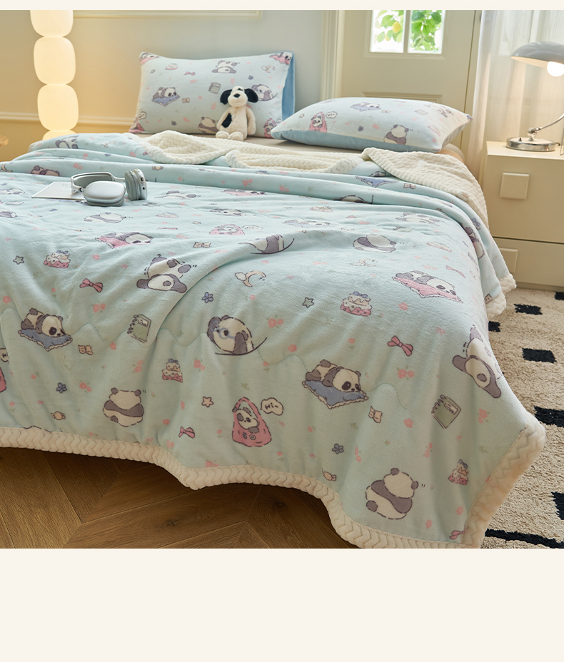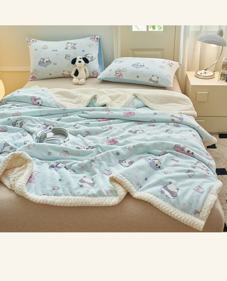 晨曦家纺 2025新款加厚保暖牛奶绒贝贝绒三层夹棉毛毯可爱卡通 可爱熊猫