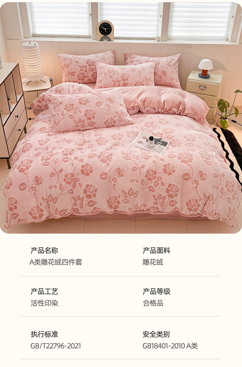 当前位置: 91家纺网 > 商品网购 > 床品套件 > 四件套 > 牛奶绒四件套 > 星座 2025新款牛奶绒雕花绒四件套 粉漾玫瑰