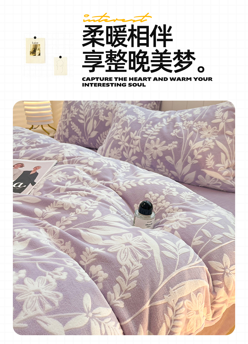 当前位置: 91家纺网 > 商品网购 > 床品套件 > 四件套 > 牛奶绒四件套 > 星座 2025新款牛奶绒雕花绒四件套 紫蔓花影