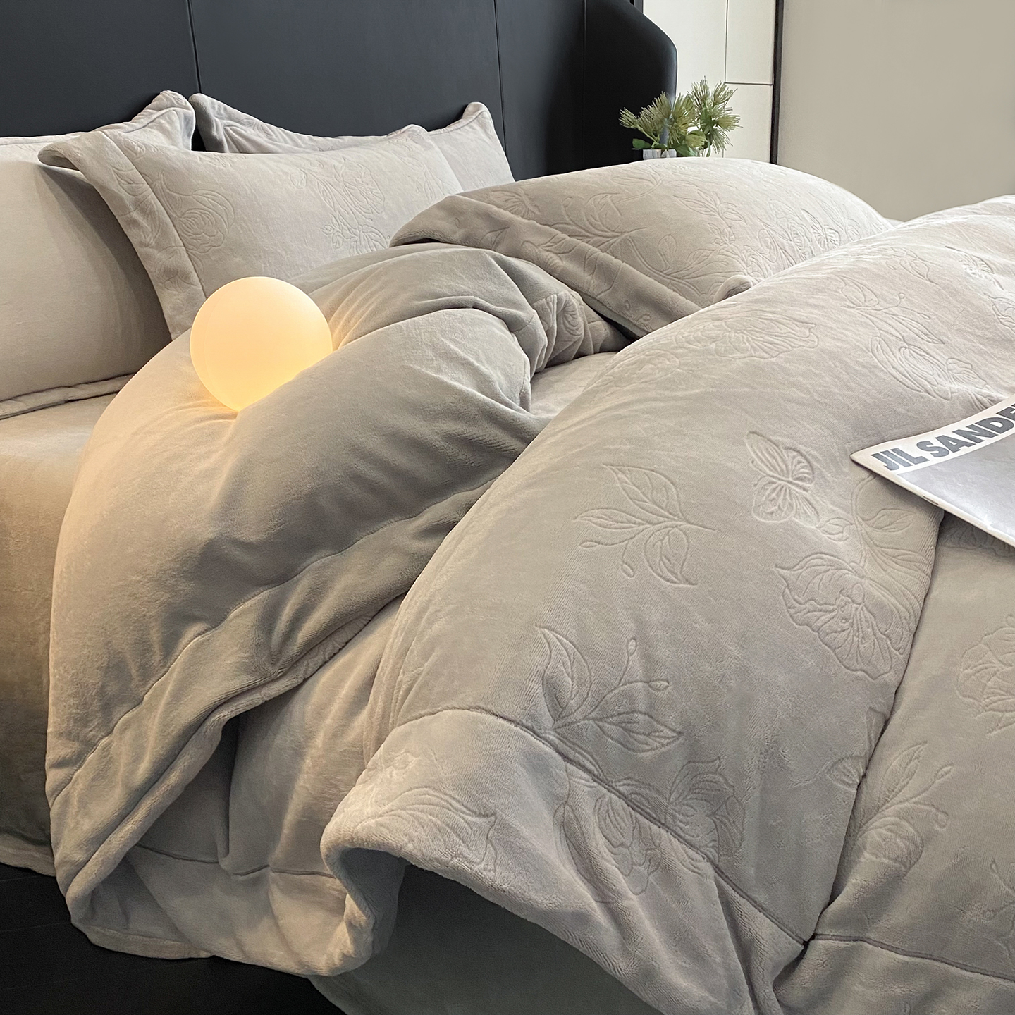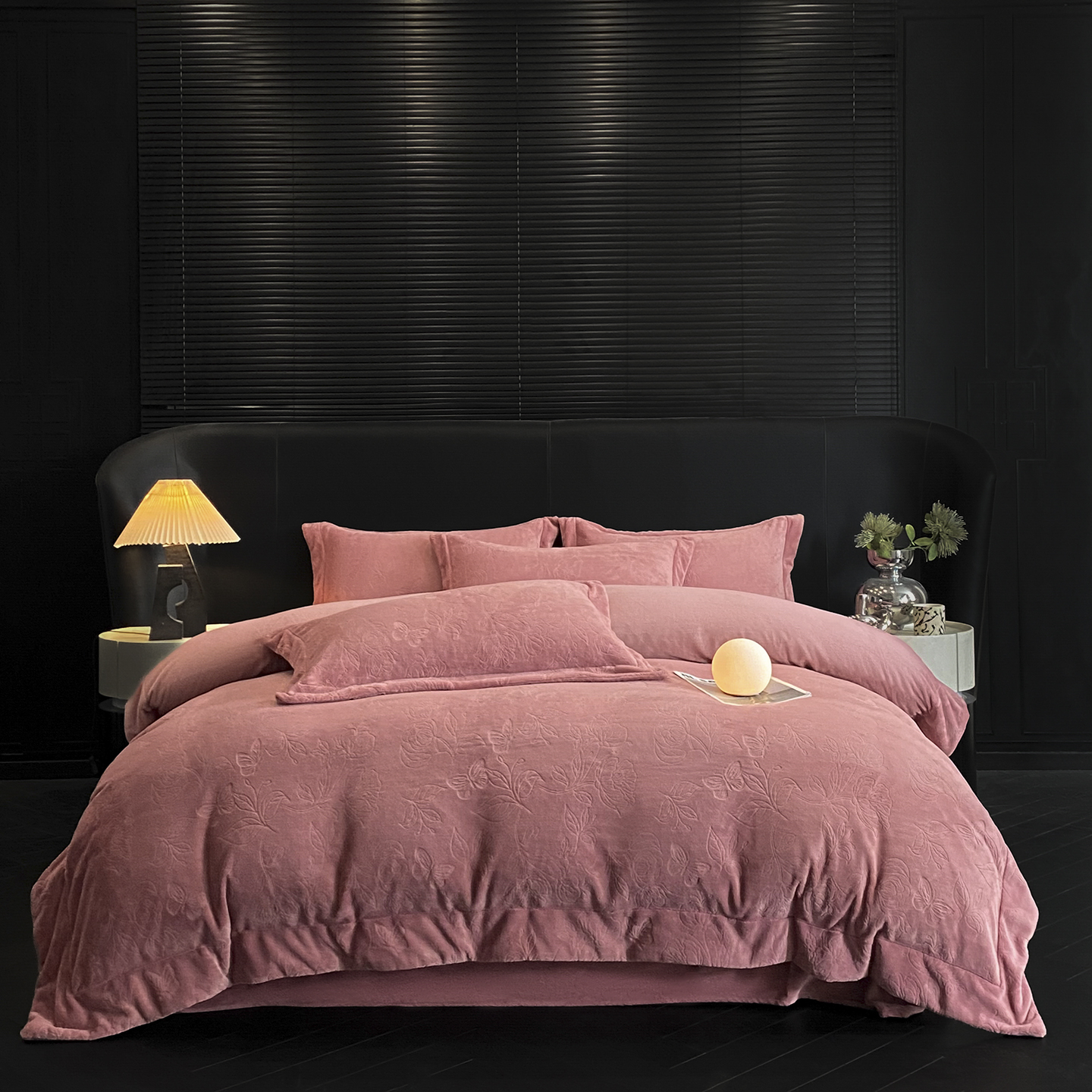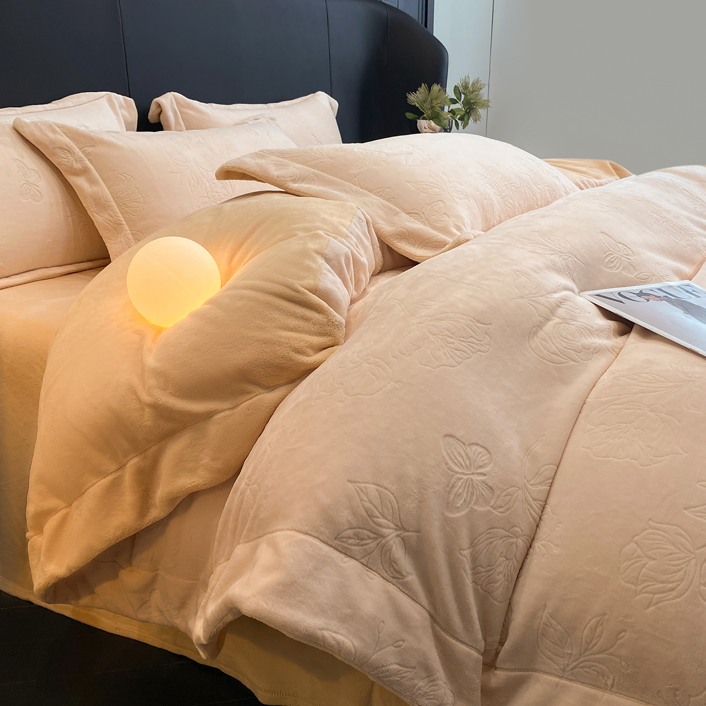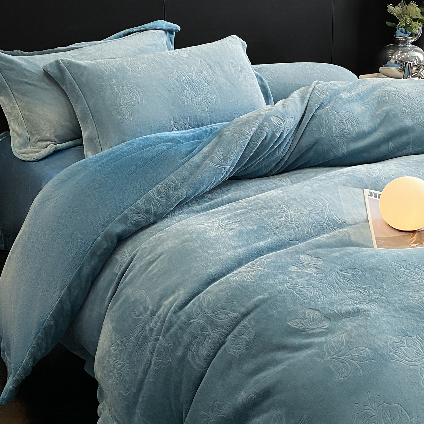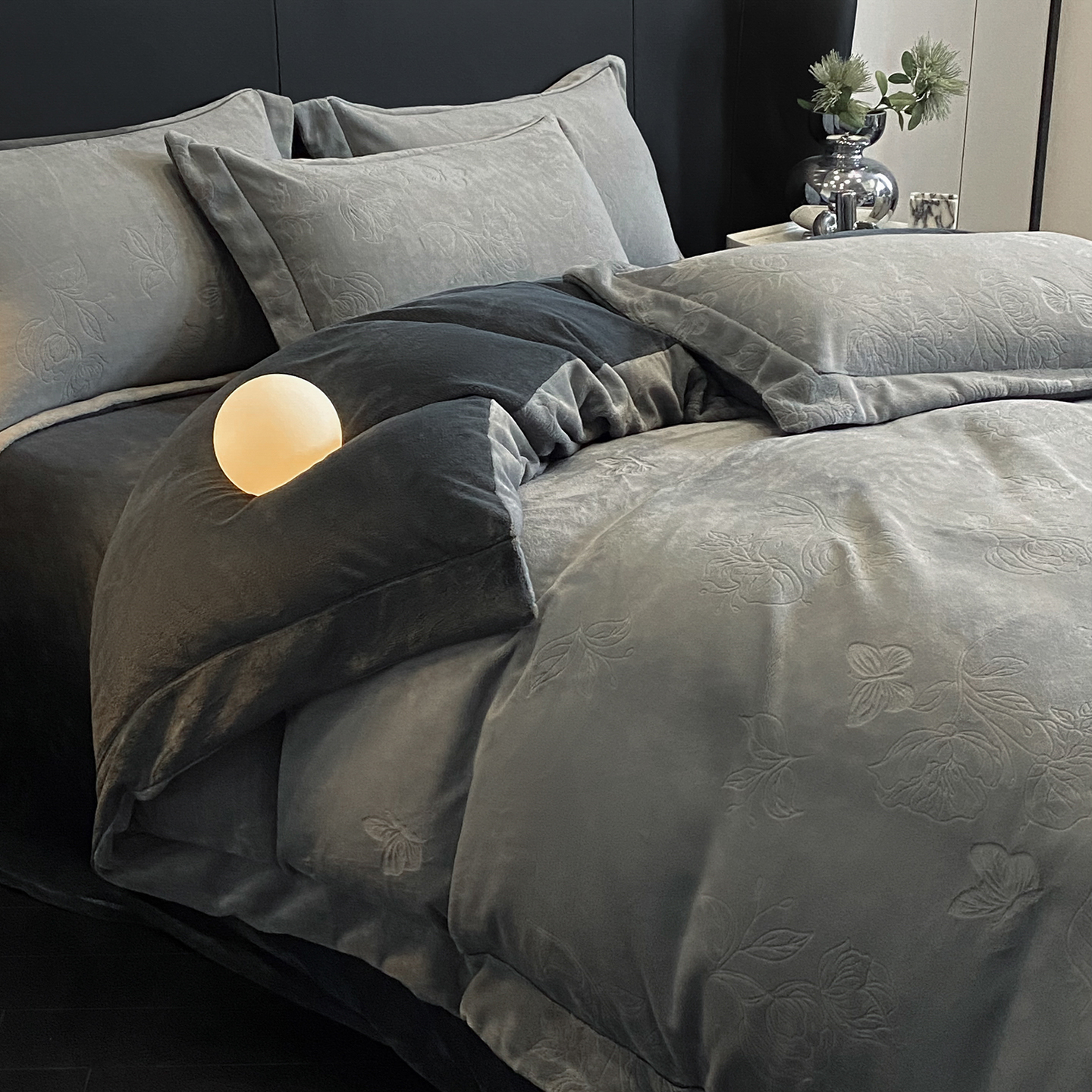商品名称:(总)控价 专版花型 2025年新款240克9.2斤全消光A类烂花牛奶绒四件套-蝴蝶戏花