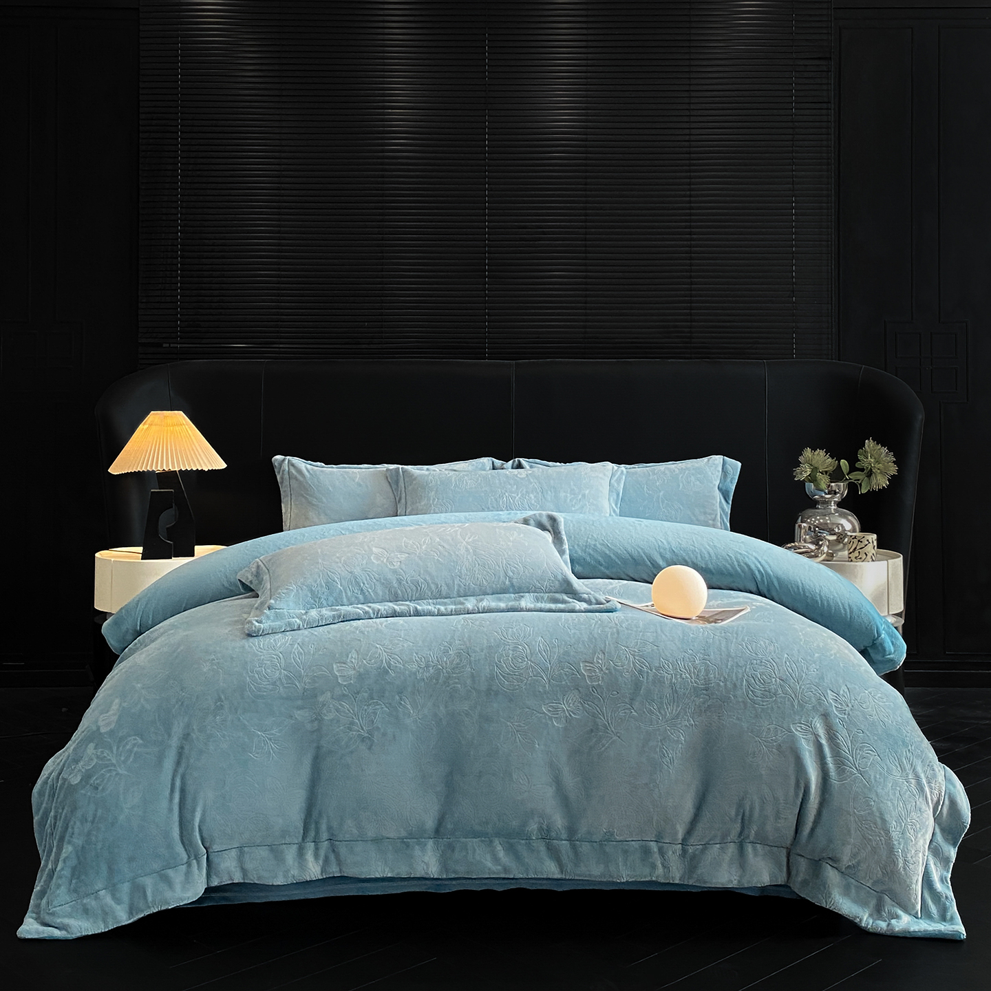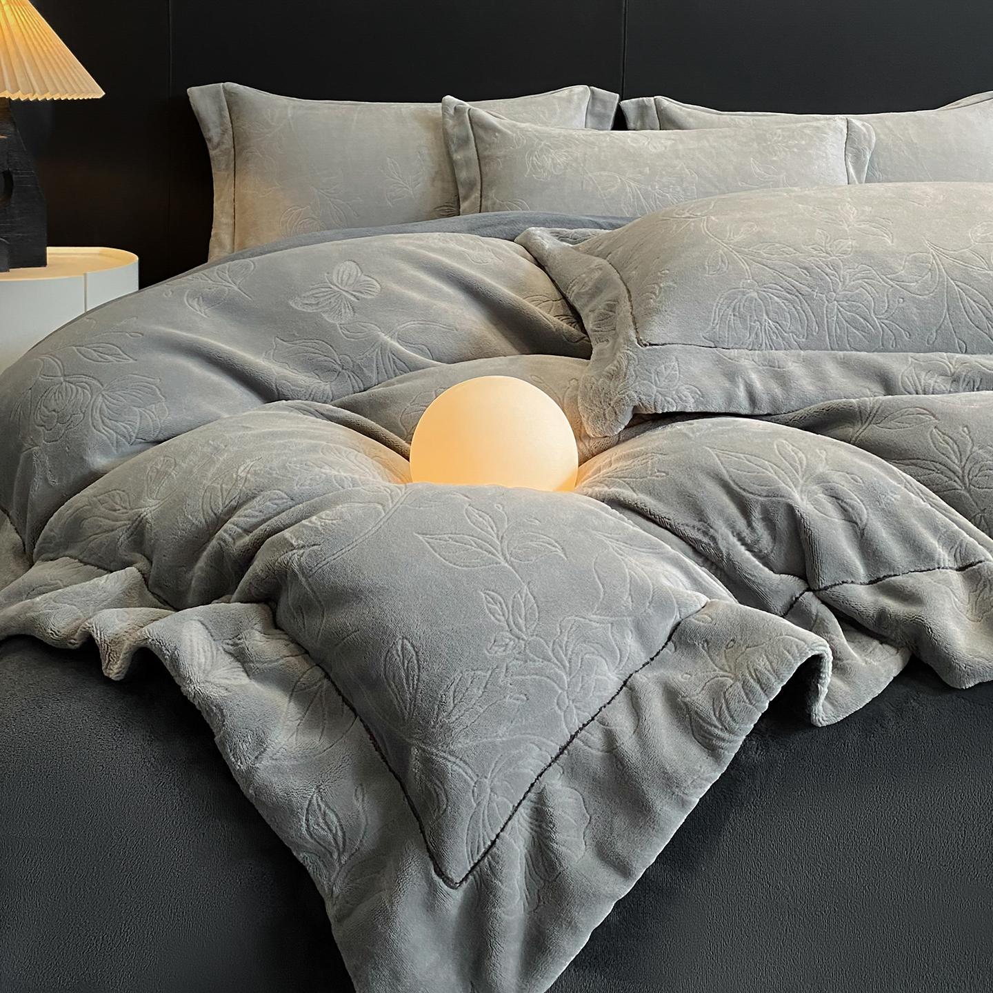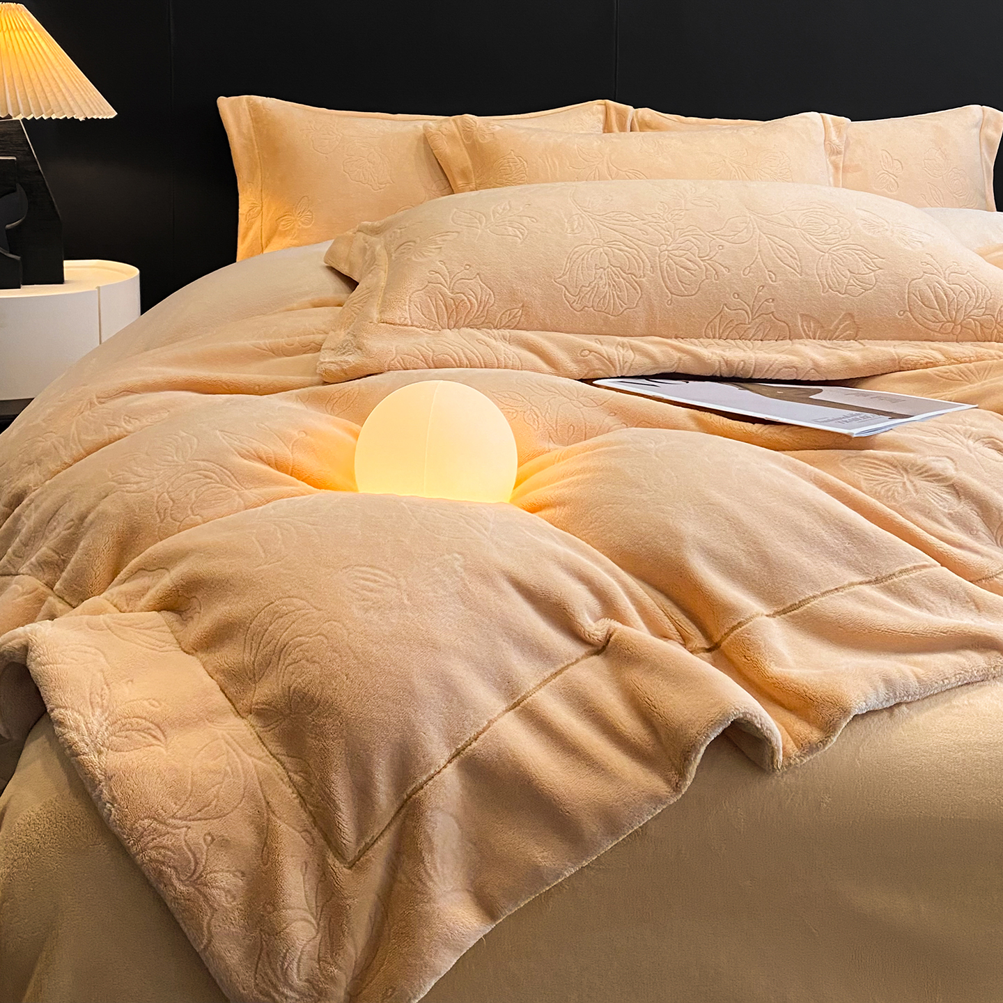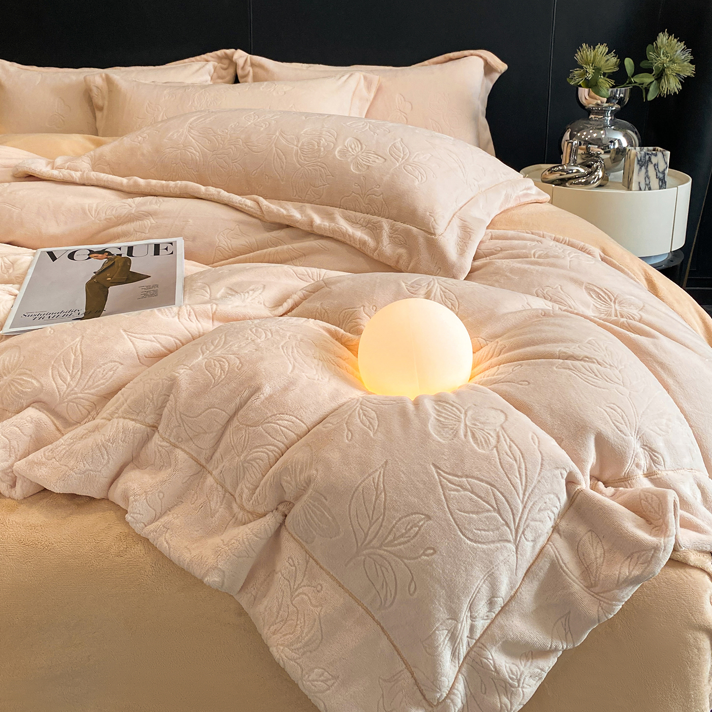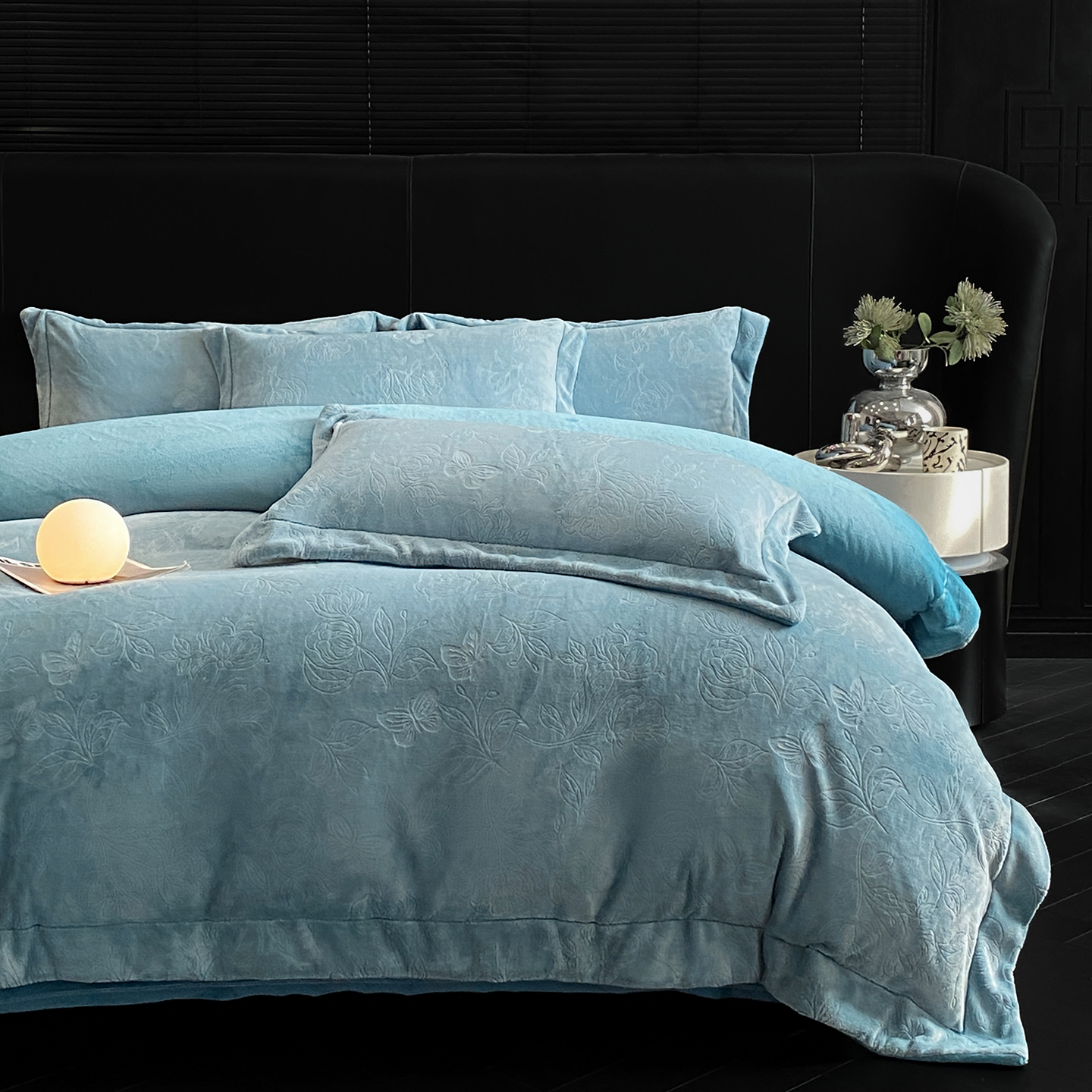 商品名称:(总)控价 专版花型 2025年新款240克9.2斤全消光A类烂花牛奶绒四件套-蝴蝶戏花