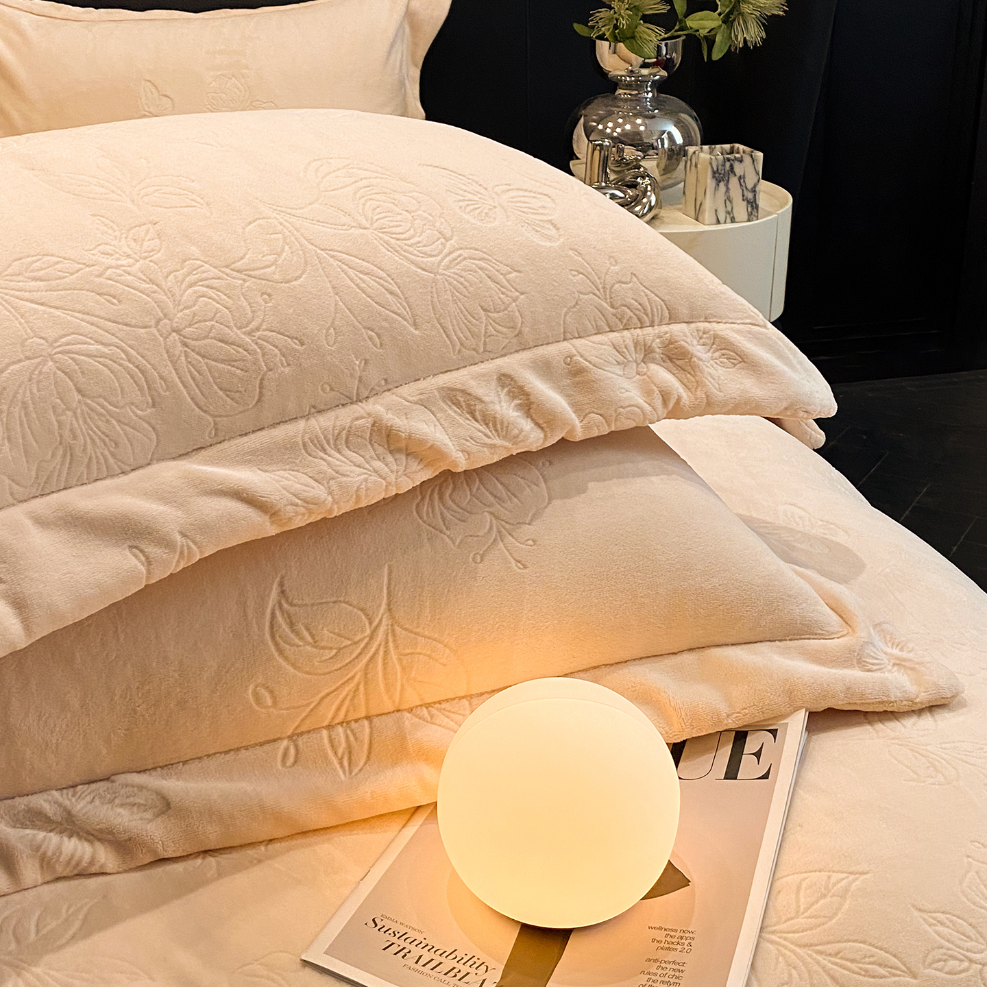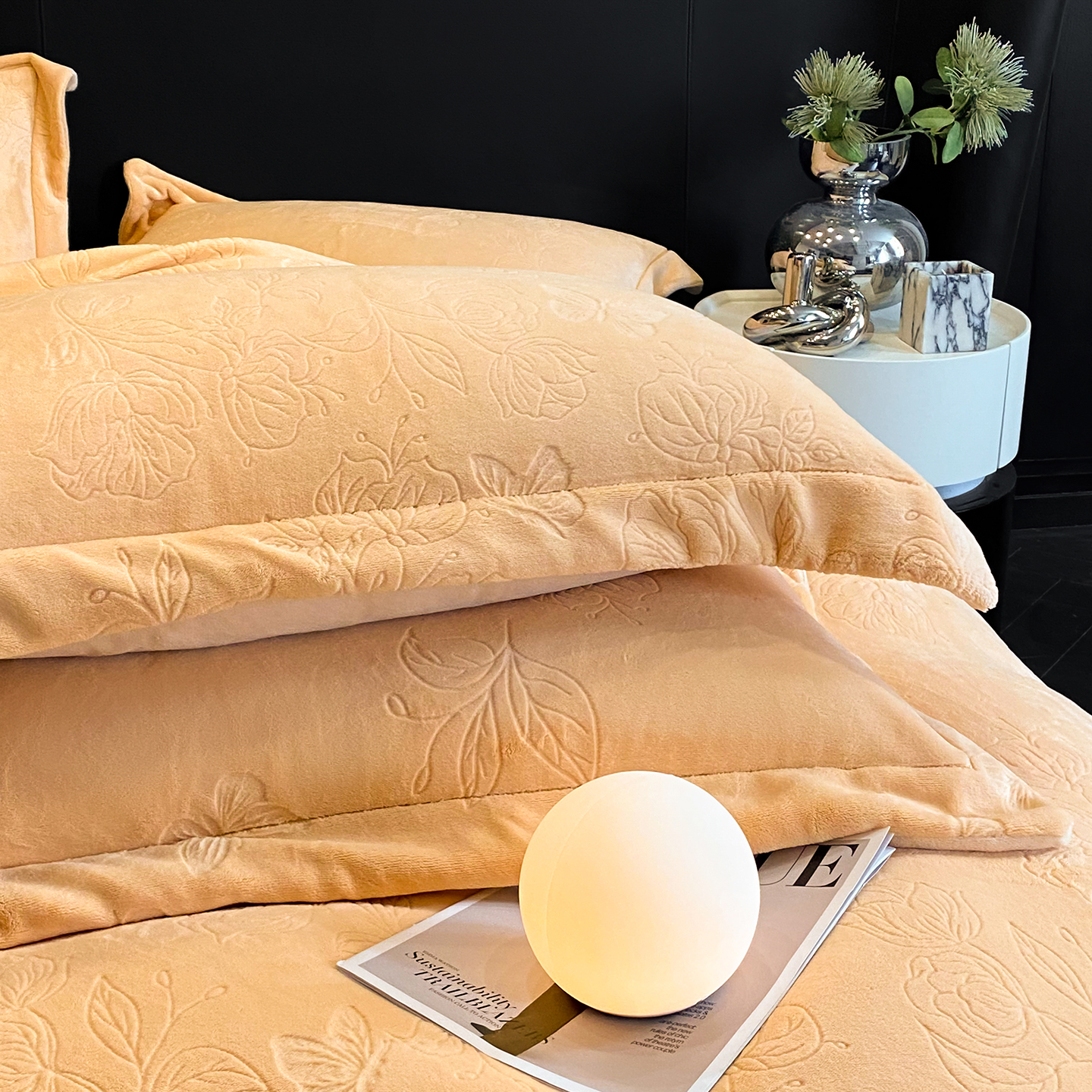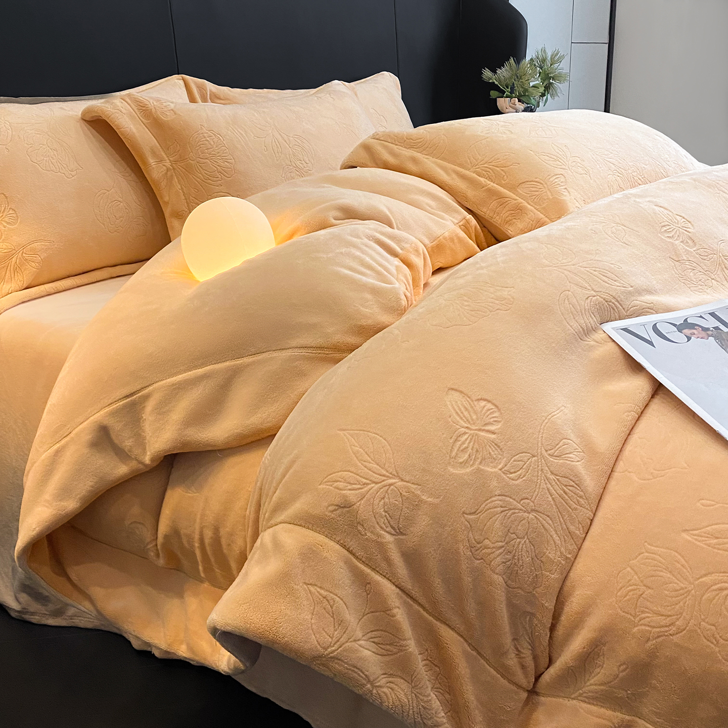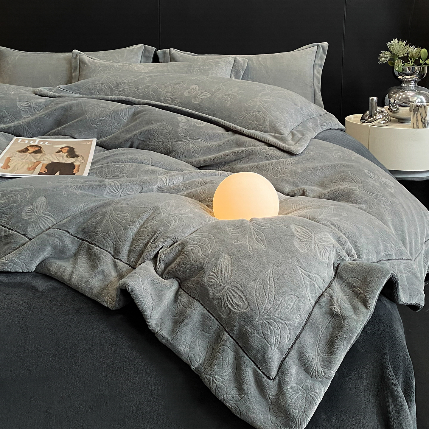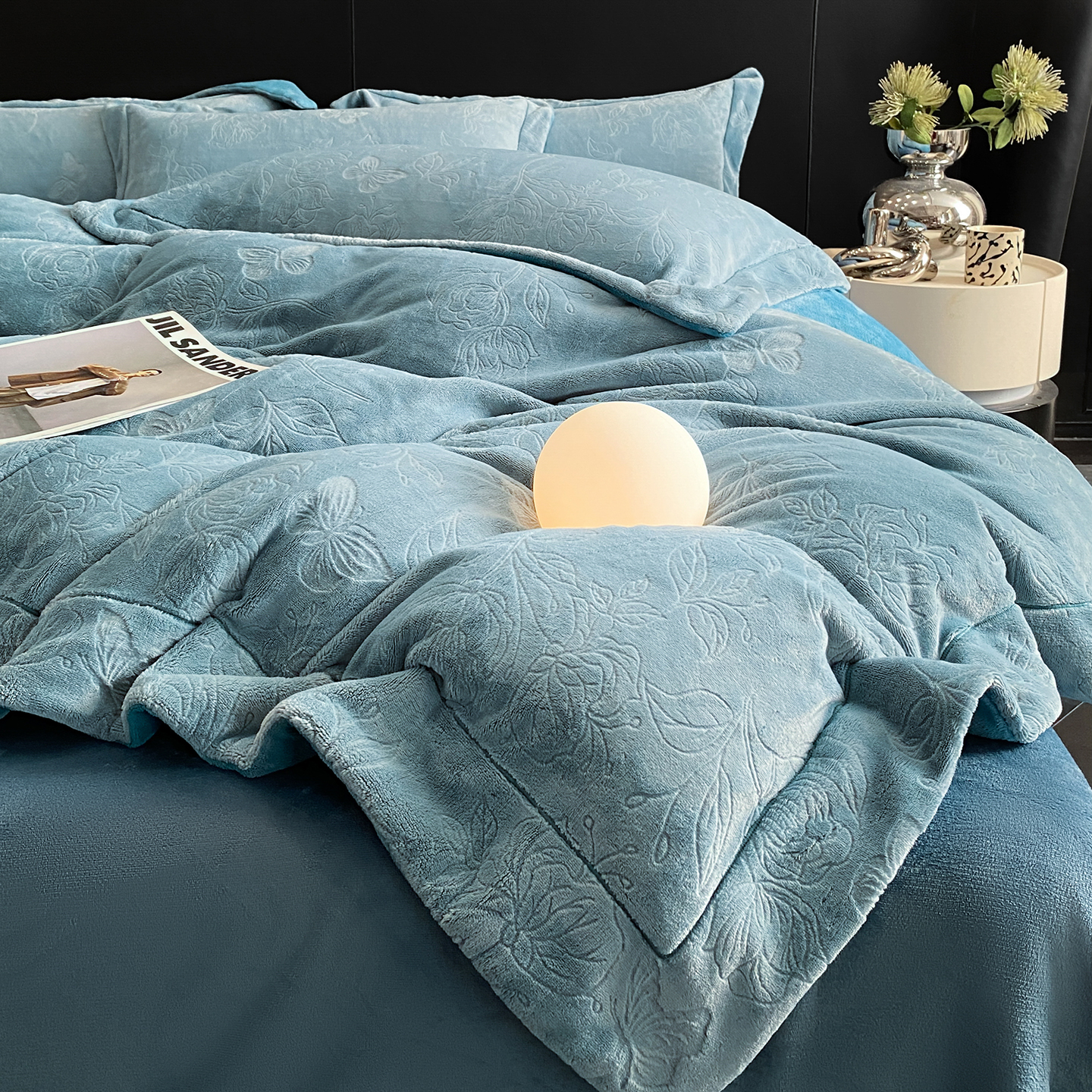 商品名称:(总)控价 专版花型 2025年新款240克9.2斤全消光A类烂花牛奶绒四件套-蝴蝶戏花