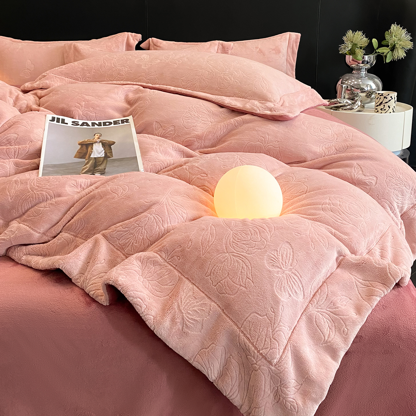 (总)控价 专版花型 2025年新款240克9.2斤全消光A类烂花牛奶绒四件套-蝴蝶戏花