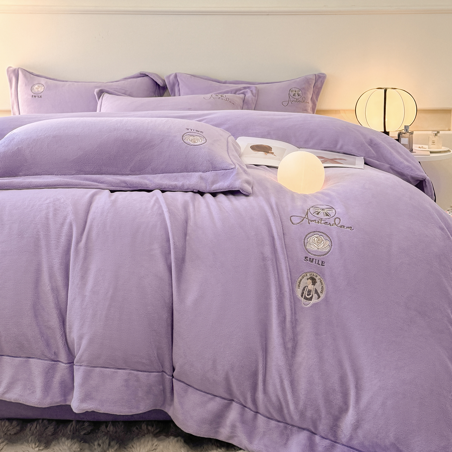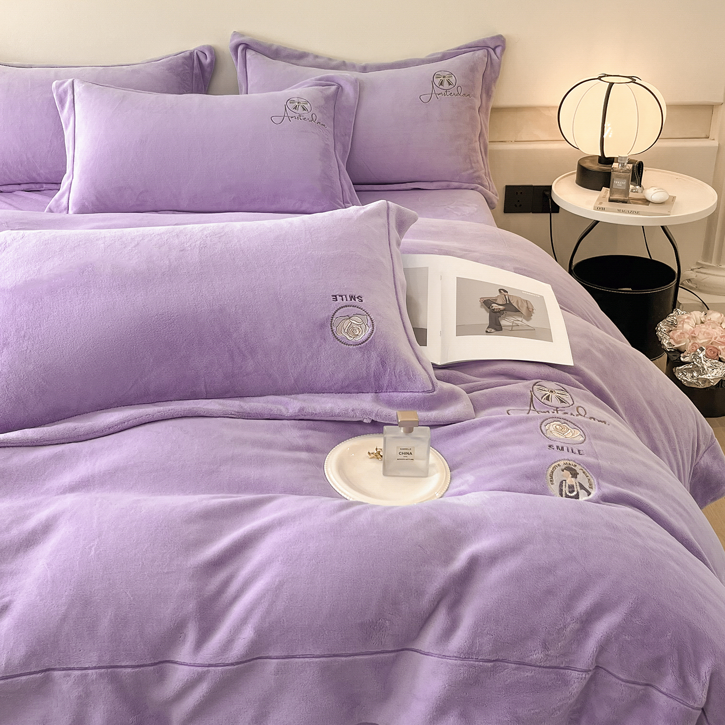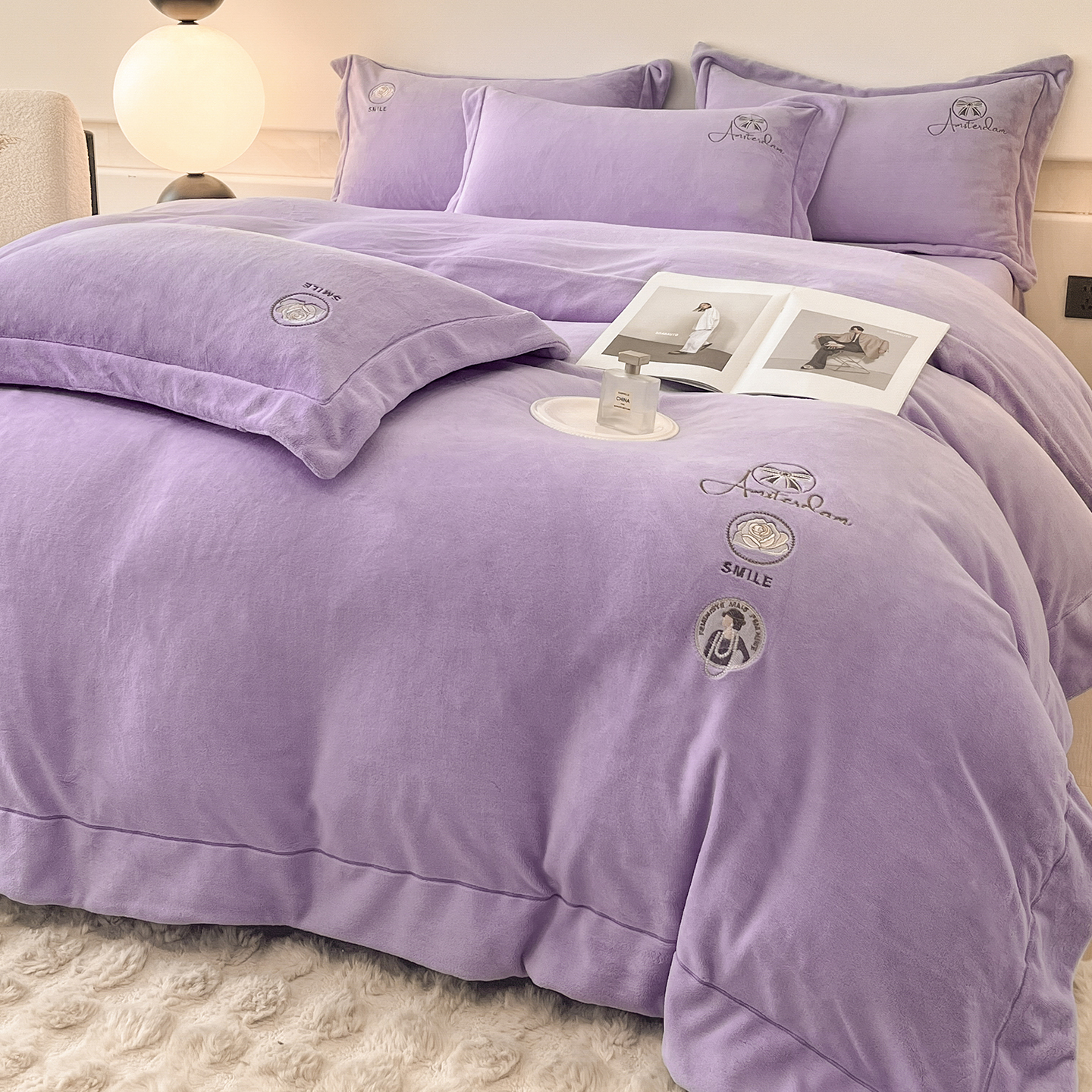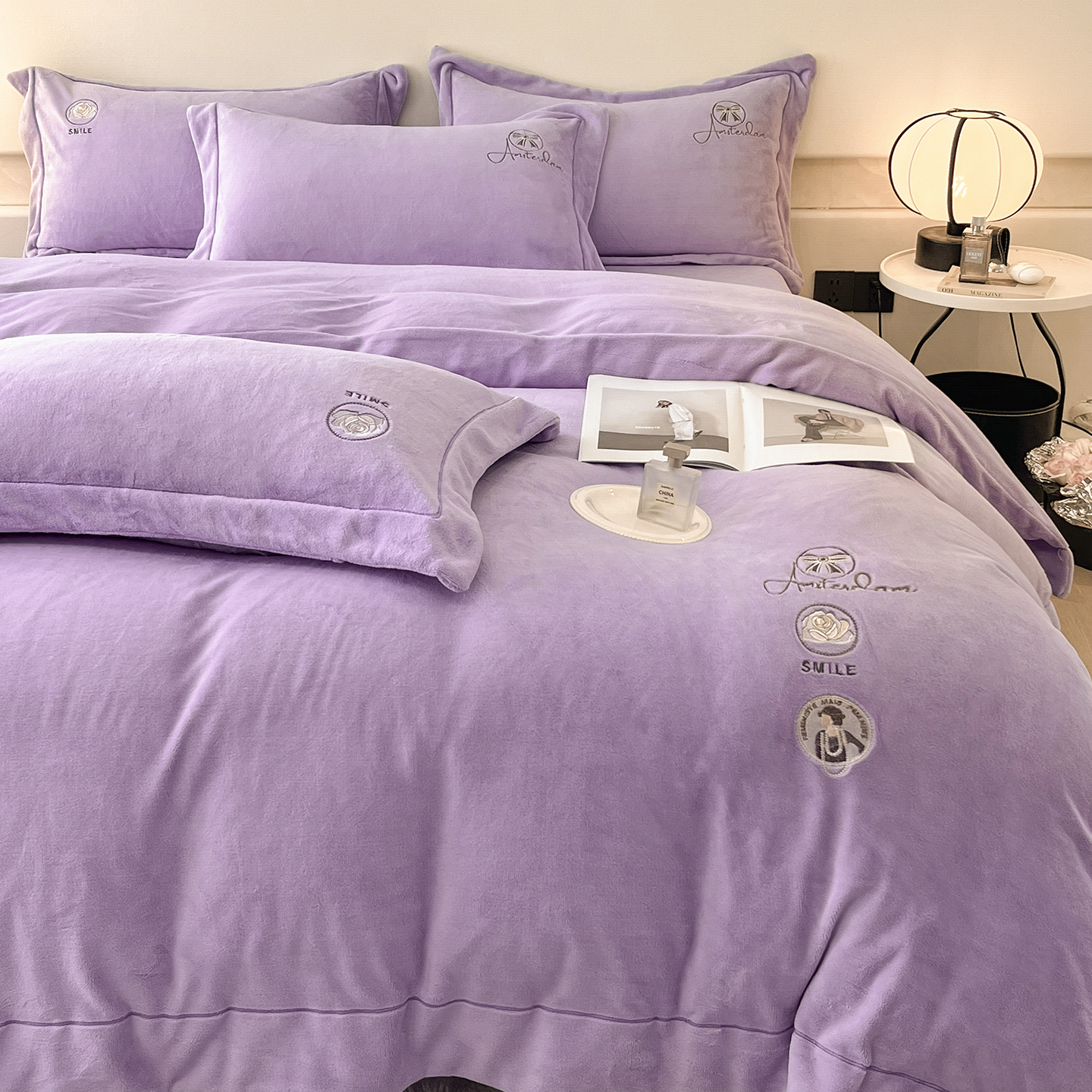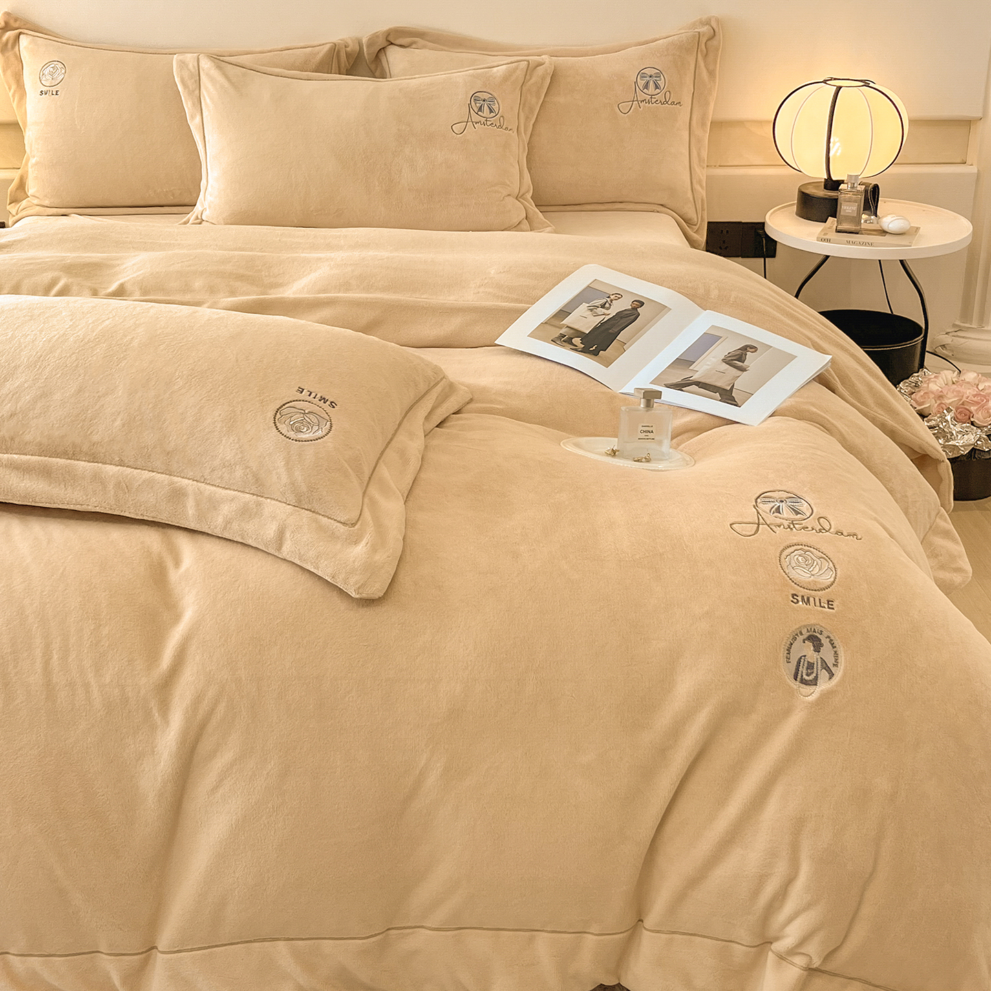 商品名称:(总)控价 专版花型 2025年新款9.2斤240克全消光A类大刺绣牛奶绒四件套-伊菲