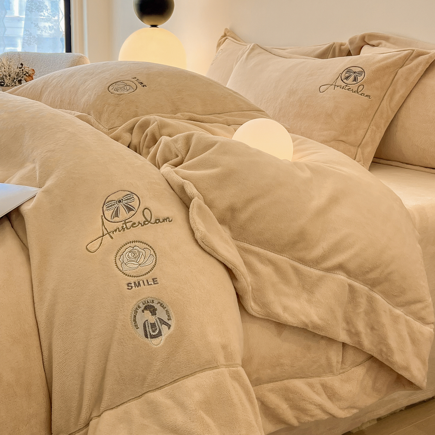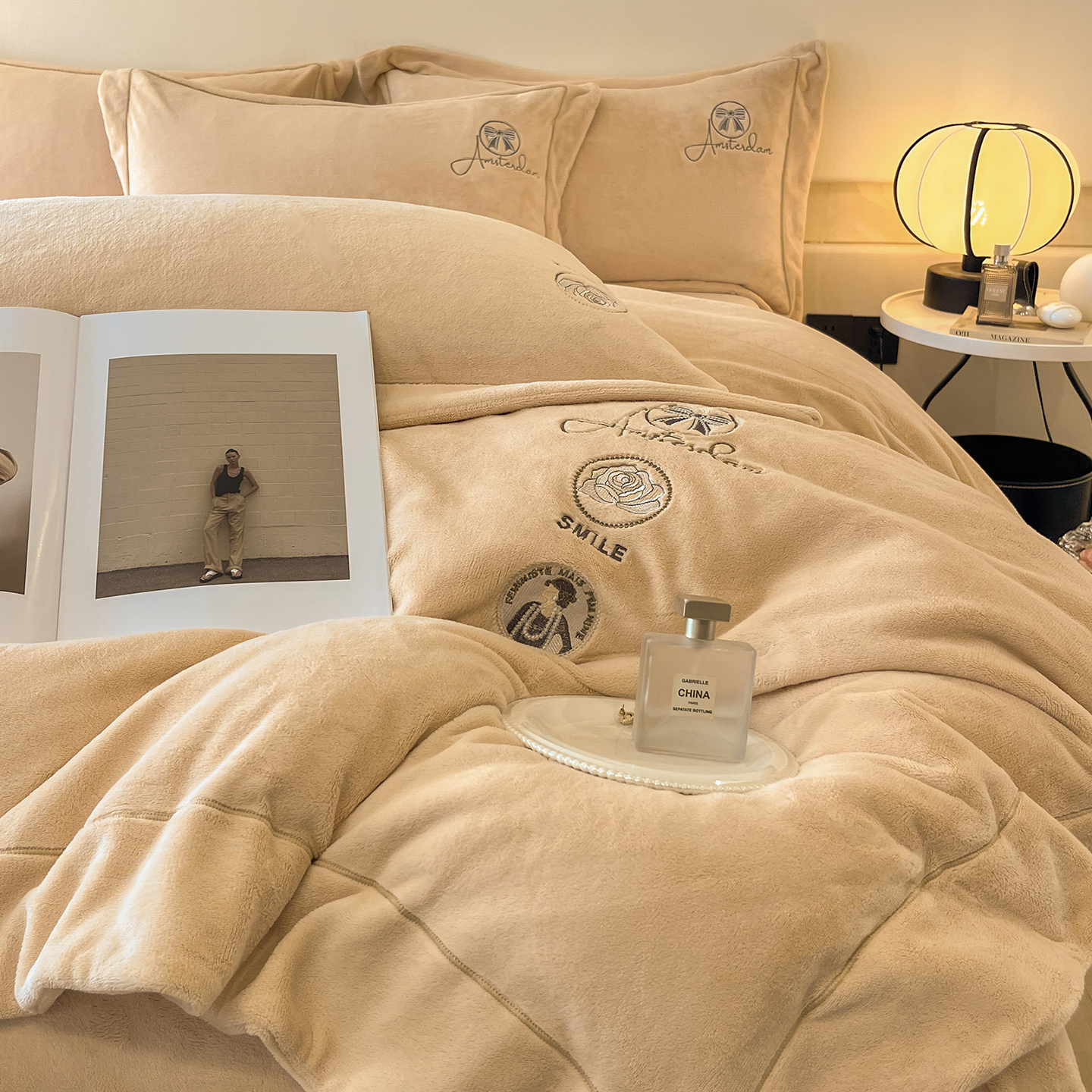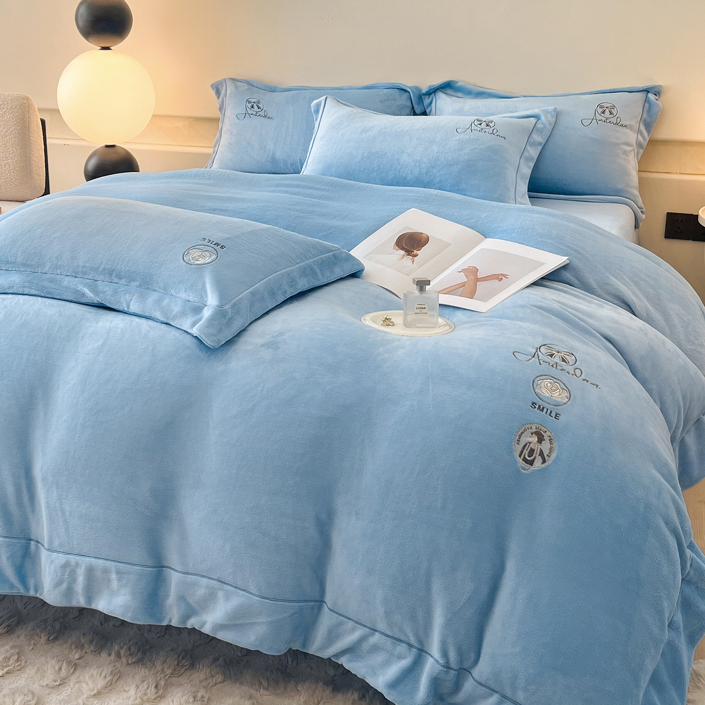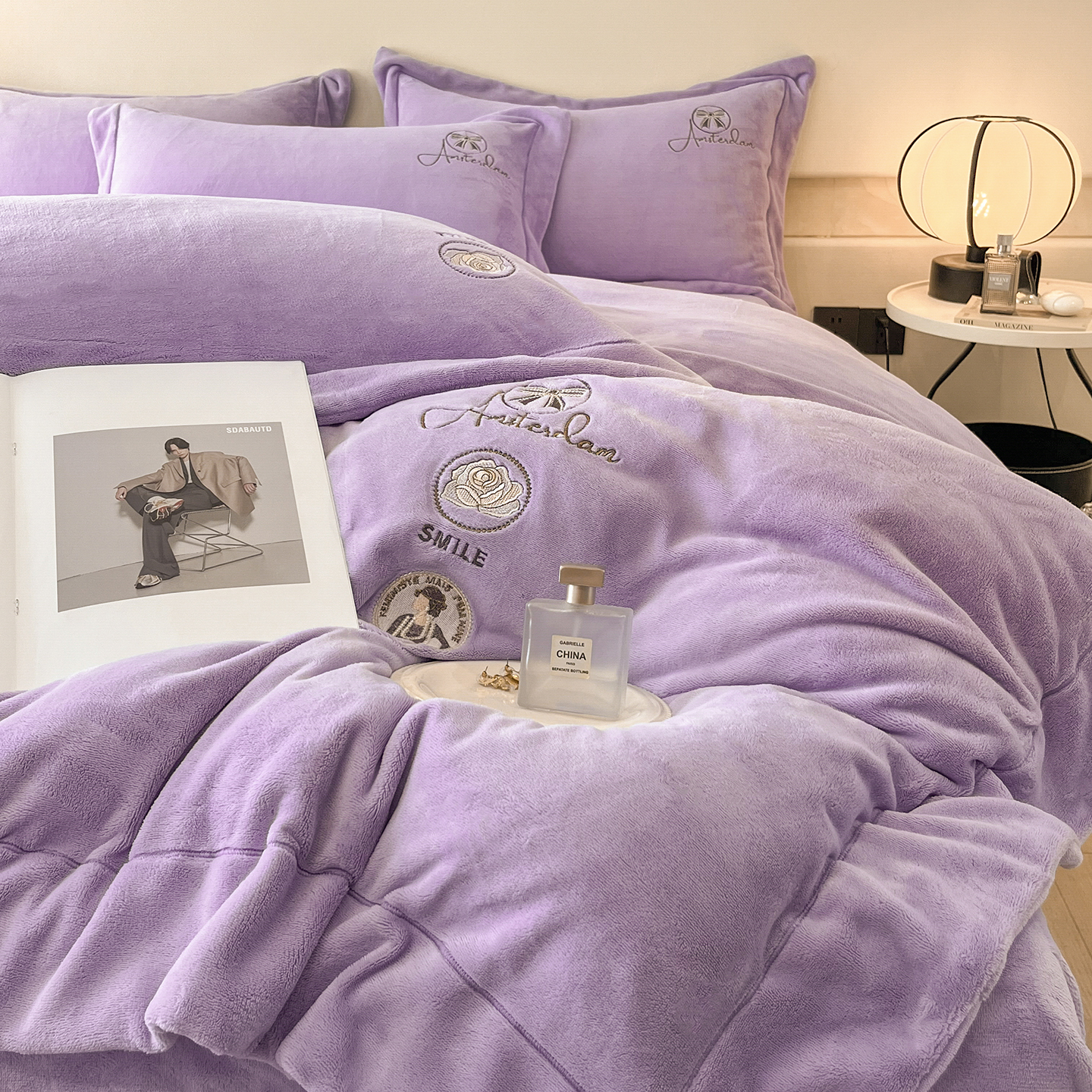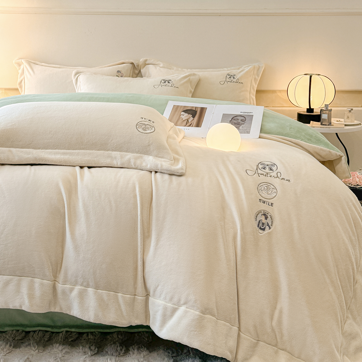 商品名称:(总)控价 专版花型 2025年新款9.2斤240克全消光A类大刺绣牛奶绒四件套-伊菲