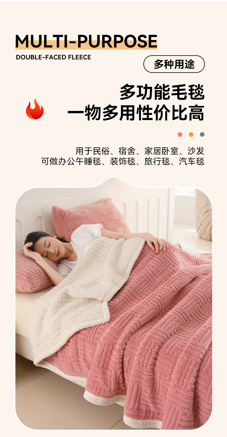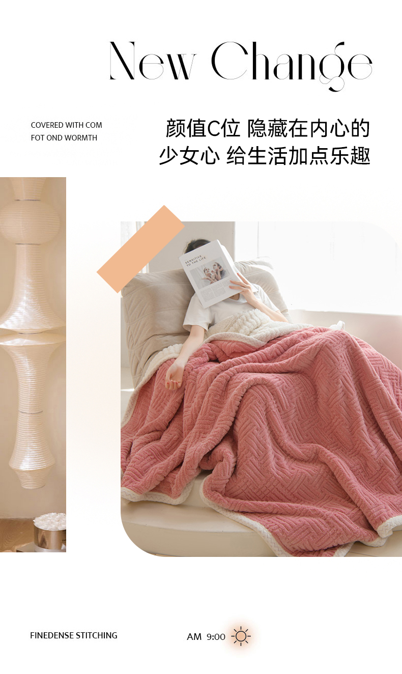 圣楚家纺 2025新款塔芙绒羊羔绒双层毛毯盖毯毯子-暖窝 暖窝樱粉