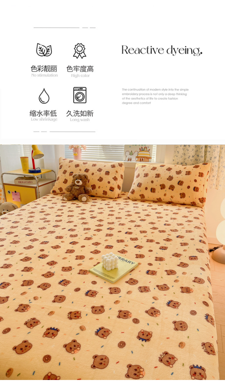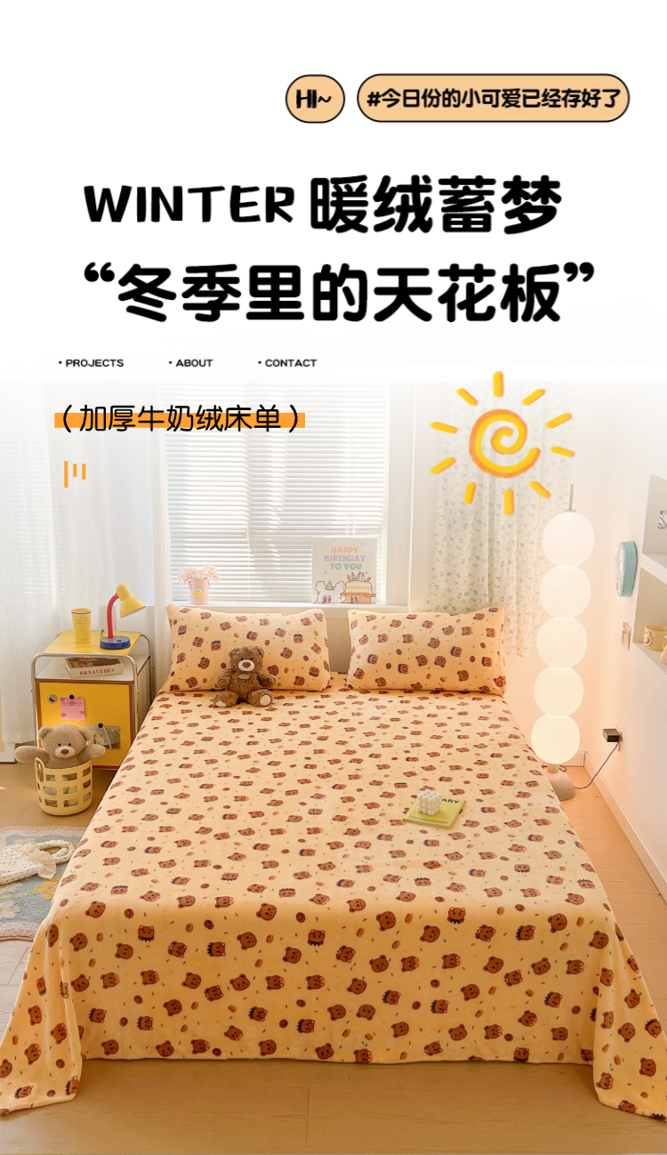 维娜斯家纺 2025新款卡通牛奶绒印花床单单件 小熊梦梦