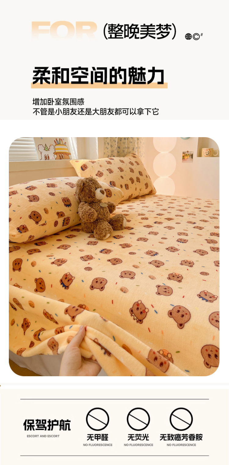 (总)维娜斯家纺 2025新款卡通牛奶绒印花床笠单件,草莓酱,花语岚山,欢度节日,欢乐猫咪,可爱猫咪,魅力小熊,萌萌哈奇,青柠薄荷,仙草,小熊梦梦