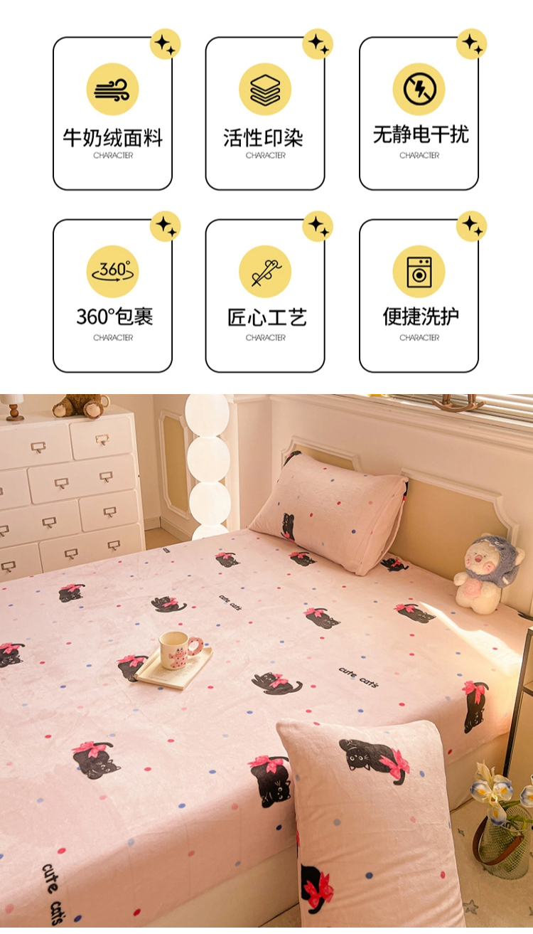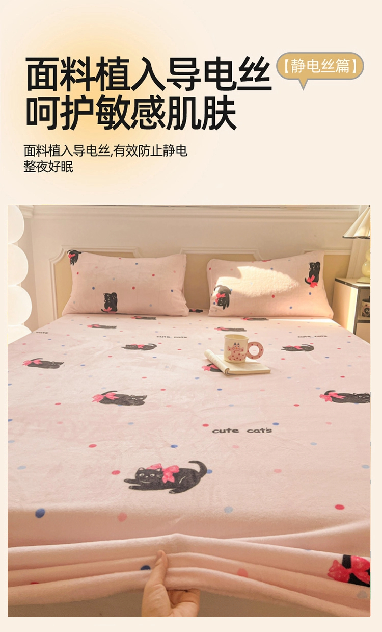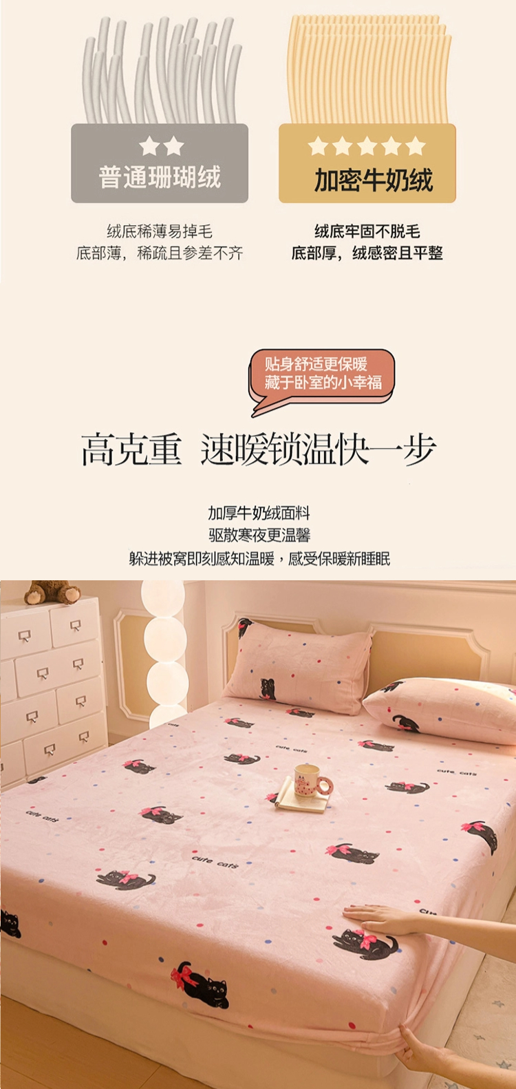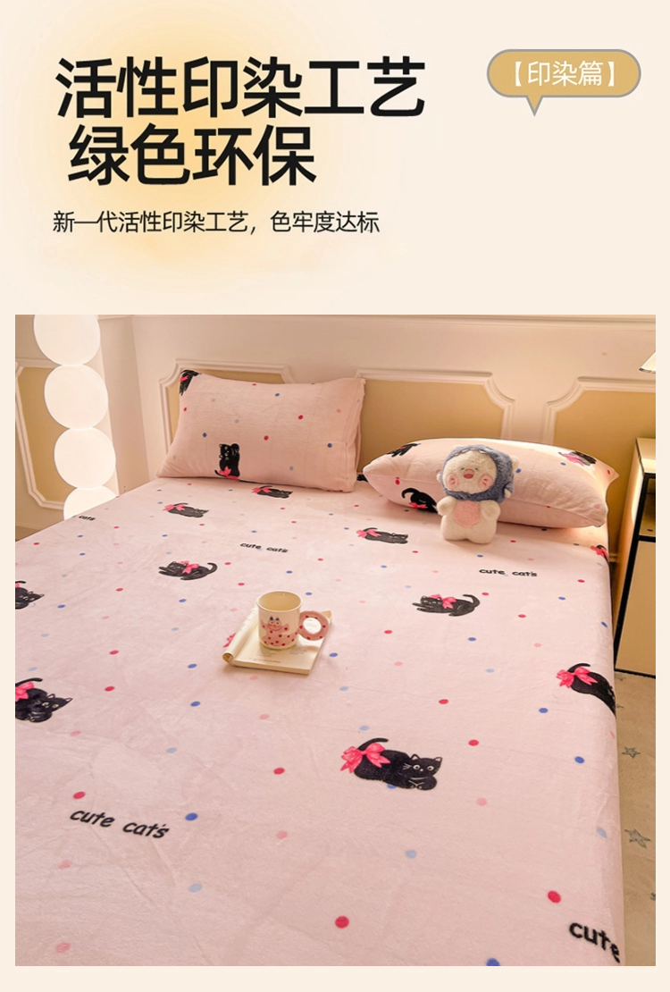 商品名称:维娜斯家纺 2025新款卡通牛奶绒印花床笠单件 可爱猫咪