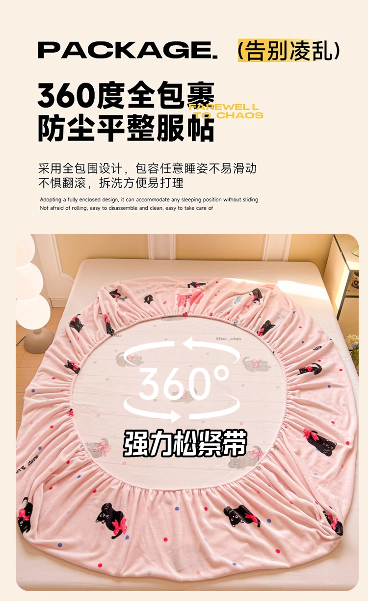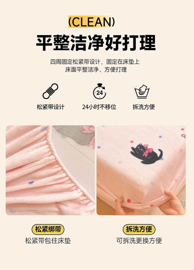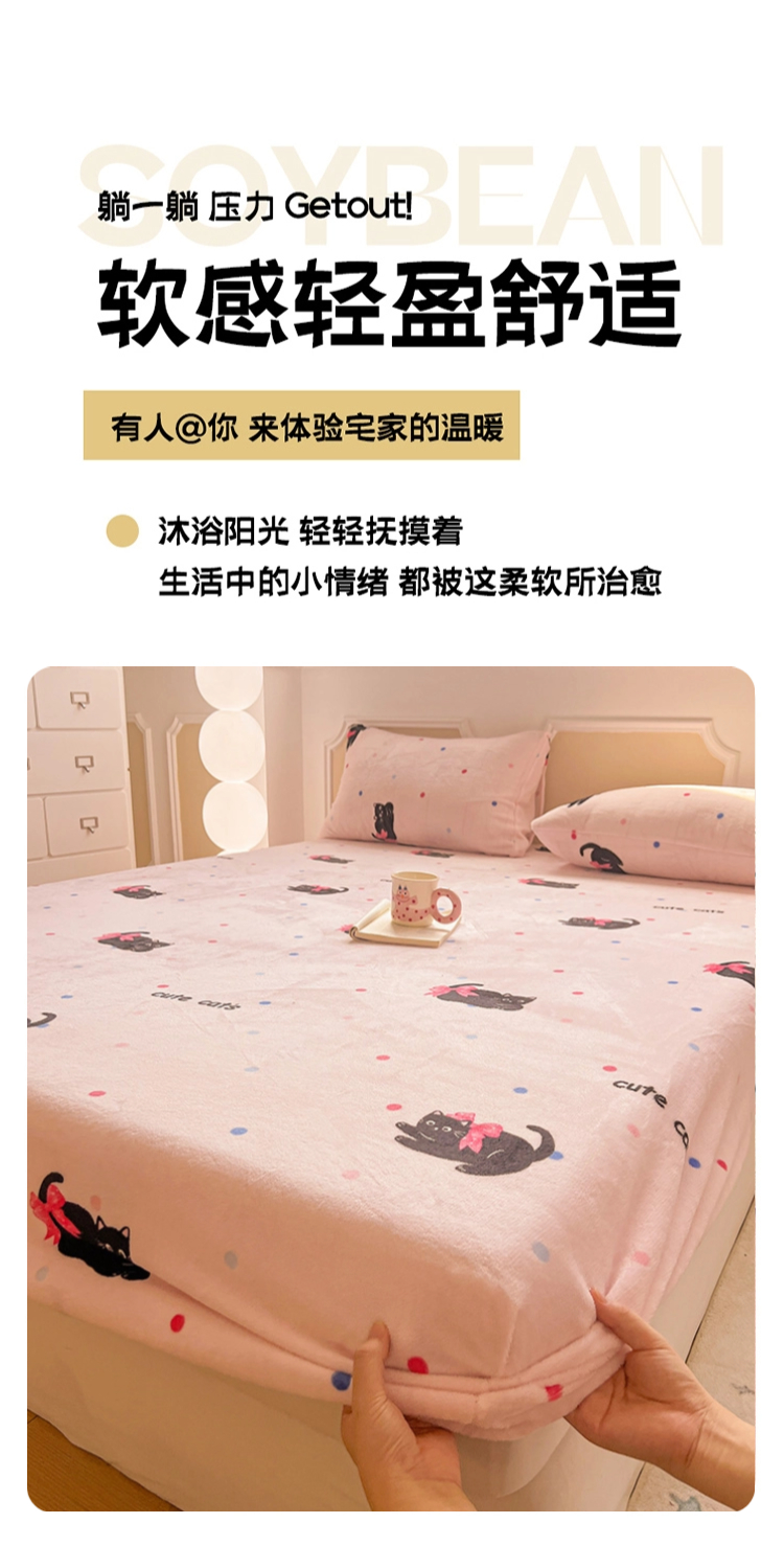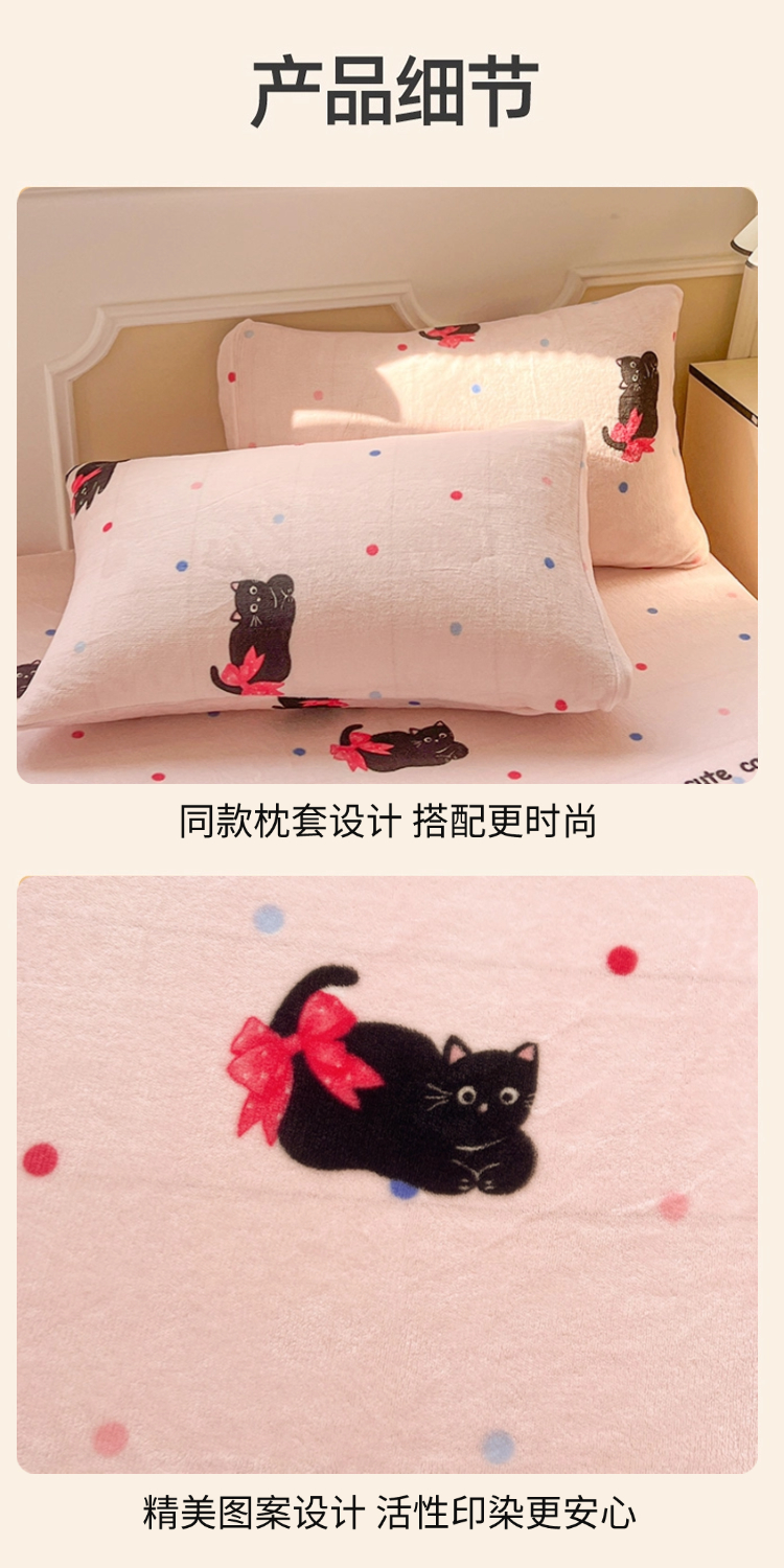 商品名称:维娜斯家纺 2025新款卡通牛奶绒印花床笠单件 可爱猫咪