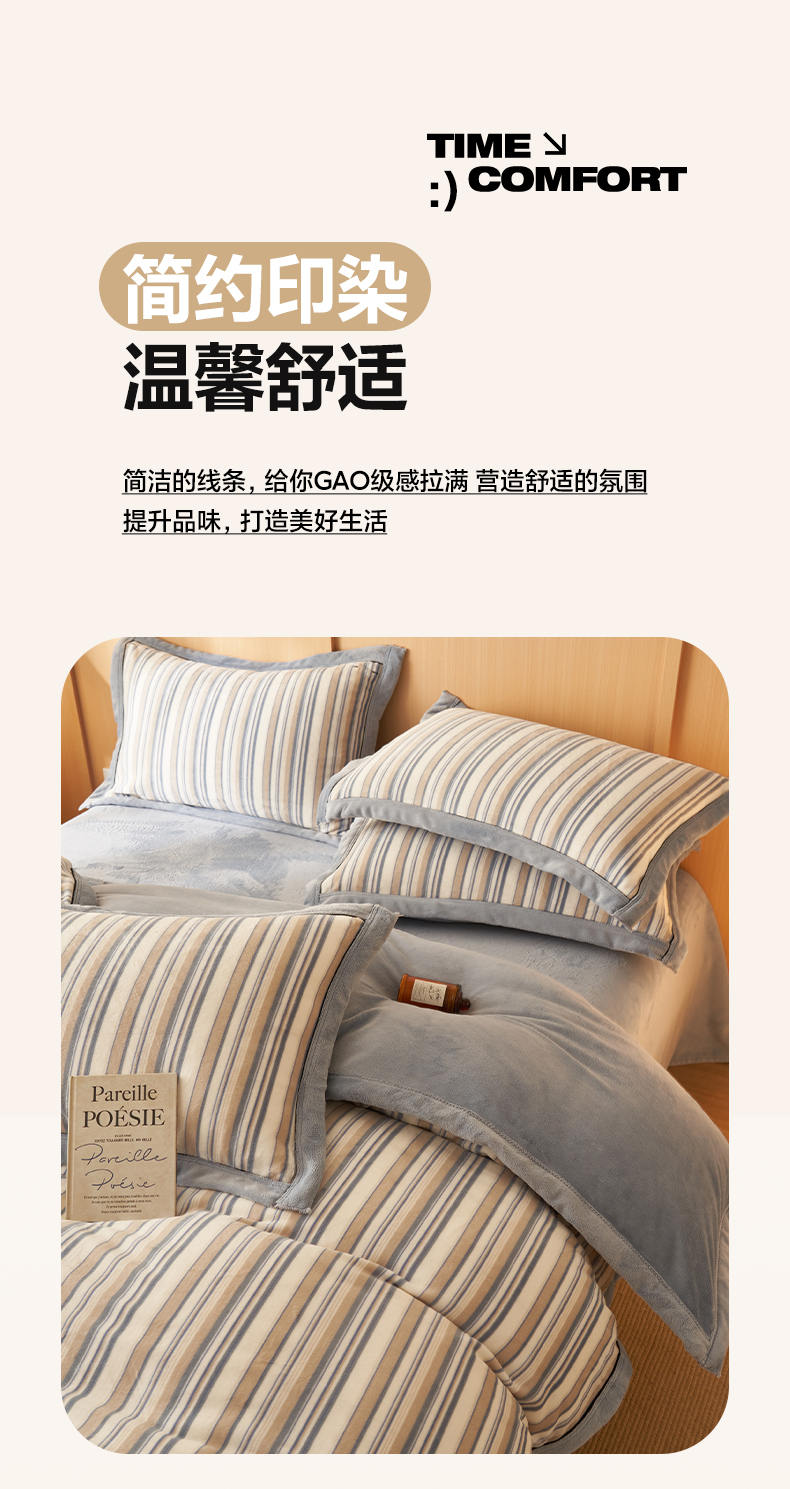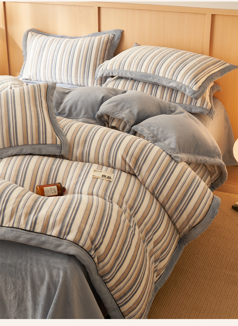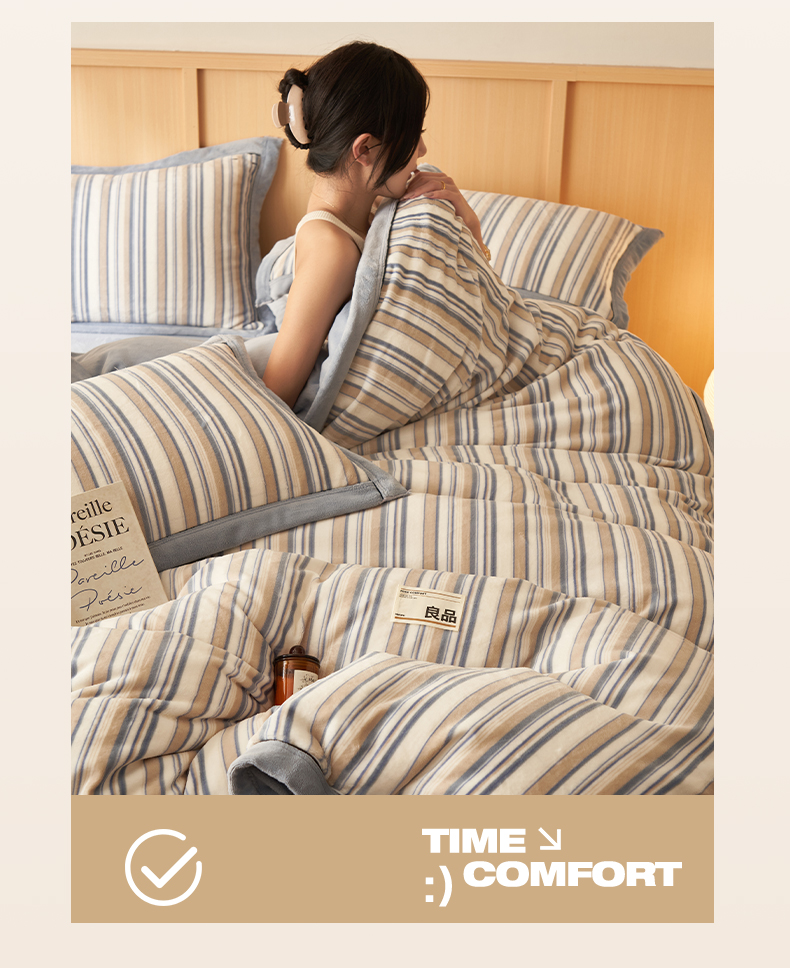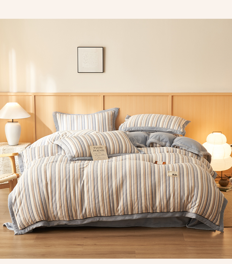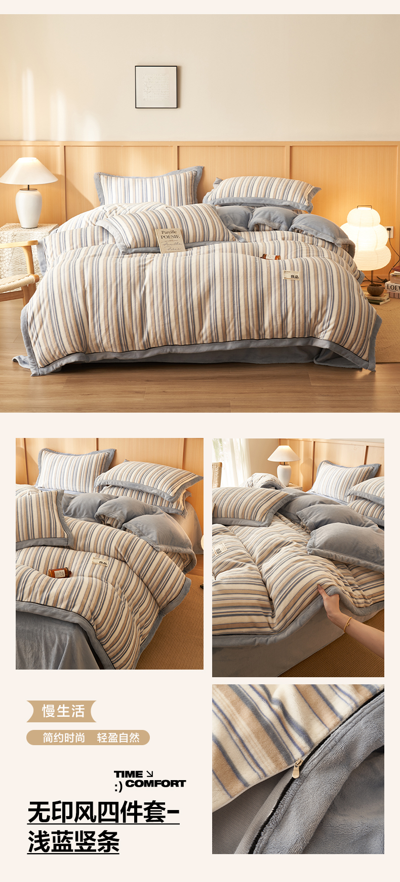 • 91家纺网 家纺一手货源 找家纺 寐绸家纺 2025新款牛奶绒无印风单被套 无印风被套-浅蓝竖条