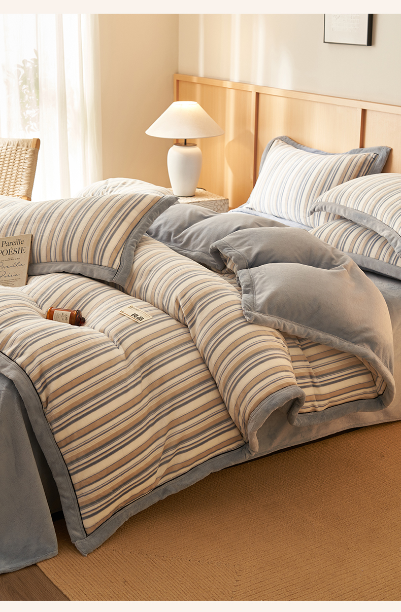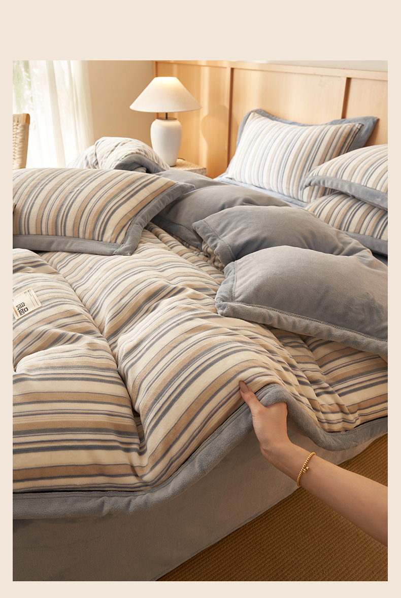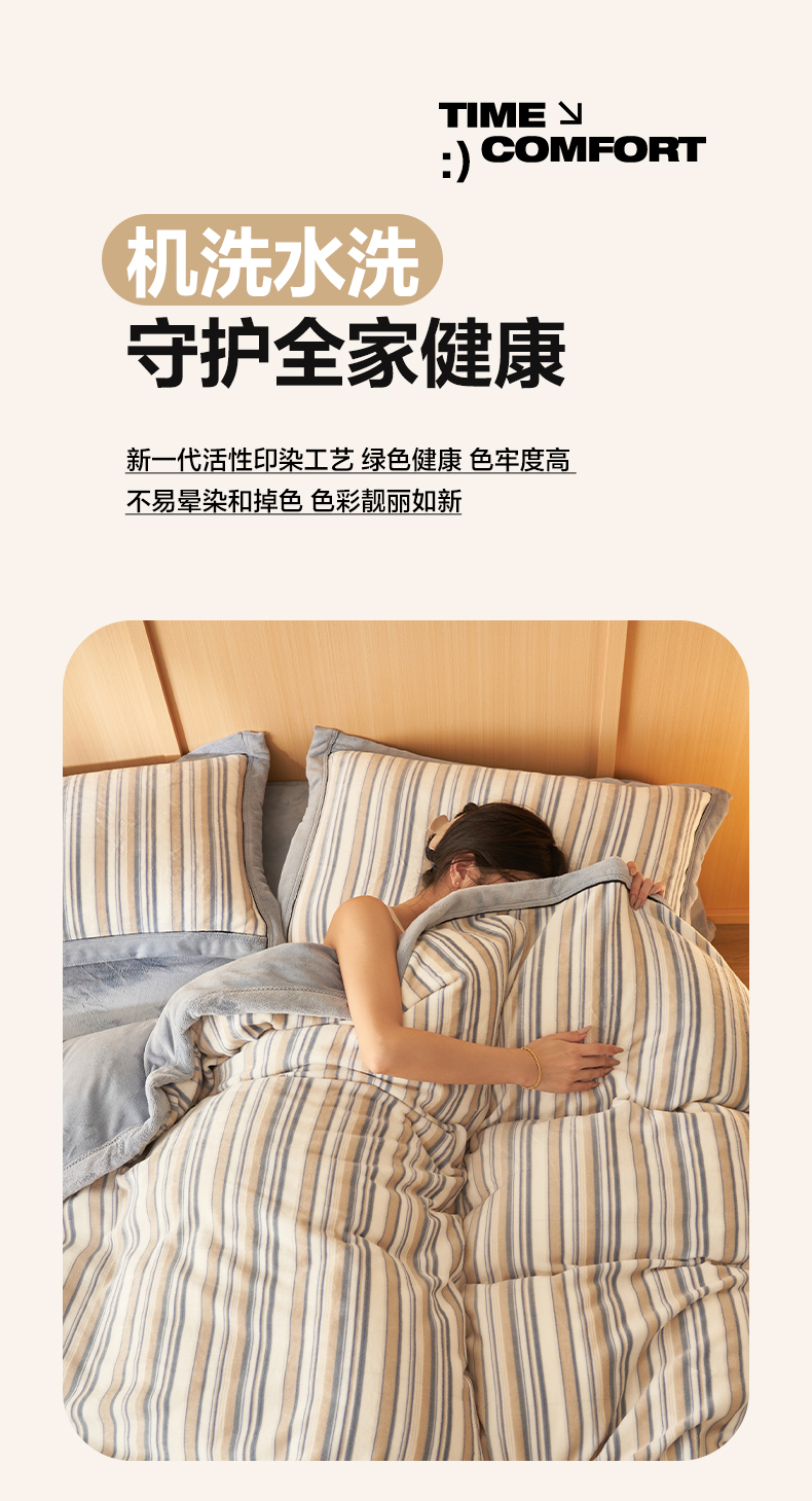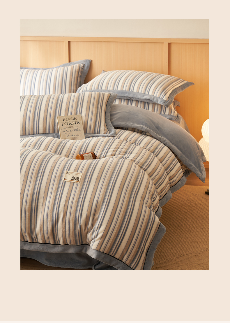 • 91家纺网 家纺一手货源 找家纺 寐绸家纺 2025新款牛奶绒无印风单被套 无印风被套-浅蓝竖条