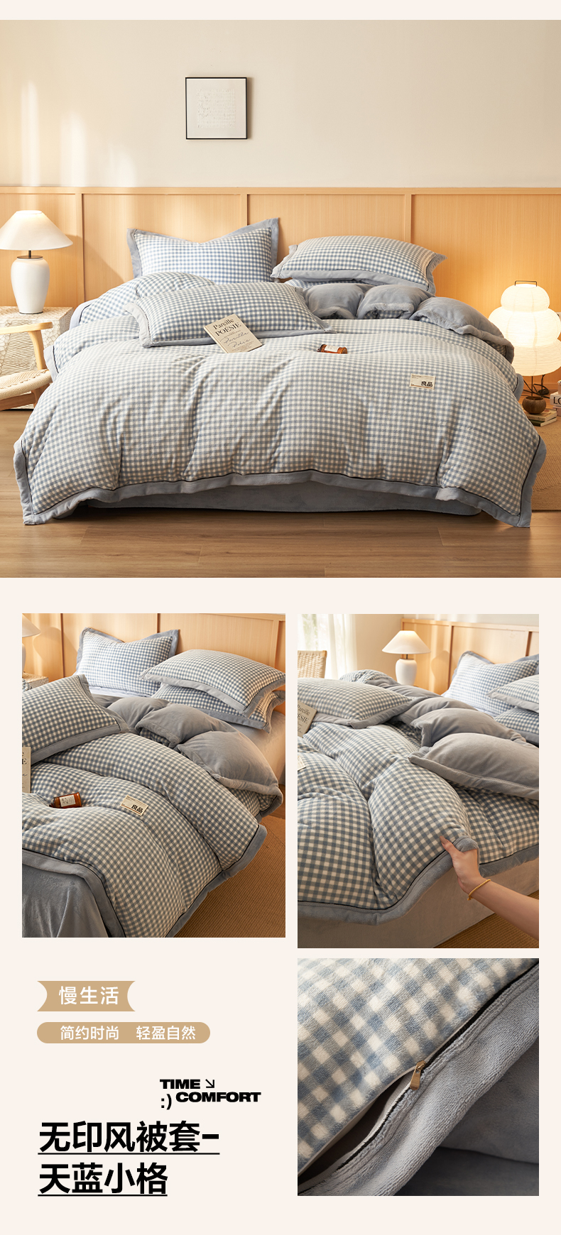 (总)寐绸家纺 2025新款牛奶绒无印风单被套,无印风被套-大咖格,无印风被套-大灰格,无印风被套-灰白格,无印风被套-蓝调格,无印风被套-洛卡灰格,无印风被套-莫妮卡,无印风被套-浅蓝竖条,无印风被套-天蓝小格