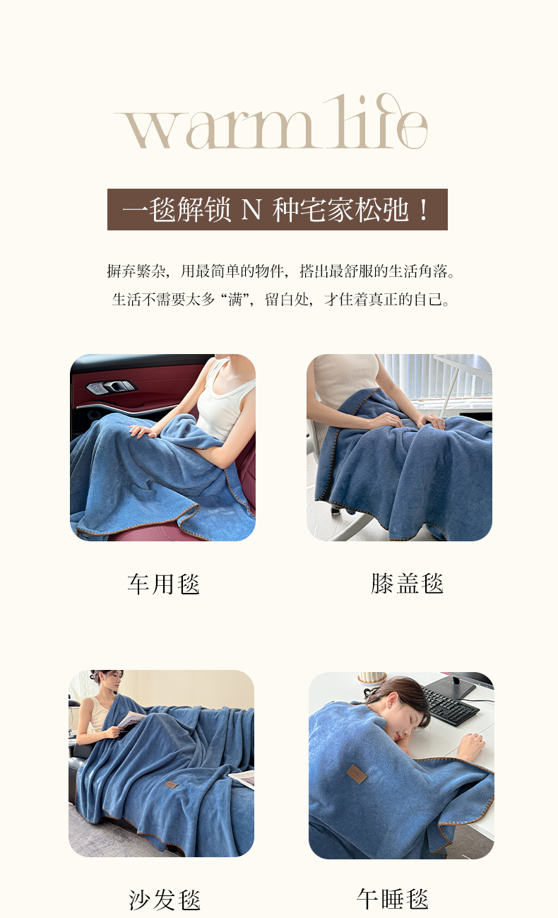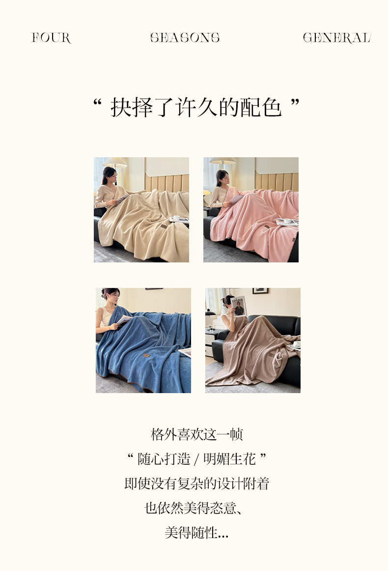 (总)格真 2025新款高克重双面仿羊绒多功能毯毛毯盖毯沙发毯午睡毯披肩毯-系列二,美拉德,蓝宝石,摩卡,气质灰,浅粉,香芋紫
