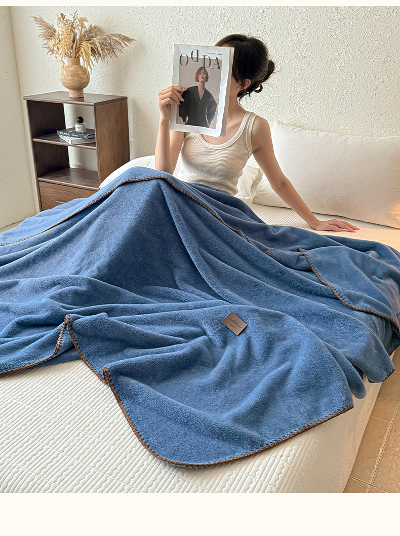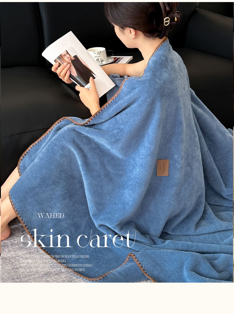 格真 2025新款高克重双面仿羊绒多功能毯毛毯盖毯沙发毯午睡毯披肩毯-系列二 蓝宝石