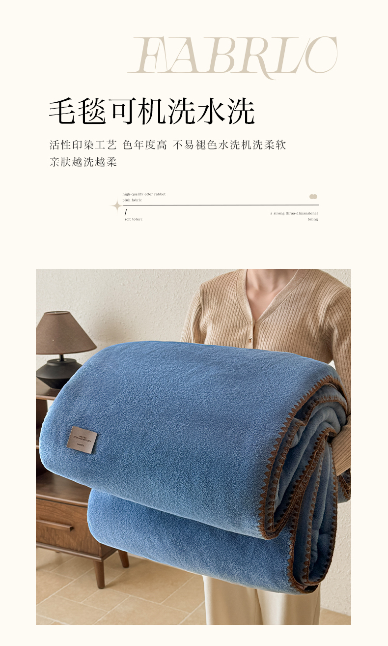 商品名称:格真 2025新款高克重双面仿羊绒多功能毯毛毯盖毯沙发毯午睡毯披肩毯-系列二 蓝宝石