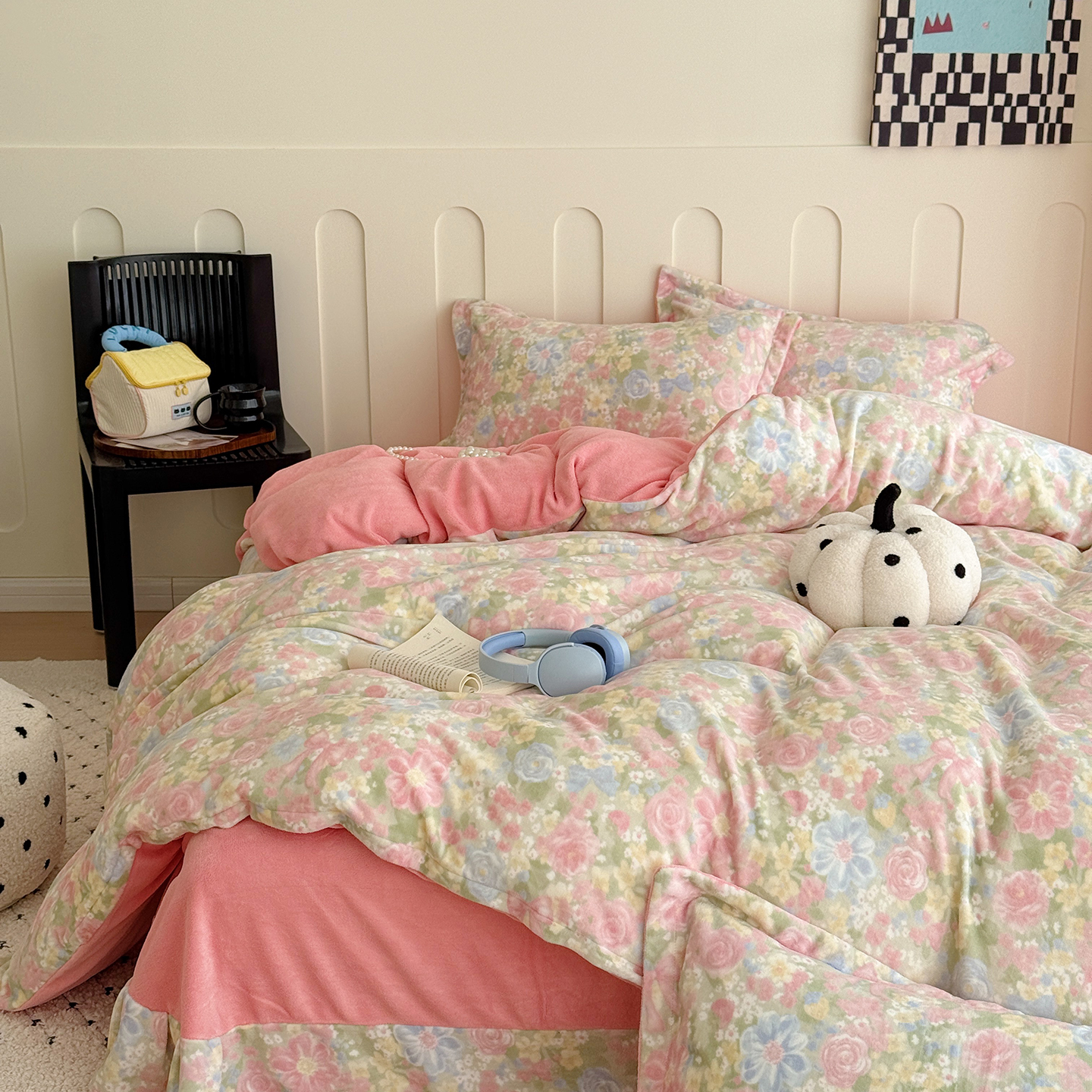 于果 2025新款牛奶绒印花四件套 沐熙花