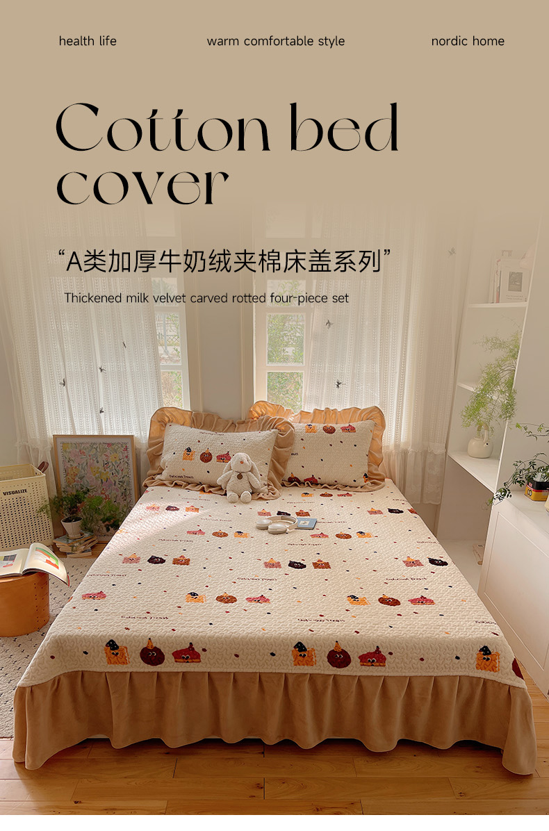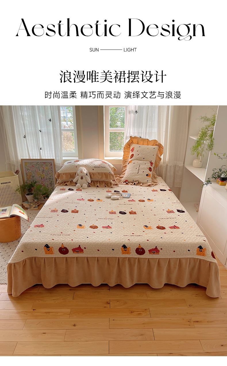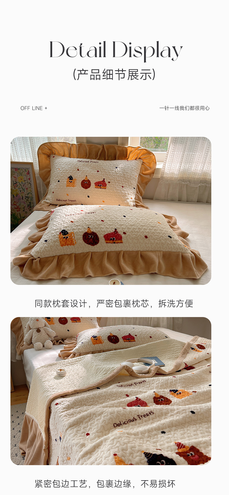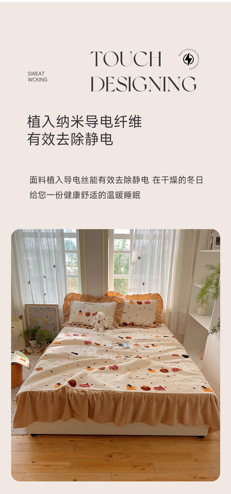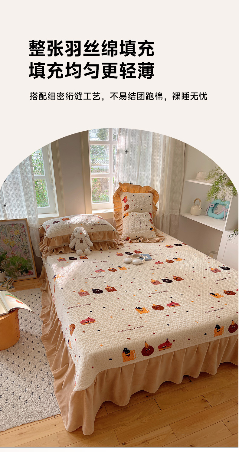 商品名称:红嘴企鹅 2025新款花边加厚牛奶绒单品床盖单件床盖三件套 点心