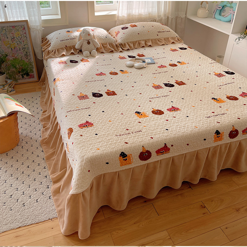 红嘴企鹅 2025新款花边加厚牛奶绒单品床盖单件床盖三件套 点心