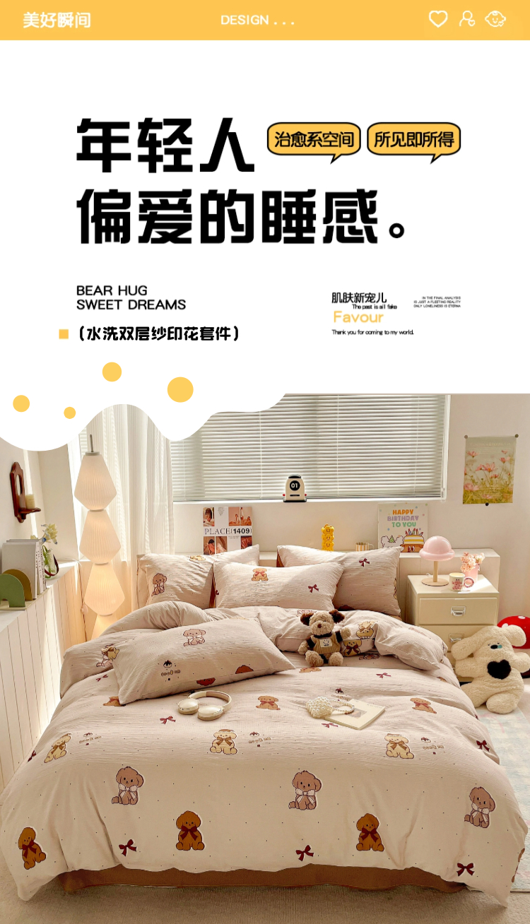 当前位置: 91家纺网 > 商品网购 > 床品套件 > 四件套 > 化纤普通四件套 > 维娜斯家纺 2025新款印花双层纱四件套亲肤柔软适合裸睡 甜心派对