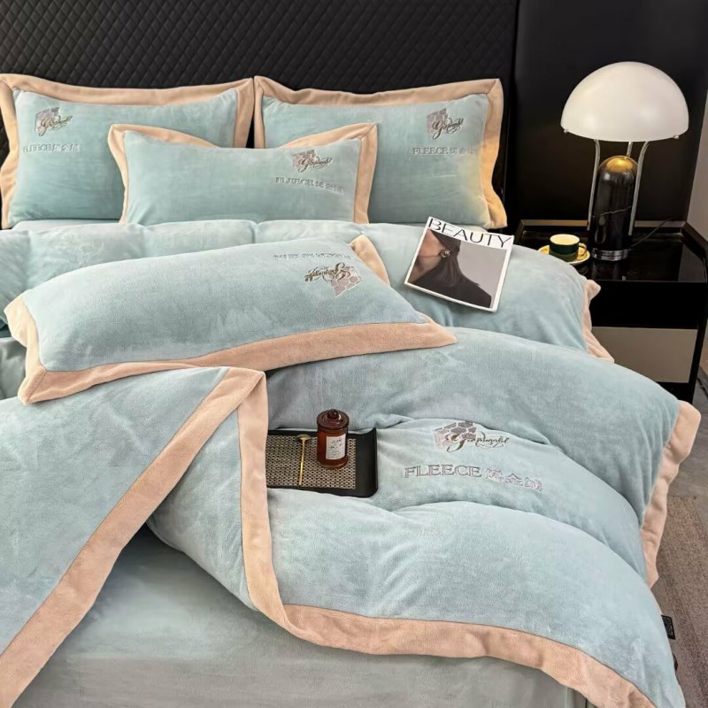 (总)淳绵家居 2025新款高克重超厚云芙绒轻奢拼色工艺款四件套,云芙绒-灰色,云芙绒-咖色,云芙绒-卡其,云芙绒-米色,云芙绒-天空蓝,云芙绒-玉色,云芙绒-紫色,云芙绒果绿