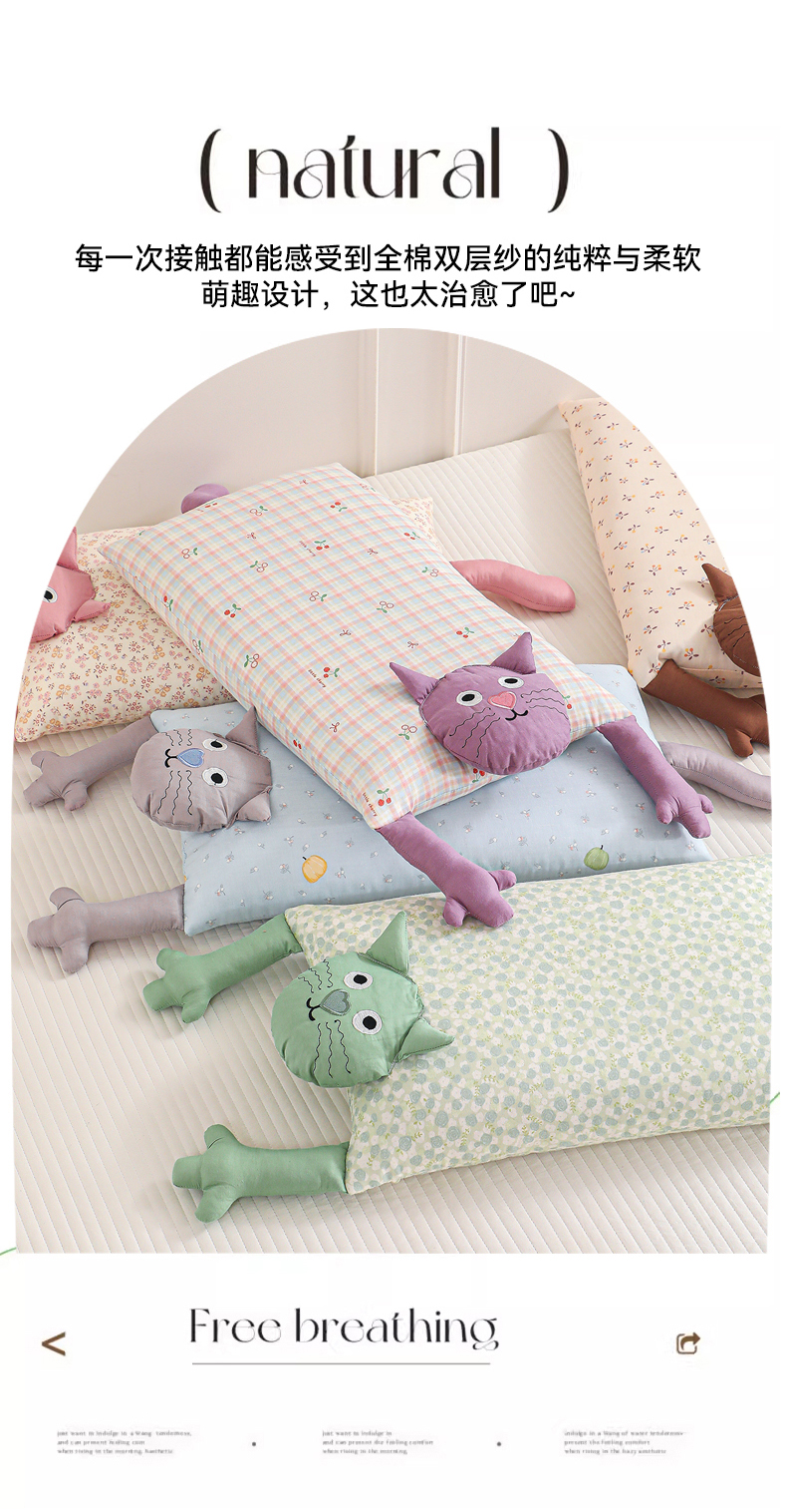 (总)大熊枕芯 2025新款小清新全棉双层纱兔子枕芯长抱枕,组合图,小兔,阿呆-粉,阿呆-蓝,企鹅,水母,条纹星星