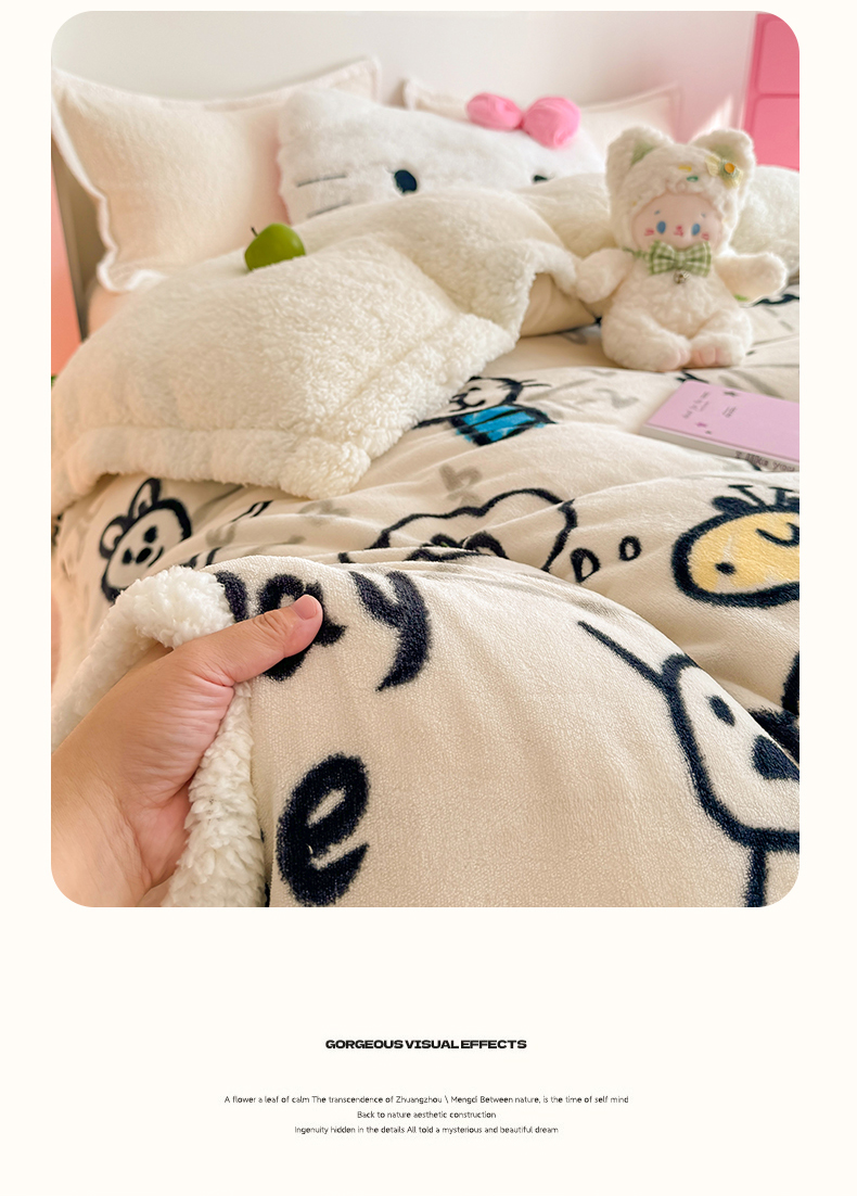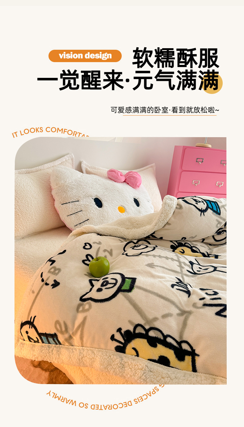商品名称:艾特你 2025新款多功能羊羔绒牛奶绒单毛毯单被套 羊-几何世界